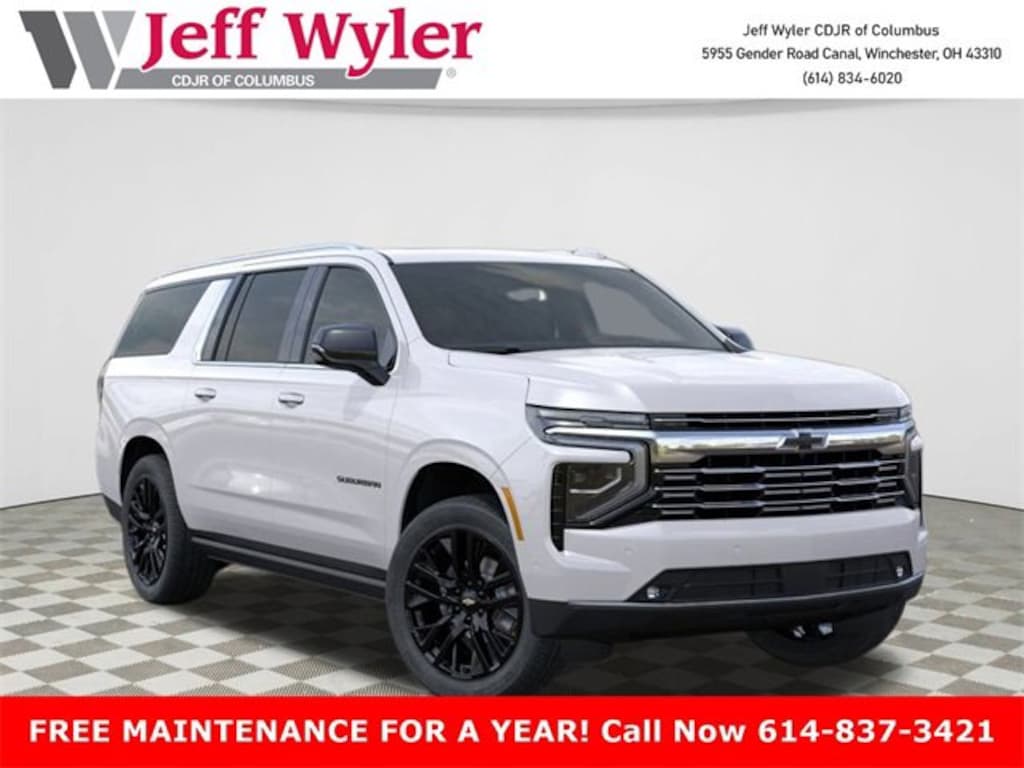 Jeff Wyler Columbus Auto Mall is honored to offer this superb-looking 2025 Chevrolet Suburban Premier in Iridescent Pearl Tricoat. Well equipped with: Advanced Security Package (Glass Breakage Sensor, Self-Powered Horn Theft-Deterrent Alarm System, Vehicle Inclination Sensor, and Vehicle Interior Movement Sensor), Advanced Trailering Package (Blind Zone Steering Assist w/Trailering, Hitch View w/Pan/Zoom Image Adjustment, and Smart Trailer Integration Indicator), License Plate Front Mounting Package, Max Trailering Package (2-Speed Active Electronic AutoTrac Transfer Case, Hill Descent Control, and Integrated Trailer Brake Controller), Preferred Equipment Group 1LZ (3rd Row 60/40 Power-Folding Split-Bench, 4-Way Power Driver Lumbar Seat Adjuster, 4-Way Power Front Passenger Lumbar Seat Adjuster, 8-Way Power Front Passenger Seat Adjuster, Auto-Dimming Inside Rear-View Mirror, Bose 10-Speaker Surround w/CenterPoint, Bright Front & Rear Door Sill Plates, Chrome Door Handles w/Body-Color Strip, Dual Exhaust System, Front LED Fog Lamps, Heated 2nd Row Outboard Seats, Heated Driver & Front Passenger Seats, Heated Power-Adjustable Outside Mirrors, Heated Steering Wheel, LED Headlamps w/LED Daytime Running Lamps, LED Tail Lamps, Memory Settings, Perforated Heated & Ventilated Seats, Power Release 2nd Row Bucket Seats, Power Tilt & Telescopic Steering Column, Power-Sliding Center Floor Console, Rear Power Liftgate, Universal Home Remote, and Wireless Phone Charging), Premium Dark Essentials Package (LPO) (Black Mirror Caps (LPO), Black Name Plates (LPO), Front & Rear Black Bowtie Emblems (LPO), Wheels: 22 Multi-Spoke Gloss Black (LPO), and Wheels: 22 Steel (LPO)), Technology & Entertainment Package (Dual-Pane Power Panoramic Sunroof and Rear Seat Media System), Technology Package (15 Diagonal Multi-Color Head-Up Display, AutoSense Hands-Free Power Liftgate, and Inside Rearview Auto-Dimming Rear Camera Mirror), 10 Speakers, 20 x 9 Polished Aluminum Wheels, 3 Years of OnStar Digital Services/Safety Services, 3.23 Rear Axle Ratio, 3rd row seats: split-bench, 4-Wheel Disc Brakes, 8-Way Power Driver Seat Adjuster, ABS brakes, Adaptive suspension, Air Conditioning, Alloy wheels, AM/FM radio: SiriusXM with 360L, Apple CarPlay/Android Auto, Auto High-beam Headlights, Auto-dimming door mirrors, Auto-dimming Rear-View mirror, Auto-leveling suspension, Automatic temperature control, Brake assist, Bumpers: body-color, Compass, Delay-off headlights, Driver door bin, Driver vanity mirror, Dual front impact airbags, Dual front side impact airbags, Electronic Stability Control, Emergency communication system: OnStar Services capable, Exterior Parking Camera Rear, Extra Capacity Cooling System, Four wheel independent suspension, Front anti-roll bar, Front Bucket Seats, Front Center Armrest, Front dual zone A/C, Front fog lights, Front reading lights, Fully automatic headlights, Garage door transmitter, Heated door mirrors, Heated front seats, Heated rear seats, Heated steering wheel, Illuminated entry, Low tire pressure warning, Magnetic Ride Control Suspension, Memory seat, Navigation system: Google built-in compatibility (select service plan required, terms and limitations apply), Occupant sensing airbag, Outside temperature display, Overhead airbag, Overhead console, Panic alarm, Passenger door bin, Passenger vanity mirror, Perforated Leather Seating Surfaces, Power door mirrors, Power driver seat, Power Liftgate, Power passenger seat, Power steering, Power windows, Power-Retractable Assist Steps, Radio data system, Radio: 17.7 Diagonal Advanced Color LCD Display, Rain sensing wipers, Rear air conditioning, Rear anti-roll bar, Rear reading lights, Rear window defroster, Rear window wiper, Remote keyless entry, Security system, SiriusXM w/360L Trial Subs Price does not include Tax, Title, License and Documentary Fee$500 - GM Military Cash Allowance Program. Exp. 01/02/2026 $500 - GM Rewards Card Sales