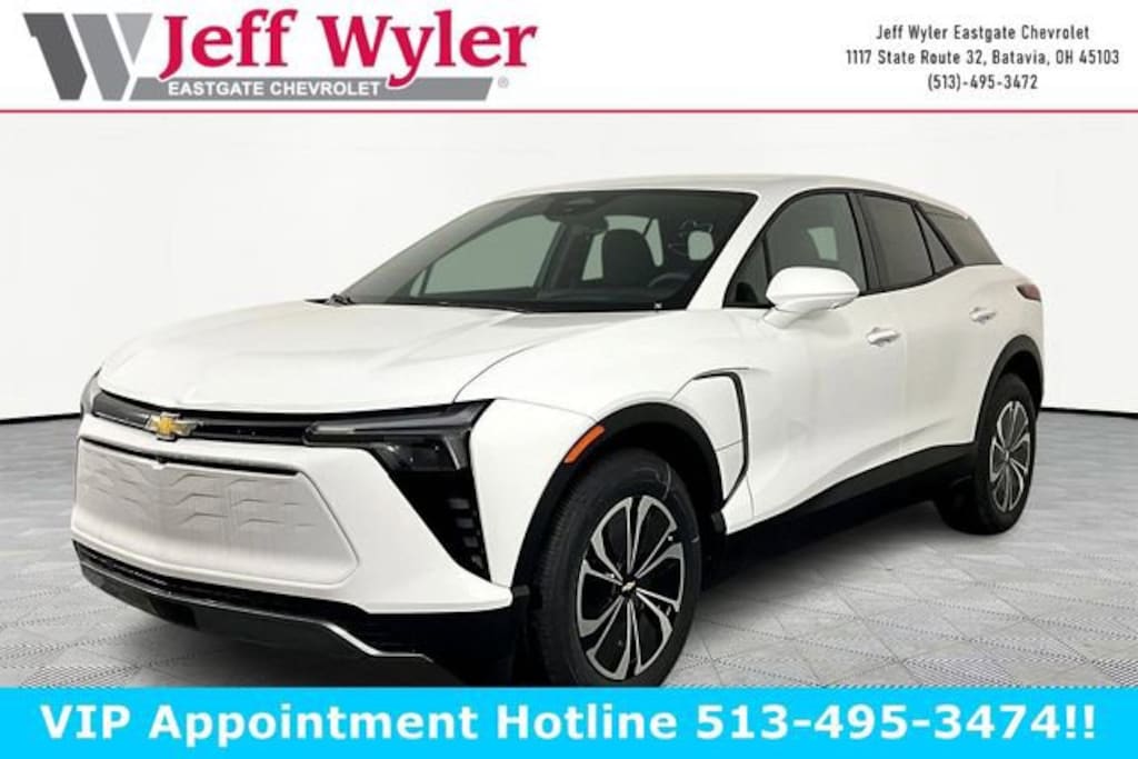 Summit White 2026 Chevrolet Blazer EV LT Electric Motor FWD 1-Speed Automatic Jeff Wyler Eastgate Auto Mall is excited to offer this fantastic-looking 2026 Chevrolet Blazer EV LT in Summit White. Well equipped with: 4-Wheel Disc Brakes, 6 Speakers, 6-Speaker Audio System Feature, 6-Way Manual Driver Seat Adjuster, 6-Way Manual Front Passenger Seat Adjuster, ABS brakes, Air Conditioning, Alloy wheels, AM/FM radio: SiriusXM with 360L, Auto High-beam Headlights, Automatic temperature control, Brake assist, Bumpers: body-color, Cloth Seat Trim, Compass, Delay-off headlights, Driver door bin, Driver vanity mirror, Dual front impact airbags, Dual front side impact airbags, Electronic Stability Control, Emergency communication system: OnStar and Chevrolet connected services capable, Four wheel independent suspension, Front anti-roll bar, Front Bucket Seats, Front Center Armrest, Front reading lights, Fully automatic headlights, Illuminated entry, Knee airbag, Low tire pressure warning, Navigation System, Occupant sensing airbag, Outside temperature display, Overhead airbag, Overhead console, Panic alarm, Passenger door bin, Passenger vanity mirror, Power door mirrors, Power steering, Power windows, Radio: 17.7 Diagonal Advanced Color LCD Display, Rear anti-roll bar, Rear reading lights, Rear seat center armrest, Rear window defroster, Rear window wiper, Remote keyless entry, Security system, Speed control, Split folding rear seat, Spoiler, Steering wheel mounted audio controls, Telescoping steering wheel, Tilt steering wheel, Traction control, Trip computer, Variably intermittent wipers, and Wheels: 19 Machined-Face Aluminum. Price includes: $1000 - Chevrolet Consumer Cash Program. Exp. 04/30/2026