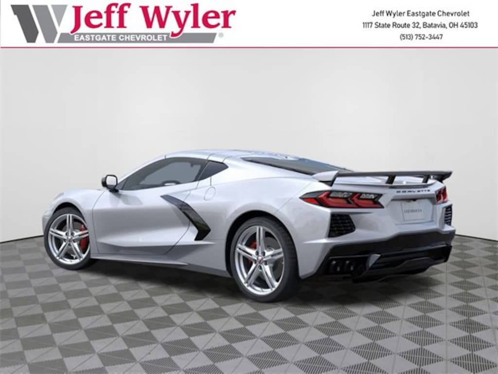 Silver 2026 Chevrolet Corvette Stingray 2LT 6.2L V8 RWD 8-Speed Dual Clutch 16/25 City/Highway MPG Jeff Wyler Eastgate Auto Mall is pumped up to offer this good-looking 2026 Chevrolet Corvette Stingray in Silver. Well equipped with: Stealth Interior Trim Package, Z51 Performance Package (Electronic Limited-Slip Differential, Heavy-Duty Cooling System, Performance Rear Axle Ratio, Rear Z51 Spoiler, Z51 Performance Brakes, and Z51 Performance Suspension), 14 Speakers, 2 Cargo Nets, 2-Tone Seats, 4-Wheel Disc Brakes, 8-Way Power Driver Seat Adjuster, 8-Way Power Passenger Seat Adjuster, ABS brakes, Air Conditioning, Alloy wheels, AM/FM radio: SiriusXM, Auto High-beam Headlights, Auto-dimming door mirrors, Auto-dimming Rear-View mirror, Automatic Leveling System Headlamp Control, Automatic temperature control, Black Exhaust Tips, Brake assist, Bumpers: body-color, Compass, Delay-off headlights, Driver door bin, Driver Power Bolster Seat Adjuster, Driver vanity mirror, Dual front impact airbags, Dual front side impact airbags, Edge Red LT2 Engine Cover, Edge Red-Painted Calipers, Electrical Theft Deterrent System, Electronic Stability Control, Emergency communication system: OnStar and Chevrolet connected services capable, Exterior Parking Camera Rear, Four wheel independent suspension, Front anti-roll bar, Front Bucket Seats, Front Center Armrest, Front dual zone A/C, Front reading lights, Fully automatic headlights, Garage door transmitter, GT1 Bucket Seats, GT2 Bucket Seats, Head-Up Display, Heads-Up Display, Heated door mirrors, Heated front seats, Heated Steering Wheel, Heated steering wheel, Illuminated entry, Leather Shift Knob, Leather steering wheel, Low tire pressure warning, Memory seat, Navigation System, Occupant sensing airbag, Outside temperature display, Overhead console, Panic alarm, Passenger door bin, Passenger Power Bolster Seat Adjuster, Passenger vanity mirror, Performance Traction Management, Power door mirrors, Power Driver Lumbar Control Seat Adjuster, Power driver seat, Power Passenger Lumbar Control Seat Adjuster, Power passenger seat, Power steering, Power windows, Power-Adjustable Outside Heated Mirrors, Premium audio system: Chevrolet Infotainment 3 Premium, Premium Carpeted Floor Mats, Radio data system, Rear anti-roll bar, Rear Cross Traffic Alert, Rear window defroster, Remote keyless entry, Security system, Side Blind Zone Alert, Speed control, Speed-sensing steering, Sport steering wheel, Steering wheel memory, Steering wheel mounted audio controls, Sueded Microfiber-Wrapped Steering Wheel, Tachometer, Telescoping steering wheel, Tilt steering wheel, Torch Red Seat Belt Color, Traction control, Trip computer, Turn signal indicator mirrors, Universal Home Remote, Variably intermittent wipers, Vehicle Inclination Theft Deterrent Sensor, Vehicle Interior Movement Theft Deterrent Sensor, Ventilated front seats, Voltmeter, and Wireless Phone Charging.