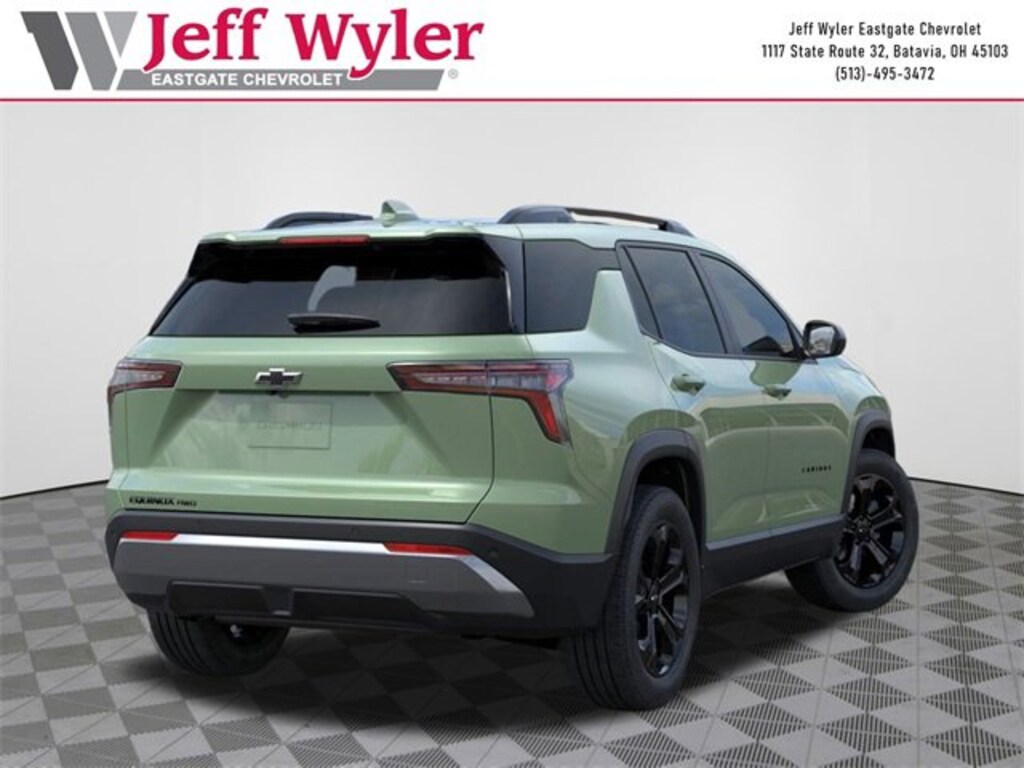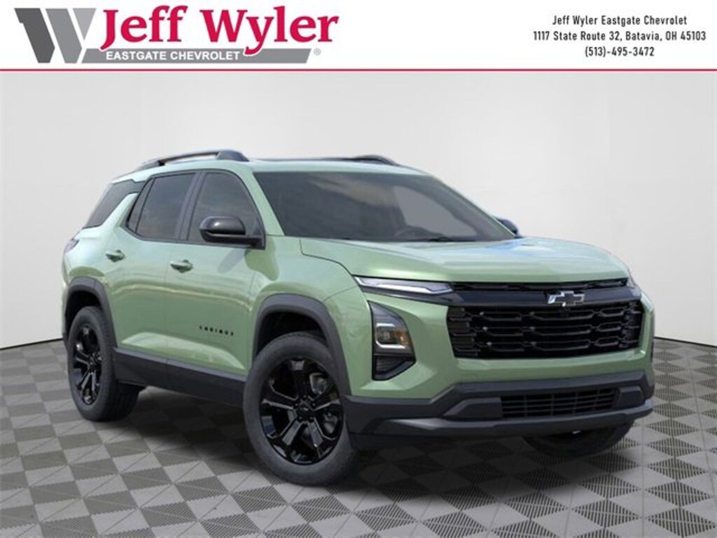 Cacti Green 2026 Chevrolet Equinox LT 1.5L DOHC AWD 8-Speed Automatic 25/29 City/Highway MPG Jeff Wyler Eastgate Auto Mall is proud to offer this superb-looking 2026 Chevrolet Equinox LT in Cacti Green. Well equipped with: Convenience Package II (2-Way Power Driver Lumbar Control Seat Adjuster, Autosense Hands-Free Programmable Power Liftgate, Cabin Humidity and Windshield Sensor, Driver 8-Way Power Seat Adjuster, Dual-Zone Automatic Climate Control, Evotex Seat Trim, Heated Wiper Park, Intermittent Front Rain-Sensing Wipers, Overhead Sunglass Storage, Programmable Universal Home Remote, and Wireless Phone Charging For Portable Devices), Midnight Edition (High Gloss Black Mirror Caps and Wheels: 19 Black Painted Aluminum), 3.47 Final Drive Axle Ratio, 4-Wheel Disc Brakes, 6 Speakers, ABS brakes, Air Conditioning, All-Weather Floor Liners, Alloy wheels, AM/FM radio: SiriusXM, Auto High-beam Headlights, Brake assist, Bumpers: body-color, Cloth Seat Trim, Compass, Delay-off headlights, Driver 6-Way Manual Seat Adjuster, Driver door bin, Driver vanity mirror, Dual front impact airbags, Dual front side impact airbags, Electronic Stability Control, Emergency communication system: OnStar and Chevrolet connected services capable, Four wheel independent suspension, Front anti-roll bar, Front Bucket Seats, Front Center Armrest, Front Passenger 4-Way Manual Seat Adjuster, Front reading lights, Fully automatic headlights, Heated door mirrors, Heated Driver and Front Passenger Seats, Heated front seats, Heated steering wheel, Illuminated entry, Low tire pressure warning, Navigation System, Occupant sensing airbag, Outside temperature display, Overhead airbag, Overhead console, Panic alarm, Passenger door bin, Passenger vanity mirror, Power door mirrors, Power Dual Glass Panoramic Sliding Sunroof, Power steering, Power windows, Premium audio system: Chevrolet Infotainment 3, Radio data system, Radio: 11.3 Diagonal Advanced Color LCD Display, Rear anti-roll bar, Rear reading lights, Rear seat center armrest, Rear window defroster, Rear window wiper, Remote keyless entry, Roof Rails, Second Row All-Weather Mat, Security system, SiriusXM with 360L Trial Subscription, Speed control, Speed-sensing steering, Split folding rear seat, Spoiler, Steering wheel mounted audio controls, Tachometer, Telescoping steering wheel, Tilt steering wheel, Traction control, Trip computer, Variably intermittent wipers, and Wheels: 17 Grazen Metallic Machined-Face Aluminum. 25/29 City/Highway MPG