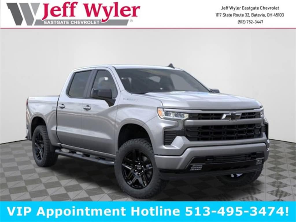 Sterling Gray Metallic 2026 Chevrolet Silverado 1500 RST 2.7L I4 Turbocharged DOHC 16V LEV3-SULEV30 310hp 4WD 8-Speed Automatic 17/21 City/Highway MPG Jeff Wyler Eastgate Auto Mall is pleased to offer this stunning 2026 Chevrolet Silverado 1500 RST in Sterling Gray Metallic. Well equipped with: Convenience Package (10-Way Power Driver Seat w/Lumbar, 120-Volt Bed Mounted Power Outlet, 120-Volt Interior Power Outlet, Dual Rear USB Ports (Charge Only), Dual-Zone Automatic Climate Control, Electric Rear-Window Defogger, Heated Driver & Front Outboard Passenger Seats, Heated Steering Wheel, Keyless Open & Start, LED Cargo Area Lighting, Manual Tilt/Telescoping Steering Column, Remote Vehicle Starter System, Theft Deterrent System (Unauthorized Entry), and Wrapped Steering Wheel), High Capacity Suspension Package, RST Select Package (4 Black Round Assist Steps (LPO), All-Weather Floor Liner (LPO), Chevytec Spray-On Black Bedliner, and Wheels: 20 x 9 High Gloss Black Painted Alum), Standard Suspension Package, Trailering Package (Hitch Guidance), 12.3 Multicolor Reconfigurable Digital Display, 220 Amp Alternator, 3.42 Rear Axle Ratio, 4-Wheel Disc Brakes, 40/20/40 Front Split-Bench Seat, 6 Speakers, 6-Speaker Audio System, ABS brakes, Air Conditioning, All-Star Edition, Alloy wheels, AM/FM radio: SiriusXM with 360L, Apple CarPlay/Android Auto, Auto High-beam Headlights, Auto-Locking Rear Differential, Automatic Emergency Braking, Automatic temperature control, Bluetooth® For Phone, Brake assist, Bumpers: body-color, Cloth Seat Trim, Color-Keyed Carpeting Floor Covering, Compass, Deep-Tinted Glass, Delay-off headlights, Driver door bin, Driver vanity mirror, Dual front impact airbags, Dual front side impact airbags, Electronic Cruise Control, Electronic Stability Control, Emergency communication system: OnStar, EZ Lift Power Lock & Release Tailgate, Following Distance Indicator, Forward Collision Alert, Front anti-roll bar, Front Center Armrest w/Storage, Front dual zone A/C, Front fog lights, Front Frame-Mounted Black Recovery Hooks, Front LED Fog Lamps, Front Pedestrian Braking, Front reading lights, Front Rubberized Vinyl Floor Mats, Front wheel independent suspension, Fully automatic headlights, HD Rear Vision Camera, Heated door mirrors, Heated front seats, Heated Power-Adjustable Outside Mirrors, Heated steering wheel, High Gloss Black Mirror Caps, Illuminated entry, Inside Rear-View Mirror w/Tilt, Integrated Trailer Brake Controller, IntelliBeam Automatic High Beam On/Off, Lane Keep Assist w/Lane Departure Warning, Low tire pressure warning, Occupant sensing airbag, OnStar Services Capable, Outside temperature display, Overhead airbag, Overhead console, Panic alarm, Passenger door bin, Passenger vanity mirror, Power door mirrors, Power driver seat, Power Front Windows w/Driver Express Up/Down, Power Front Windows w/Passenger Express Down, Power Rear Windows w/Express Down, Power steering, Power windows, Premium audio system: Chevrolet Infotainment 3 Premium, Radio data system, Radio: Chevrolet Infotainment 3 Premium System, Rear 60/40 Folding Bench Seat (Folds Up), Rear reading lights, Rear Rubberized-Vinyl Floor Mats, Rear step bumper, Rear window defroster, Remote keyless entry, Security system, Single Outlet Exhaust, SiriusXM w/360L Trial Subscription, Speed control, Speed-sensing steering, Split folding rear seat, Standard Tailgate, Steering Wheel Audio Controls, Steering wheel mounted audio controls, Tachometer, Teen Driver, Telescoping steering wheel, Tilt steering wheel, Tire Pressure Monitoring System, Traction control, Trip computer, Variably intermittent wipers, Voltmeter, Wheels: 18 x 8.5 Bright Silver Painted Aluminum, and Wi-Fi Hot Spot Capable. Price includes: $1000 - GM Bonus Cash. Exp. 11/03/2025 $1750 - Chevrolet Consumer Cash Program. Exp. 11/03/2025