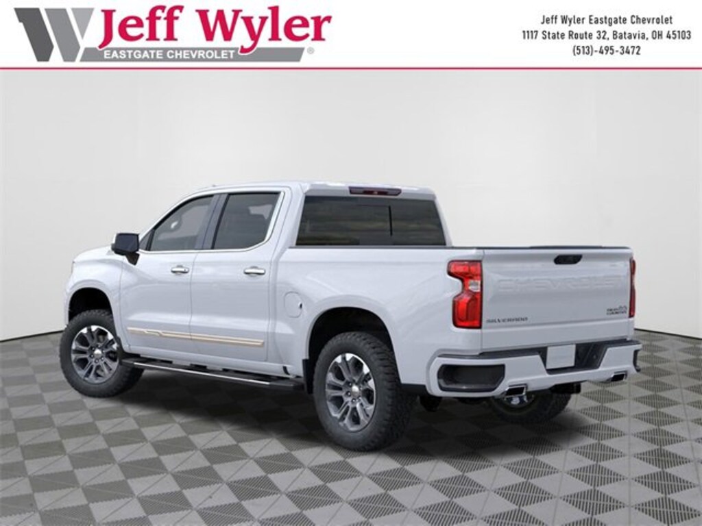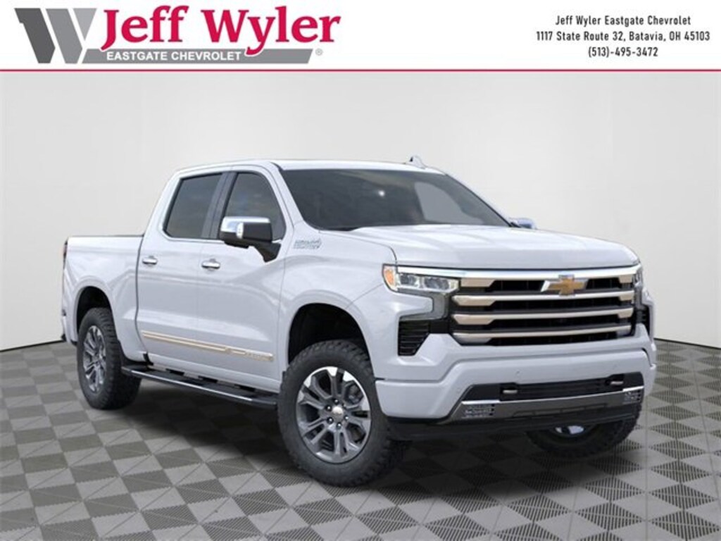 Polar White Tricoat 2026 Chevrolet Silverado 1500 High Country EcoTec3 5.3L V8 4WD 10-Speed Automatic 15/19 City/Highway MPG Jeff Wyler Eastgate Auto Mall is very proud to offer this outstanding-looking 2026 Chevrolet Silverado 1500 High Country in Polar White Tricoat. Well equipped with: High Capacity Suspension Package, Preferred Equipment Group 3LZ (10-Way Power Driver Seat with Lumbar, 10-Way Power Passenger Seat Adjuster with Lumbar, 12.3 Multicolor Reconfigurable Digital Display, 120-Volt Bed Mounted Power Outlet, 120-Volt Interior Power Outlet, 2 USB Data Ports, 2nd Row Heated Outboard Seats, Adaptive Cruise Control, Auto-Dimming Inside Rear-View Mirror, Auto-Locking Rear Differential, Bed View Camera, Bluetooth® For Phone, Chevytec Spray-on Black Bedliner, Chrome Assist Steps, Chrome Recovery Hooks, Color-Keyed Carpeting Floor Covering, Deep-Tinted Glass, Driver Memory, Dual Exhaust with Polished Outlets, Dual Rear USB Ports (charge Only), Electric Rear-Window Defogger, Floor Mounted Center Console, Front Bucket Seats, Front Carpeted Floor Mats, Front LED Fog Lamps, Front Rain-Sensing Wipers, Galvano Silver Painted Mirror Caps, HD Surround Vision, Heated Driver and Front Outboard Passenger Seats, Heated Steering Wheel, Hitch Guidance with Hitch View, in-Vehicle Trailering System App, Integrated Trailer Brake Controller, Keyless Open and Start, LED Cargo Area Lighting, OnStar Services Capable, Outside Heated Power-Adjustable Mirrors, Perforated Leather Seat Trim, Perimeter Lighting, Power Front Passenger Windows with Express Up/Down, Power Front Windows with Driver Express Up/Down, Power Rear Windows with Express Down, Power Sliding Rear Window with Rear Defogger, Power Tailgate, Power Tilt and Telescoping Steering Column, Rear Carpeted Floor Mats, Rear Cross Traffic Braking, Rear Pedestrian Alert, Rear Wheelhouse Liners, Remote Vehicle Starter System, Safety Alert Seat, SiriusXM with 360L Trial Subscription, Standard Tailgate, Steering Wheel Audio Controls, Teen Driver, Theft Deterrent System (unauthorized Entry), Tire Pressure Monitoring System, Trailer Camera Provisions, Trailer Side Blind Zone Alert, Ultrasonic Front and Rear Park Assist, Universal Home Remote, Ventilated Driver and Front Passenger Seats, Wheels: 20 x 9 Painted Aluminum, Wi-Fi Hot Spot Capable, and Wrapped Steering Wheel), Technology Package (15 Diagonal Multicolor Head-Up Display and Rear Camera Mirror), Trailering Package (Hitch Guidance), Up-Level Rear Seat with Storage Package, 170 Amp Alternator, 3.23 Rear Axle Ratio, 4-Wheel Disc Brakes, 7 Speakers, ABS brakes, Air Conditioning, Alloy wheels, AM/FM radio: SiriusXM with 360L, Apple CarPlay/Android Auto, Auto High-beam Headlights, Auto-dimming door mirrors, Auto-dimming Rear-View mirror, Automatic temperature control, Bodyside moldings, Brake assist, Bumpers: body-color, Compass, Delay-off headlights, Driver door bin, Driver vanity mirror, Dual front impact airbags, Dual front side impact airbags, Electronic Stability Control, Electronic Transmission Range Selector Shifter, Emergency communication system: OnStar, Enhanced Automatic Emergency Braking, Following Distance Indicator, Forward Collision Alert, Front anti-roll bar, Front Center Armrest, Front dual zone A/C, Front fog lights, Front Pedestrian Braking, Front reading lights, Front wheel independent suspension, Fully automatic headlights, Garage door transmitter, Genuine wood console insert, Genuine wood dashboard insert, Genuine wood door panel insert, Heated door mirrors, Heated front seats, Heated rear seats, Heated steering wheel, Illuminated entry, IntelliBeam Automatic High Beam on/Off, Lane Keep Assist with Lane Departure Warning, Low tire pressure warning, Memory seat, Occupant sensing airbag, Outside temperature display, Overhead airbag, Overhead console, Panic alarm, Passenger door bin, Passenger vanity mi Price includes: $3250 - Chevrolet Consumer Cash Program. Exp. 03/31/2026 $500 - Chevrolet Bonus Cash. Exp. 03/31/2026