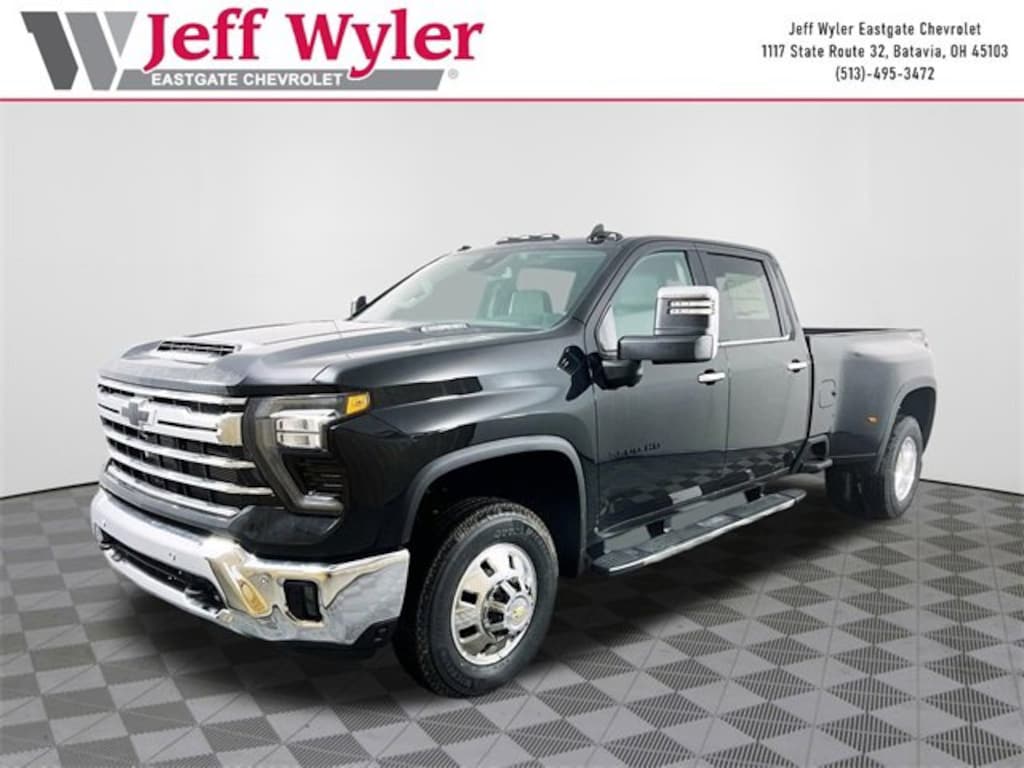 Black 2026 Chevrolet Silverado 3500HD LTZ Duramax 6.6L V8 Turbodiesel 4WD 10-Speed Automatic Jeff Wyler Eastgate Auto Mall is delighted to offer this gorgeous 2026 Chevrolet Silverado 3500HD LTZ in Black. Well equipped with: Dark Essentials Package (Black Name Plates and Front Black Bowtie Emblem), Gooseneck/5th Wheel Prep Package (Chevytec Spray-on Black Bedliner), LTZ Convenience Package (2 Charge/Data USB Ports Inside Center Console, Bose Premium 7-Speaker Sound System, Floor-Mounted Center Console, Front Bucket Seats, LED Cargo Area Lighting, Ventilated Driver and Front Passenger Seats, and Wireless Charging), LTZ Convenience Package II (Adaptive Cruise Control, Heated 2nd Row Outboard Seats, Power Sliding Rear Window with Defogger, and Universal Home Remote), Preferred Equipment Group 1LZ (10-Way Power Driver Seat Adjuster with Lumbar, 10-Way Power Passenger Seat Adjuster with Lumbar, 120-Volt Bed Mounted Power Outlet, 120-Volt Interior Power Outlet, 170 Amp Alternator, 6-Speaker Audio System Feature, Auto-Dimming Inside Rear-View Mirror, Bluetooth® For Phone, Chevrolet Connected Access Capable, Chrome Door Handles, Chrome Mirror Caps, Color-Keyed Carpeting Floor Covering, Compass Located in Instrument Cluster, Deep-Tinted Glass, Driver Memory, Durabed Pickup Bed, Electric Rear-Window Defogger, EZ Lift Power Lock and Release Tailgate, Front 40/20/40 Split-Bench Seats with Lockable Storage, Front LED Fog Lamps, Front Rain-Sensing Wipers, Front Rubberized Vinyl Floor Mats, HD Rear Vision Camera, Heated Driver and Front Outboard Passenger Seats, Heated Steering Wheel, Hitch Guidance with Hitch View, in-Vehicle Trailering App System, Keyless Open and Start, Manual Tilt-Wheel/Telescoping Steering Column, OnStar Services Capable, Perforated Leather-Appointed Front Outboard Seat Trim, Power Door Locks, Power Front Windows with Driver Express Up/Down, Power Front Windows with Passenger Express Up/Down, Power Rear Windows with Express Down, Push Button Start, Rear Rubberized-Vinyl Floor Mats, Remote Vehicle Starter System, SiriusXM with 360L Trial Subscription, Standard Tailgate, Steering Wheel Audio Controls, Steering Wheel Mounted Electronic Cruise Control, Unauthorized Entry Theft-Deterrent System, Wi-Fi Hotspot Capable, and Wrapped Steering Wheel), Safety Package (Bed View Camera with Two Trailer Camera Provisions, HD Surround Vision, Rear Cross Traffic Alert, Safety Alert Seat, Trailer Camera Provisions, Trailer Side Blind Zone Alert, and Ultrasonic Front and Rear Park Assist), Suspension Package, Up-Level Rear Seat with Storage Package, 220 Amp Alternator, 4-Wheel Disc Brakes, 6 Speakers, 6 Rectangular Chromed Tubular Assist Steps, ABS brakes, Air Conditioning, AM/FM radio: SiriusXM with 360L, Apple CarPlay/Android Auto, Auto High-beam Headlights, Auto-dimming door mirrors, Auto-dimming Rear-View mirror, Automatic temperature control, Black Tailgate CHEVROLET Lettering, Brake assist, Bumpers: chrome, Compass, Delay-off headlights, Driver door bin, Driver vanity mirror, Dual front impact airbags, Dual front side impact airbags, Electronic Stability Control, Emergency communication system, Engine Block Heater, Exhaust Brake, Front anti-roll bar, Front Center Armrest w/Storage, Front dual zone A/C, Front fog lights, Front reading lights, Front wheel independent suspension, Fully automatic headlights, Heated door mirrors, Heated front seats, Heated steering wheel, Heavy-Duty 80 Amp-Hour Battery, Illuminated entry, Low tire pressure warning, Memory seat, Occupant sensing airbag, Outside temperature display, Overhead airbag, Overhead console, Panic alarm, Passenger door bin, Passenger vanity mirror, Power door mirrors, Power driver seat, Power passenger seat, Power steering, Power Sunroof, Power Tailgate, Power windows, Premium audio system: Chevrolet Infotainment 3 Premium, Radio: Chevrolet Infotainment 3 Premium System, Rain sensing wipers, Rear readin Price includes: $1000 - Che
