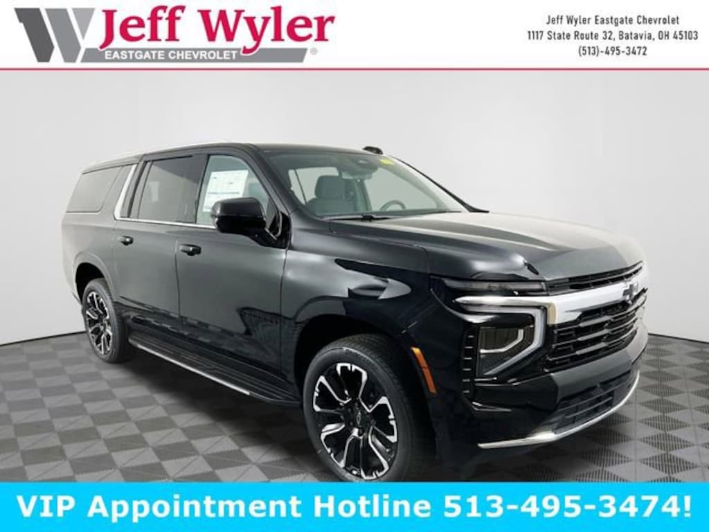 Black 2026 Chevrolet Suburban LS EcoTec3 5.3L V8 4WD 10-Speed Automatic with Overdrive 14/19 City/Highway MPG Jeff Wyler Eastgate Auto Mall is honored to offer this wonderful 2026 Chevrolet Suburban LS in Black. Well equipped with: Preferred Equipment Group 1LS, 2-Way Driver Power Lumbar Seat Adjuster, 2-Way Front Passenger Power Lumbar Seat Adjuster, 3.23 Rear Axle Ratio, 3rd row seats: split-bench, 4-Wheel Disc Brakes, 6 Speakers, 6-Speaker Audio System, 6-Way Power Front Passenger Seat Adjuster, 8-Way Power Driver Seat Adjuster, ABS brakes, Air Conditioning, Alloy wheels, AM/FM radio: SiriusXM with 360L, Apple CarPlay/Android Auto, Auto High-beam Headlights, Automatic temperature control, Brake assist, Bumpers: body-color, Compass, Delay-off headlights, Driver door bin, Driver vanity mirror, Dual front impact airbags, Dual front side impact airbags, Electronic Stability Control, Emergency communication system: OnStar Services capable, Exterior Parking Camera Rear, Four wheel independent suspension, Front anti-roll bar, Front Bucket Seats, Front Center Armrest, Front dual zone A/C, Front reading lights, Fully automatic headlights, Heated door mirrors, Illuminated entry, Low tire pressure warning, Navigation system: Google built-in compatibility (select service plan required, terms and limitations apply), Occupant sensing airbag, Outside temperature display, Overhead airbag, Overhead console, Panic alarm, Passenger door bin, Passenger vanity mirror, Power door mirrors, Power driver seat, Power passenger seat, Power steering, Power windows, Premium Cloth Seat Trim, Premium Smooth Ride Suspension, Radio data system, Radio: 17.7 Diagonal Advanced Color LCD Display, Rain sensing wipers, Rear air conditioning, Rear anti-roll bar, Rear reading lights, Rear seat center armrest, Rear window defroster, Rear window wiper, Remote keyless entry, Security system, Speed control, Speed-sensing steering, Split folding rear seat, Spoiler, Steering wheel mounted audio controls, Tachometer, Telescoping steering wheel, Tilt steering wheel, Traction control, Trip computer, Variably intermittent wipers, Voltmeter, Wheels: 18 x 8.5 Bright Silver Painted Aluminum, and Wireless Apple CarPlay/Wireless Android Auto. Awards: