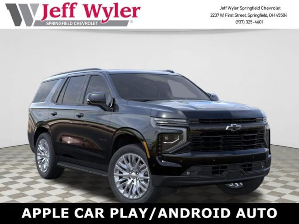 Jeff Wyler Springfield Auto Mall is honored to offer this wonderful 2026 Chevrolet Tahoe RST in Black. Well equipped with: Comfort Package (2nd Row Pwr Release 60/40 Split-Folding Bench Seat, 3rd Row 60/40 Power-Folding Split-Bench Seat, Bose 10-Speaker Centerpoint Surround Audio Sys Ft, Heated 2nd Row Outboard Seats, Heated Steering Wheel, LED Headlamps w/LED Daytime Running Lamps, LED Tail Lamps, Memory Settings, and Outside Heated Power-Adjustable Mirrors), Preferred Equipment Group 1SP (1st & 2nd Row Color-Keyed Carpeted Floor Mats, 3-Spoke Wrapped Steering Wheel, 3rd Row Manual 60/40 Split-Folding Bench Seats, Auto-Dimming Inside Rear-View Mirror, Bright Front & Rear Door Sill Plates, Color-Keyed Carpeting Floor Covering, Dual Exhaust System, Floor Console w/Storage Area, Front LED Fog Lamps, Frontal Driver & Outboard Passenger Airbags, Interior Camera, Key Card, Memory Settings for Driver, Rear Power Liftgate, Remote Start, RST Exterior Features, SiriusXM w/360L Trial Subscription, Universal Home Remote, USB Ports, and Wireless Phone Charging), Premium Liner Protection Package (LPO) (1st & 2nd Rows Premium Floor Liners (LPO), 3rd Row All-Weather Floor Liners (LPO), and All-Weather Cargo Mat (LPO)), 2-Way Power Driver Lumbar Seat Adjuster, 2-Way Power Front Passenger Lumbar Seat Adjuster, 3.23 Rear Axle Ratio, 3rd row seats: split-bench, 4-Wheel Disc Brakes, 6 Speakers, 6-Speaker Audio System Feature, 8-Way Power Driver Seat Adjuster, 8-Way Power Front Passenger Seat Adjuster, ABS brakes, Air Conditioning, Alloy wheels, AM/FM radio: SiriusXM with 360L, Apple CarPlay/Android Auto, Auto High-beam Headlights, Auto-dimming Rear-View mirror, Automatic temperature control, Brake assist, Bumpers: body-color, Compass, Delay-off headlights, Driver door bin, Driver vanity mirror, Dual front impact airbags, Dual front side impact airbags, Electronic Stability Control, Emergency communication system: OnStar and Chevrolet connected services capable, Exterior Parking Camera Rear, Four wheel independent suspension, Front anti-roll bar, Front Bucket Seats, Front Center Armrest, Front dual zone A/C, Front fog lights, Front reading lights, Fully automatic headlights, Garage door transmitter, Heated door mirrors, Heated Driver & Front Passenger Seats, Heated front seats, Illuminated entry, Low tire pressure warning, Memory seat, Navigation system: Google built-in compatibility (select service plan required, terms and limitations apply), Occupant sensing airbag, Outside temperature display, Overhead airbag, Overhead console, Panic alarm, Passenger door bin, Passenger vanity mirror, Perforated Leather Seat Trim, Power door mirrors, Power driver seat, Power Liftgate, Power passenger seat, Power Release 2nd Row Bucket Seats, Power steering, Power windows, Premium audio system: Chevrolet Infotainment 3 Premium, Premium Smooth Ride Suspension, Radio data system, Radio: 17.7 Diagonal Advanced Color LCD Display, Rain sensing wipers, Rear air conditioning, Rear anti-roll bar, Rear reading lights, Rear seat center armrest, Rear window defroster, Rear window wiper, Remote keyless entry, Security system, Set of 4 Wheel Locks (LPO), Speed control, Speed-sensing steering, Split folding rear seat, Spoiler, Steering wheel mounted audio controls, Tachometer, Telescoping steering wheel, Tilt steering wheel, Traction control, Trip computer, Variably intermittent wipers, Voltmeter, Wheels: 22 x 9 Bright Machined, and Wheels: 22 x 9 Polished Aluminum. 15/20 City/Highway MPG