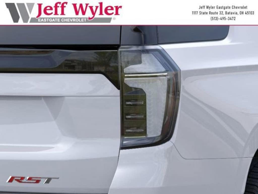 Summit White 2026 Chevrolet Tahoe RST EcoTec3 5.3L V8 4WD 10-Speed Automatic with Overdrive 15/19 City/Highway MPG Jeff Wyler Eastgate Auto Mall is pumped up to offer this gorgeous-looking 2026 Chevrolet Tahoe RST in Summit White. Well equipped with: All-Weather Liner Protection Package (1st and 2nd Rows All-Weather Floor Liners, 3rd Row All-Weather Floor Liners, and All-Weather Cargo Mat), Comfort Package (2nd Row Power Release 60/40 Split-Folding Bench Seat, 3rd Row 60/40 Power-Folding Split-Bench Seat, Bose 10-Speaker Centerpoint Surround Audio System Feature, Heated 2nd Row Outboard Seats, Heated Steering Wheel, LED Headlamps with LED Daytime Running Lamps, LED Tail Lamps, Memory Settings, and Outside Heated Power-Adjustable Mirrors), Preferred Equipment Group 1SP (1st and 2nd Row Color-Keyed Carpeted Floor Mats, 3-Spoke Wrapped Steering Wheel, 3rd Row Manual 60/40 Split-Folding Bench Seats, Auto-Dimming Inside Rear-View Mirror, Bright Front and Rear Door Sill Plates, Color-Keyed Carpeting Floor Covering, Dual Exhaust System, Floor Console with Storage Area, Front Bucket Seats, Front LED Fog Lamps, Frontal Driver and Outboard Passenger Airbags, Interior Camera, Key Card, Memory Settings For Driver, Rear Power Liftgate, Remote Start, RST Exterior Features, Set of 4 Wheel Locks, SiriusXM with 360L Trial Subscription, Universal Home Remote, USB Ports, Wheels: 22 x 9 Bright Machined, and Wireless Phone Charging), RST Capability Package (Air Ride Adaptive Suspension, Floor Console, and Magnetic Ride Control Suspension), 2-Way Power Driver Lumbar Seat Adjuster, 2-Way Power Front Passenger Lumbar Seat Adjuster, 3.23 Rear Axle Ratio, 3rd row seats: split-bench, 4-Wheel Disc Brakes, 6 Speakers, 6-Speaker Audio System Feature, 8-Way Power Driver Seat Adjuster, 8-Way Power Front Passenger Seat Adjuster, ABS brakes, Air Conditioning, Alloy wheels, AM/FM radio: SiriusXM with 360L, Apple CarPlay/Android Auto, Auto High-beam Headlights, Auto-dimming Rear-View mirror, Automatic temperature control, Brake assist, Bumpers: body-color, Compass, Delay-off headlights, Driver door bin, Driver vanity mirror, Dual front impact airbags, Dual front side impact airbags, Dual-Pane Power Panoramic Sunroof, Electronic Stability Control, Emergency communication system: OnStar and Chevrolet connected services capable, Exterior Parking Camera Rear, Four wheel independent suspension, Front anti-roll bar, Front Center Armrest, Front dual zone A/C, Front fog lights, Front reading lights, Fully automatic headlights, Garage door transmitter, Heated door mirrors, Heated Driver and Front Passenger Seats, Heated front seats, Illuminated entry, Low tire pressure warning, Memory seat, Navigation system: Google built-in compatibility (select service plan required, terms and limitations apply), Occupant sensing airbag, Outside temperature display, Overhead airbag, Overhead console, Panic alarm, Passenger door bin, Passenger vanity mirror, Perforated Leather Seat Trim, Power door mirrors, Power driver seat, Power Liftgate, Power passenger seat, Power Release 2nd Row Bucket Seats, Power steering, Power windows, Premium audio system: Chevrolet Infotainment 3 Premium, Premium Smooth Ride Suspension, Radio data system, Radio: 17.7 Diagonal Advanced Color LCD Display, Rain sensing wipers, Rear air conditioning, Rear anti-roll bar, Rear reading lights, Rear seat center armrest, Rear window defroster, Rear window wiper, Remote keyless entry, Security system, Speed control, Speed-sensing steering, Split folding rear seat, Spoiler, Steering wheel mounted audio controls, Tachometer, Telescoping steering wheel, Tilt steering wheel, Traction control, Trip computer, Variably intermittent wipers, Voltmeter, and Wheels: 24 x 9.5 Machined. Awards: