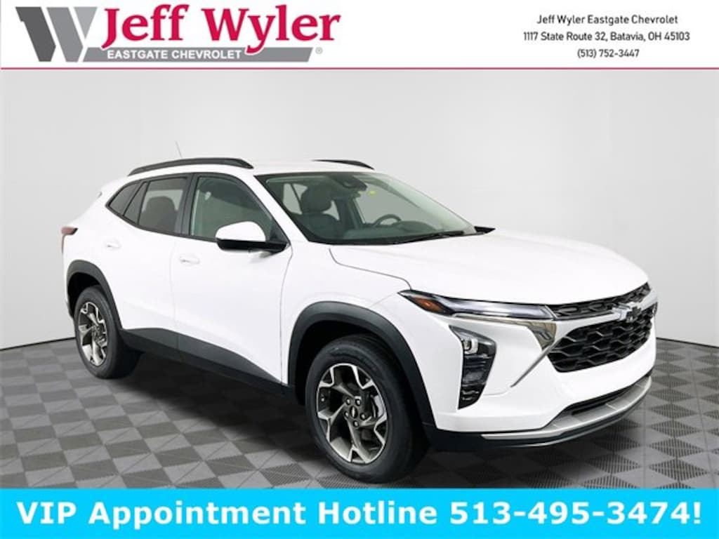 Summit White 2026 Chevrolet Trax LT ECOTEC 1.2L Turbo FWD 6-Speed Automatic 28/32 City/Highway MPG Jeff Wyler Eastgate Auto Mall is delighted to offer this fantastic 2026 Chevrolet Trax LT in Summit White. Well equipped with: Driver Confidence Package (Adaptive Cruise Control, Lane Change Alert w/Side Blind Zone Alert, Rear Cross Traffic Alert, and Rear Park Assist), Interior Protection Package (LPO) (Front & Rear Jet Black All-Weather Floor Liners (LPO) and Jet Black Cargo Liner (LPO)), LT Convenience Package (Front Doors Keyless Open, Heated Driver & Front Passenger Seats, Heated Power-Adjustable Outside Mirrors, Heated Steering Wheel, and Wrapped Steering Wheel), Preferred Equipment Group 1LT, 2-Way Adjustable Front Head Restraints, 3.50 Final Drive Axle Ratio, 4-Way Manual Front Passenger Seat Adjuster, 4-Wheel Disc Brakes, 6 Speakers, 6-Speaker Audio System Feature, 6-Way Manual Driver Seat Adjuster, ABS brakes, Air Conditioning, Alloy wheels, AM/FM radio: SiriusXM, Auto High-beam Headlights, Automatic temperature control, Brake assist, Bumpers: body-color, Cloth/Evotex Seat Trim, Compass, Delay-off headlights, Driver door bin, Driver vanity mirror, Dual front impact airbags, Dual front side impact airbags, Electronic Stability Control, Emergency communication system: OnStar One Essentials, Exterior Parking Camera Rear, Front & Rear Black Bowtie Emblems (LPO), Front anti-roll bar, Front Bucket Seats, Front Center Armrest, Front reading lights, Front wheel independent suspension, Fully automatic headlights, Illuminated entry, Low tire pressure warning, Occupant sensing airbag, Outside temperature display, Overhead airbag, Overhead console, Panic alarm, Passenger door bin, Passenger vanity mirror, Power door mirrors, Power steering, Power windows, Premium audio system: Chevrolet Infotainment 3, Radio data system, Radio: AM/FM Stereo Audio System, Rear window defroster, Rear window wiper, Remote keyless entry, Security system, SiriusXM Trial Subscription, Speed control, Split folding rear seat, Spoiler, Steering wheel mounted audio controls, Tachometer, Telescoping steering wheel, Tilt steering wheel, Traction control, Trip computer, Variably intermittent wipers, Wheels: 17 Gray-Painted Machined Aluminum, and Wireless Apple CarPlay/Wireless Android Auto. 28/32 City/Highway MPG