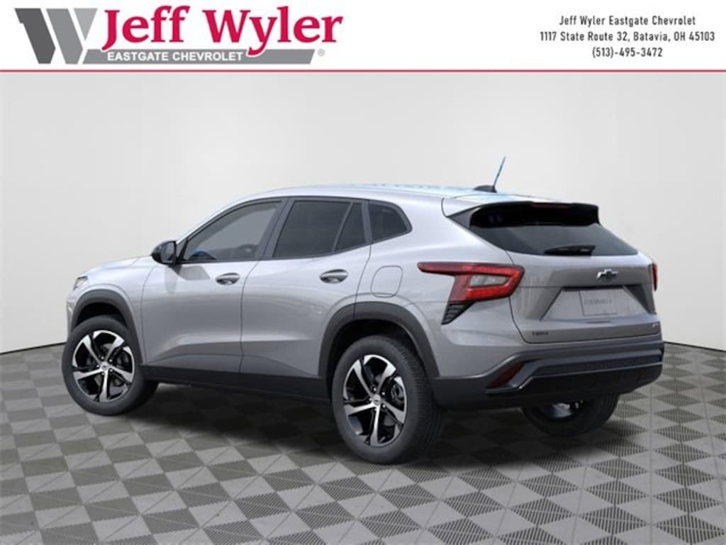 Sterling Gray Metallic 2026 Chevrolet Trax 1RS ECOTEC 1.2L Turbo FWD 6-Speed Automatic 28/32 City/Highway MPG Jeff Wyler Eastgate Auto Mall is pleased to offer this wonderful 2026 Chevrolet Trax 1RS in Sterling Gray Metallic. Well equipped with: 2-Way Adjustable Front Head Restraints, 3.50 Final Drive Axle Ratio, 4 Speakers, 4-Speaker Audio System Feature, 4-Way Manual Front Passenger Seat Adjuster, 4-Wheel Disc Brakes, 6-Way Manual Driver Seat Adjuster, ABS brakes, Air Conditioning, Alloy wheels, AM/FM radio: SiriusXM, Auto High-beam Headlights, Brake assist, Bumpers: body-color, Cloth Seat Trim, Compass, Delay-off headlights, Driver door bin, Driver vanity mirror, Dual front impact airbags, Dual front side impact airbags, Electronic Stability Control, Emergency communication system: OnStar One Essentials, Exterior Parking Camera Rear, Front anti-roll bar, Front Bucket Seats, Front Center Armrest, Front reading lights, Front wheel independent suspension, Fully automatic headlights, Heated door mirrors, Heated Driver and Front Passenger Seats, Heated front seats, Heated steering wheel, Illuminated entry, Leather steering wheel, Low tire pressure warning, Occupant sensing airbag, Outside temperature display, Overhead airbag, Overhead console, Panic alarm, Passenger door bin, Passenger vanity mirror, Power door mirrors, Power steering, Power windows, Premium audio system: Chevrolet Infotainment 3, Radio data system, Radio: Chevrolet Infotainment 3 System with AM/FM, Rear window defroster, Rear window wiper, Remote keyless entry, Security system, SiriusXM Trial Subscription, Speed control, Split folding rear seat, Spoiler, Sport steering wheel, Steering wheel mounted audio controls, Tachometer, Telescoping steering wheel, Tilt steering wheel, Traction control, Trip computer, Variably intermittent wipers, Wheels: 18 Black-Painted Machined Aluminum, and Wireless Apple CarPlay/Wireless Android Auto. 28/32 City/Highway MPG