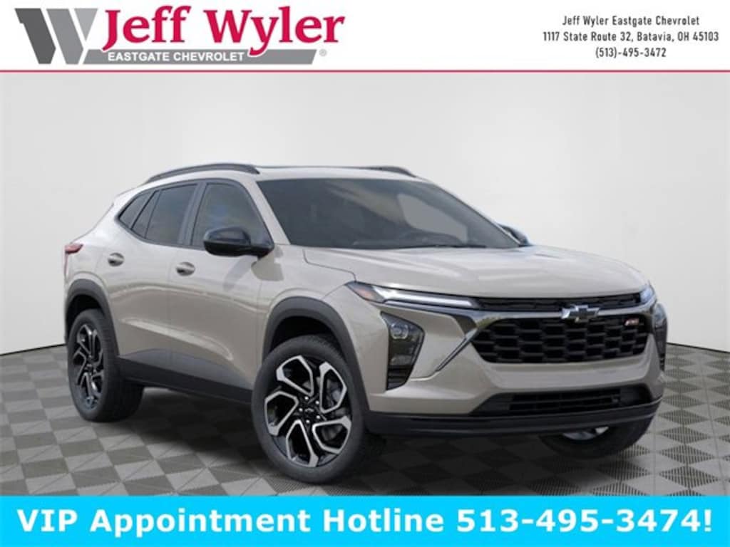 White Sands 2026 Chevrolet Trax 2RS ECOTEC 1.2L Turbo FWD 6-Speed Automatic 28/32 City/Highway MPG Jeff Wyler Eastgate Auto Mall is proud to offer this gorgeous-looking 2026 Chevrolet Trax 2RS in White Sands. Well equipped with: Driver Confidence Package (Adaptive Cruise Control, Lane Change Alert with Side Blind Zone Alert, Rear Cross Traffic Alert, and Rear Park Assist), Sunroof Package (Power Sliding Glass Sunroof with Manual Shade and Wireless Charging), 2-Way Adjustable Front Head Restraints, 2-Way Power Driver Lumbar Seat Adjuster, 3.50 Final Drive Axle Ratio, 4-Way Manual Front Passenger Seat Adjuster, 4-Wheel Disc Brakes, 6 Speakers, 6-Speaker Audio System Feature, 8-Way Power Driver Seat Adjuster, ABS brakes, Air Conditioning, Alloy wheels, AM/FM radio: SiriusXM, Auto High-beam Headlights, Automatic temperature control, Brake assist, Bumpers: body-color, Compass, Delay-off headlights, Driver door bin, Driver vanity mirror, Dual front impact airbags, Dual front side impact airbags, Electronic Stability Control, Emergency communication system: OnStar One Essentials, Evotex Seat Trim, Exterior Parking Camera Rear, Front anti-roll bar, Front Bucket Seats, Front Center Armrest, Front reading lights, Front wheel independent suspension, Fully automatic headlights, Heated door mirrors, Heated Driver and Front Passenger Seats, Heated front seats, Heated steering wheel, Illuminated entry, Leather steering wheel, Low tire pressure warning, Occupant sensing airbag, Outside temperature display, Overhead airbag, Overhead console, Panic alarm, Passenger door bin, Passenger vanity mirror, Power door mirrors, Power driver seat, Power steering, Power windows, Premium audio system: Chevrolet Infotainment 3, Radio data system, Radio: AM/FM Stereo Audio System, Rear window defroster, Rear window wiper, Remote keyless entry, Security system, SiriusXM Trial Subscription, Speed control, Split folding rear seat, Spoiler, Sport steering wheel, Steering wheel mounted audio controls, Tachometer, Telescoping steering wheel, Tilt steering wheel, Traction control, Trip computer, Variably intermittent wipers, Wheels: 19 Black-Painted Machined Aluminum, and Wireless Apple CarPlay/Wireless Android Auto. 28/32 City/Highway MPG