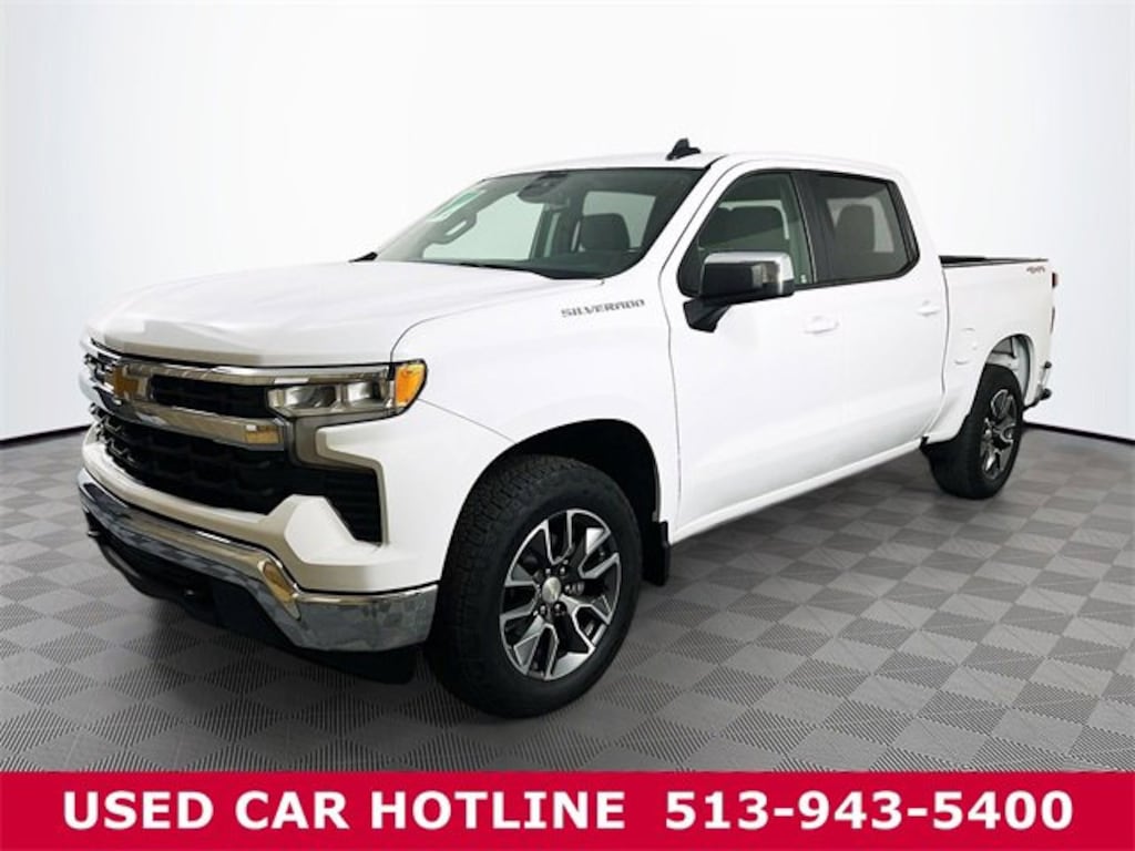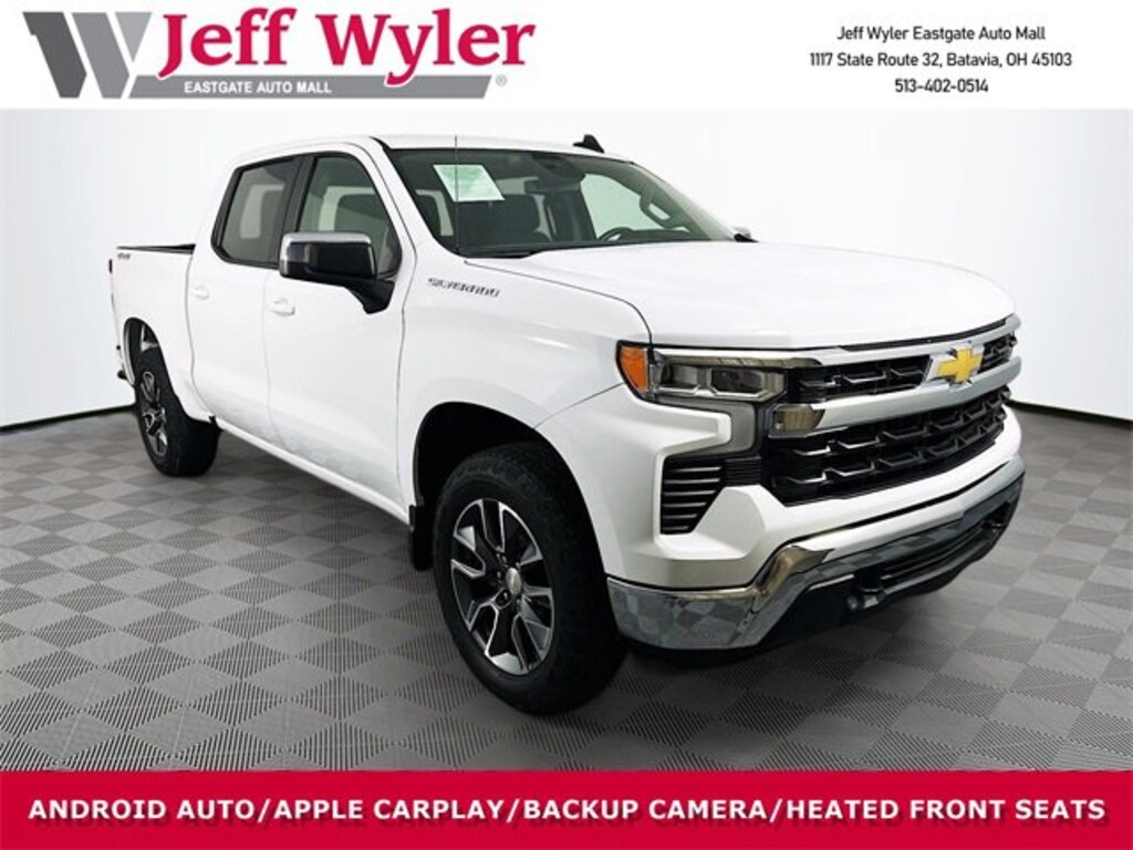 Jeff Wyler Eastgate Auto Mall is very proud to offer this fantastic-looking 2022 Chevrolet Silverado 1500 LT in Summit White. Well equipped with: Convenience Package (10-Way Power Driver Seat w/Lumbar, 120-Volt Bed Mounted Power Outlet, 120-Volt Instrument Panel Power Outlet, Dual Rear USB Ports (Charge Only), Dual-Zone Automatic Climate Control, Heated Driver & Front Outboard Passenger Seats, Heated Steering Wheel, Keyless Open & Start, Leather Wrapped Steering Wheel, and Manual Tilt/Telescoping Steering Column), High Capacity Suspension Package, Standard Suspension Package, Trailering Package (Hitch Guidance), 12.3 Multicolor Reconfigurable Digital Display, 3.42 Rear Axle Ratio, 4-Wheel Disc Brakes, 40/20/40 Front Split-Bench Seat, 6 Speakers, 6-Speaker Audio System, ABS brakes, Air Conditioning, All-Star Edition, Alloy wheels, AM/FM radio: SiriusXM with 360L, Apple CarPlay/Android Auto, Auto High-beam Headlights, Auto-Locking Rear Differential, Automatic Emergency Braking, Automatic temperature control, Bluetooth® For Phone, Brake assist, Bumpers: chrome, Chevrolet Connected Access Capable, Chrome Mirror Caps, Cloth Seat Trim, Color-Keyed Carpeting Floor Covering, Compass, Deep-Tinted Glass, Delay-off headlights, Driver door bin, Driver vanity mirror, Dual front impact airbags, Dual front side impact airbags, Electric Rear-Window Defogger, Electrical Steering Column Lock, Electronic Cruise Control, Electronic Stability Control, Following Distance Indicator, Forward Collision Alert, Front anti-roll bar, Front Center Armrest w/Storage, Front dual zone A/C, Front Frame-Mounted Black Recovery Hooks, Front Pedestrian Braking, Front reading lights, Front wheel independent suspension, Fully automatic headlights, HD Rear Vision Camera, Heated door mirrors, Heated front seats, Heated steering wheel, Illuminated entry, IntelliBeam Automatic High Beam On/Off, Lane Keep Assist w/Lane Departure Warning, LED Cargo Area Lighting, Low tire pressure warning, Not Equipped w/Heated/Ventilated Front Seats, Not Equipped w/Steering Column Lock, Occupant sensing airbag, OnStar & Chevrolet Connected Services Capable, Outside temperature display, Overhead airbag, Overhead console, Panic alarm, Passenger door bin, Passenger vanity mirror, Power door mirrors, Power driver seat, Power Front Windows w/Driver Express Up/Down, Power Front Windows w/Passenger Express Down, Power Rear Windows w/Express Down, Power steering, Power windows, Premium audio system: Chevrolet Infotainment 3 Premium, Radio data system, Radio: Chevrolet Infotainment 3 Premium System, Rear 60/40 Folding Bench Seat (Folds Up), Rear reading lights, Rear step bumper, Rear window defroster, Remote keyless entry, Remote Vehicle Starter System, Security system, SiriusXM w/360L, Speed control, Speed-sensing steering, Split folding rear seat, Steering Wheel Audio Controls, Steering wheel mounted audio controls, Tachometer, Telescoping steering wheel, Theft Deterrent System (Unauthorized Entry), Tilt steering wheel, Traction control, Trip computer, Variably intermittent wipers, Voltmeter, Wheels: 18 x 8.5 Bright Silver Painted Aluminum, Wheels: 20 x 9 Painted Aluminum, Wi-Fi Hot Spot Capable, and Wireless Phone Projection. CARFAX One-Owner. Clean CARFAX. Ask about available certifications. Used vehicles 10 years of age or newer with less than 100,000 miles are eligible for the Wyler Assurance Program, but eligible vehicles must pass our reconditioning process and multi-point inspection. Provided the vehicle passes inspection, vehicles will be eligible for the 6 month/6,000 mile limited warranty. The 6 month/6,000 mile limited warranty is NOT available on AS-IS vehicles, wholesale vehicles, lease buyback/pass-thru vehicles or un-inspected vehicles. Note that this program can also apply to vehicles where the remaining factory coverage is less than 6 months or 6,000 miles. Please check the Federal Trade Commission (FTC) Buyers guide on the vehi