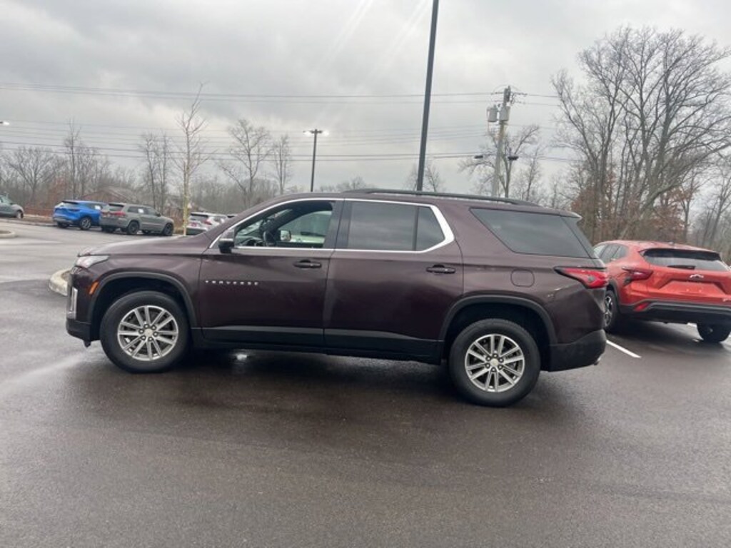 Jeff Wyler Eastgate Auto Mall is proud to offer this gorgeous-looking 2023 Chevrolet Traverse LT in Black Cherry Metallic. Well equipped with: Convenience & Driver Confidence Package (4.2 Multi-Color Enhanced Driver Instrument Display, Heated Driver & Front Passenger Seats, Radio: Chevrolet Infotainment 3 Plus System, Rear Power Liftgate, Remote Start, SiriusXM w/360L, and Universal Home Remote), Preferred Equipment Group 1LT, Trailering Equipment (Heavy-Duty Cooling System and Trailering Assist Guidelines), 2-Way Manual Front Passenger Seat Adjuster, 3.49 Axle Ratio, 3rd row seats: split-bench, 4-Wheel Disc Brakes, 6 Speakers, 6-Speaker Audio System Feature, 8-Way Power Driver Seat Adjuster, ABS brakes, Air Conditioning, Alloy wheels, AM/FM radio: SiriusXM, Apple CarPlay/Android Auto, Auto High-beam Headlights, Automatic temperature control, Black Roof Rails, Brake assist, Bumpers: body-color, Compass, Delay-off headlights, Driver door bin, Driver vanity mirror, Dual front impact airbags, Dual front side impact airbags, Electronic Stability Control, Emergency communication system, Exterior Parking Camera Rear, Four wheel independent suspension, Front anti-roll bar, Front Bucket Seats, Front Center Armrest, Front dual zone A/C, Front reading lights, Fully automatic headlights, Heated door mirrors, Hitch Guidance w/Hitch View, Illuminated entry, Leather steering wheel, Low tire pressure warning, Not Equipped w/Rear Park Assist (060), Occupant sensing airbag, Outside temperature display, Overhead airbag, Overhead console, Panic alarm, Passenger door bin, Passenger vanity mirror, Power door mirrors, Power Driver Lumbar Control, Power driver seat, Power steering, Power windows, Premium Cloth Seat Trim, Radio data system, Radio: Chevrolet Infotainment System AM/FM Stereo, Rear air conditioning, Rear anti-roll bar, Rear reading lights, Rear window defroster, Rear window wiper, Remote keyless entry, Security system, SiriusXM Radio, Speed control, Speed-sensing steering, Spoiler, Steering wheel mounted audio controls, Tachometer, Telescoping steering wheel, Tilt steering wheel, Traction control, Trip computer, Turn signal indicator mirrors, Variably intermittent wipers, Voltmeter, and Wheels: 18 Bright Silver-Painted Aluminum. Clean CARFAX. Ask about available certifications. Used vehicles 10 years of age or newer with less than 100,000 miles are eligible for the Wyler Assurance Program, but eligible vehicles must pass our reconditioning process and multi-point inspection. Provided the vehicle passes inspection, vehicles will be eligible for the 6 month/6,000 mile limited warranty. The 6 month/6,000 mile limited warranty is NOT available on AS-IS vehicles, wholesale vehicles, lease buyback/pass-thru vehicles or un-inspected vehicles. Note that this program can also apply to vehicles where the remaining factory coverage is less than 6 months or 6,000 miles. Please check the Federal Trade Commission (FTC) Buyers guide on the vehicle for full details as to whether or not warranty coverage may apply. Contact Dealer for additional details. The Wyler Assurance 6 month/6,000 Mile limited warranty ends 6 months from the date of the Retail Purchase Agreement (BUYERS ORDER) or when the vehicle's odometer registers 6,000 additional miles to the mileage listed on the BUYERS ORDER, whichever comes first. Your Deductible - The warranty holder on your contract pays the first $100 of each covered repair.