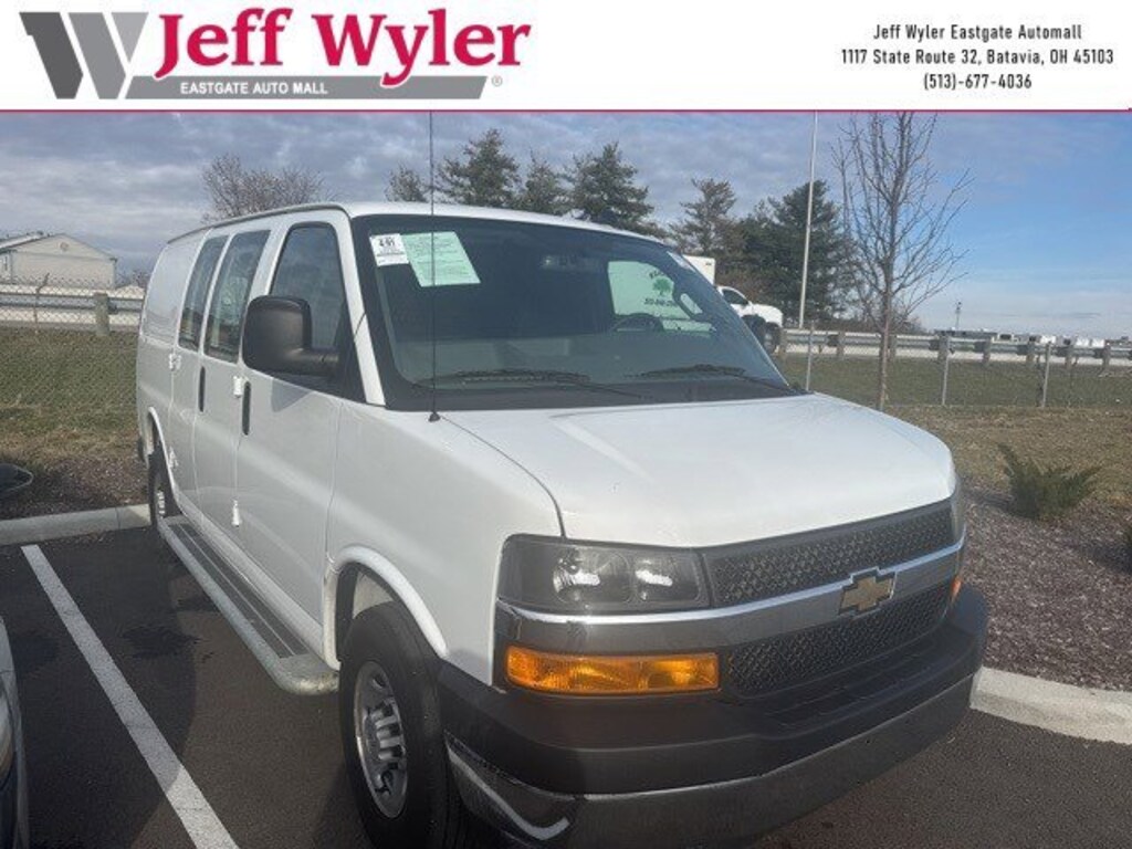 Jeff Wyler Eastgate Auto Mall is honored to offer this superb 2024 Chevrolet Express 2500 Work Van in Summit White. Well equipped with: Chrome Appearance Package (Chrome Grille and Front & Rear Chrome Bumpers w/Step-Pad), Driver Convenience Package (Cruise Control and Tilt Steering Wheel), Preferred Equipment Group 1WT, 16 x 6.5 Steel Wheels, 2 Speakers, 3.42 Rear Axle Ratio, 4-Wheel Disc Brakes, ABS brakes, Air Conditioning, AM/FM radio, AM/FM Stereo w/MP3 Player, Black Rubberized-Vinyl Front Only Floor Covering, Delay-off headlights, Driver & Front Passenger High-Back Bucket Seats, Driver door bin, Driver's Seat Mounted Armrest, Dual front impact airbags, Dual front side impact airbags, Electronic Stability Control, Emergency communication system: OnStar and Chevrolet connected services capable, Engine Cover Console w/Swing-Out Storage Bin, Exterior Parking Camera Rear, Fixed Rear Door Window Glass, Fixed Rear Side Door Window Glass, Front anti-roll bar, Front Bucket Seats, Front Reclining High-Back Bucket Seats, Front wheel independent suspension, Full-Length Black Rubberized-Vinyl Floor Covering, Fully automatic headlights, Heated door mirrors, Low tire pressure warning, Occupant sensing airbag, Overhead airbag, Passenger cancellable airbag, Passenger door bin, Passenger seat mounted armrest, Power door mirrors, Power steering, Power windows, Rear & Side Cargo Door Glass, Rear Side Door Glass Window Security Bar, Reclining Front Bucket Seats w/Inboard Armrests, Single-Zone Manual Air Conditioning, Tachometer, Traction control, Trip computer, Variably intermittent wipers, Vinyl Seat Trim, and Voltmeter. CARFAX One-Owner. Ask about available certifications. Used vehicles 10 years of age or newer with less than 100,000 miles are eligible for the Wyler Assurance Program, but eligible vehicles must pass our reconditioning process and multi-point inspection. Provided the vehicle passes inspection, vehicles will be eligible for the 6 month/6,000 mile limited warranty. The 6 month/6,000 mile limited warranty is NOT available on AS-IS vehicles, wholesale vehicles, lease buyback/pass-thru vehicles or un-inspected vehicles. Note that this program can also apply to vehicles where the remaining factory coverage is less than 6 months or 6,000 miles. Please check the Federal Trade Commission (FTC) Buyers guide on the vehicle for full details as to whether or not warranty coverage may apply. Contact Dealer for additional details. The Wyler Assurance 6 month/6,000 Mile limited warranty ends 6 months from the date of the Retail Purchase Agreement (BUYERS ORDER) or when the vehicle's odometer registers 6,000 additional miles to the mileage listed on the BUYERS ORDER, whichever comes first. Your Deductible - The warranty holder on your contract pays the first $100 of each covered repair.