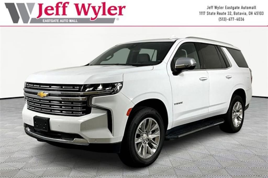 Jeff Wyler Eastgate Auto Mall is honored to offer this good-looking 2024 Chevrolet Tahoe Premier in Summit White. Well equipped with: License Plate Front Mounting Package, Preferred Equipment Group 1LZ (1st & 2nd Row Color-Keyed Carpeted Floor Mats, 2-Speed Active Electronic AutoTrac Transfer Case, 3rd Row 60/40 Power-Folding Split-Bench Seat, Auto-Dimming Inside Rear-View Mirror, Bose 10-Speaker Centerpoint Surround Audio Sys Ft, Bright Front & Rear Door Sill Plates, Chrome Door Handles w/Body-Color Strip, Chrome Mirror Caps, Color-Keyed Carpeting Floor Covering, Driver & Front Outboard Passenger Airbags, Dual Exhaust System, Enhanced Driver Information Center, Floor Console, Hands-Free Rear Power Programmable Liftgate, Heated 2nd Row Outboard Seats, Heated Steering Wheel, Hill Descent Control, Lane Change Alert w/Side Blind Zone Alert, LED Daytime Running Lamps, Memory Settings, Outside Heated Power-Adjustable Mirrors, Power Release 2nd Row Bucket Seats, Power Tilt & Telescopic Steering Column, Rear Cross Traffic Alert, Remote Start, Safety Alert Seat, SiriusXM w/360L, Universal Home Remote, Wireless Charging, and Wrapped Steering Wheel), 10 Speakers, 12-Way Power Driver & Passenger Seat Adjusters, 20 x 9 Polished Aluminum Wheels, 3.23 Rear Axle Ratio, 3rd row seats: split-bench, 4-Wheel Disc Brakes, ABS brakes, Adaptive suspension, Air Conditioning, Alloy wheels, AM/FM radio: SiriusXM with 360L, Apple CarPlay/Android Auto, Auto High-beam Headlights, Auto-dimming door mirrors, Auto-dimming Rear-View mirror, Auto-leveling suspension, Automatic temperature control, Brake assist, Bumpers: body-color, Compass, Delay-off headlights, Deleted 3 Years of OnStar Remote Access, Driver & Front Passenger Heated & Ventilated Seats, Driver door bin, Driver vanity mirror, Dual front impact airbags, Dual front side impact airbags, Electronic Stability Control, Emergency communication system: OnStar and Chevrolet connected services capable, Four wheel independent suspension, Front anti-roll bar, Front Bucket Seats, Front Center Armrest, Front dual zone A/C, Front High-Back Reclining Bucket Seats, Front reading lights, Fully automatic headlights, Garage door transmitter, Heated door mirrors, Heated Driver & Front Passenger Seats, Heated front seats, Heated rear seats, Heated steering wheel, Illuminated entry, Infotainment Display, Low tire pressure warning, Magnetic Ride Control Suspension, Memory seat, Navigation System, Occupant sensing airbag, Outside temperature display, Overhead airbag, Overhead console, Panic alarm, Passenger door bin, Passenger vanity mirror, Perforated Leather Seat Trim, Power door mirrors, Power driver seat, Power Liftgate, Power passenger seat, Power steering, Power windows, Premium audio system: Chevrolet Infotainment 3 Premium, Radio: Chevrolet Infotainment 3 Premium System, Rain sensing wipers, Rear air conditioning, Rear anti-roll bar, Rear reading lights, Rear window defroster, Rear window wiper, Remote keyless entry, Roof rack: xxxxxx, Security system, Speed control, Speed-sensing steering, Split folding rear seat, Spoiler, Steering wheel memory, Steering wheel mounted audio controls, Tachometer, Telescoping steering wheel, Tilt steering wheel, Traction control, Trip computer, Turn signal indicator mirrors, Variably intermittent wipers, Ventilated front seats, and Voltmeter. CARFAX One-Owner. Clean CARFAX. Ask about available certifications. Used vehicles 10 years of age or newer with less than 100,000 miles are eligible for the Wyler Assurance Program, but eligible vehicles must pass our reconditioning process and multi-point inspection. Provided the vehicle passes inspection, vehicles will be eligible for the 6 month/6,000 mile limited warranty. The 6 month/6,000 mile limited warranty is NOT available on AS-IS vehicles, wholesale vehicles, lease buyback/pass-thru vehicles or un-inspected vehicles. Note that this program can also apply to vehicles where the remaining factory coverage is less than 6 months o