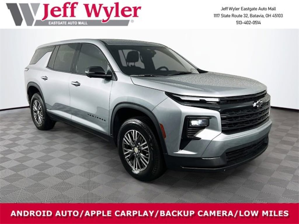 Jeff Wyler Eastgate Auto Mall is honored to offer this gorgeous 2024 Chevrolet Traverse LS in Sterling Gray Metallic. Well equipped with: Midnight/Sport Edition (High Gloss Black Door Upper Molding and Wheels: 20 High Gloss Black Painted Aluminum), Preferred Equipment Group 1LS, 3rd row seats: split-bench, 4-Way Manual Front Passenger Seat Adjuster, 4-Wheel Disc Brakes, 6 Speakers, 6-Speaker Audio System Feature, 6-Way Manual Driver Seat Adjuster, ABS brakes, Air Conditioning, Alloy wheels, AM/FM radio: SiriusXM with 360L, Apple CarPlay/Android Auto, Auto High-beam Headlights, Automatic temperature control, Brake assist, Bumpers: body-color, Compass, Delay-off headlights, Driver door bin, Driver vanity mirror, Dual front impact airbags, Dual front side impact airbags, Electronic Stability Control, Emergency communication system, Exterior Parking Camera Rear, Four wheel independent suspension, Front anti-roll bar, Front Bucket Seats, Front Center Armrest, Front dual zone A/C, Front reading lights, Fully automatic headlights, Heated door mirrors, Heated front seats, Heated steering wheel, Illuminated entry, Low tire pressure warning, Navigation System, Occupant sensing airbag, Outside temperature display, Overhead airbag, Overhead console, Panic alarm, Passenger door bin, Passenger vanity mirror, Power door mirrors, Power Liftgate, Power steering, Power windows, Premium Cloth Seat Trim, Radio data system, Radio: 17.7 Diagonal Display, Rear air conditioning, Rear anti-roll bar, Rear reading lights, Rear window defroster, Rear window wiper, Remote keyless entry, Security system, SiriusXM w/360L, Speed control, Speed-sensing steering, Split folding rear seat, Spoiler, Steering wheel mounted audio controls, Tachometer, TBD Axle Ratio, Telescoping steering wheel, Tilt steering wheel, Traction control, Trip computer, Turn signal indicator mirrors, Variably intermittent wipers, Voltmeter, and Wheels: 18 Grazen Metallic Machined-Face Aluminum. CARFAX One-Owner. Clean CARFAX. Ask about available certifications. Used vehicles 10 years of age or newer with less than 100,000 miles are eligible for the Wyler Assurance Program, but eligible vehicles must pass our reconditioning process and multi-point inspection. Provided the vehicle passes inspection, vehicles will be eligible for the 6 month/6,000 mile limited warranty. The 6 month/6,000 mile limited warranty is NOT available on AS-IS vehicles, wholesale vehicles, lease buyback/pass-thru vehicles or un-inspected vehicles. Note that this program can also apply to vehicles where the remaining factory coverage is less than 6 months or 6,000 miles. Please check the Federal Trade Commission (FTC) Buyers guide on the vehicle for full details as to whether or not warranty coverage may apply. Contact Dealer for additional details. The Wyler Assurance 6 month/6,000 Mile limited warranty ends 6 months from the date of the Retail Purchase Agreement (BUYERS ORDER) or when the vehicle's odometer registers 6,000 additional miles to the mileage listed on the BUYERS ORDER, whichever comes first. Your Deductible - The warranty holder on your contract pays the first $100 of each covered repair.
