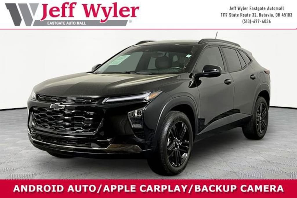 Jeff Wyler Eastgate Auto Mall is proud to offer this handsome 2024 Chevrolet Trax ACTIV in Mosaic Black Metallic. Well equipped with: Driver Confidence Package (Adaptive Cruise Control, Lane Change Alert w/Side Blind Zone Alert, and Rear Cross-Traffic Alert), Preferred Equipment Group 1SA, 2-Way Adjustable Front Head Restraints, 2-Way Power Driver Lumbar Seat Adjuster, 3.50 Final Drive Axle Ratio, 4-Way Manual Front Passenger Seat Adjuster, 4-Wheel Disc Brakes, 6 Speakers, 6-Speaker Audio System Feature, 8-Way Power Driver Seat Adjuster, ABS brakes, Air Conditioning, Alloy wheels, AM/FM radio: SiriusXM, Auto High-beam Headlights, Automatic temperature control, Brake assist, Bumpers: body-color, Compass, Delay-off headlights, Driver door bin, Driver vanity mirror, Dual front impact airbags, Dual front side impact airbags, Electronic Stability Control, Emergency communication system: OnStar and Chevrolet connected services capable, Evotex Seat Trim, Exterior Parking Camera Rear, Front anti-roll bar, Front Bucket Seats, Front Center Armrest, Front reading lights, Front wheel independent suspension, Fully automatic headlights, Heated door mirrors, Heated Driver & Front Passenger Seats, Heated front seats, Heated steering wheel, Illuminated entry, Low tire pressure warning, Occupant sensing airbag, Outside temperature display, Overhead airbag, Overhead console, Panic alarm, Passenger door bin, Passenger vanity mirror, Power door mirrors, Power driver seat, Power steering, Power windows, Premium audio system: Chevrolet Infotainment 3, Radio data system, Radio: Audio System w/AM/FM, Rear Park Assist (DISC), Rear window defroster, Rear window wiper, Remote keyless entry, Security system, SiriusXM, Speed control, Split folding rear seat, Spoiler, Steering wheel mounted audio controls, Tachometer, Telescoping steering wheel, Tilt steering wheel, Traction control, Trip computer, Variably intermittent wipers, and Wheels: 18 Black-Painted Aluminum. CARFAX One-Owner. Clean CARFAX. Awards:* Car and Driver 10 BestCar and Driver, January 2017. Ask about available certifications. Used vehicles 10 years of age or newer with less than 100,000 miles are eligible for the Wyler Assurance Program, but eligible vehicles must pass our reconditioning process and multi-point inspection. Provided the vehicle passes inspection, vehicles will be eligible for the 6 month/6,000 mile limited warranty. The 6 month/6,000 mile limited warranty is NOT available on AS-IS vehicles, wholesale vehicles, lease buyback/pass-thru vehicles or un-inspected vehicles. Note that this program can also apply to vehicles where the remaining factory coverage is less than 6 months or 6,000 miles. Please check the Federal Trade Commission (FTC) Buyers guide on the vehicle for full details as to whether or not warranty coverage may apply. Contact Dealer for additional details. The Wyler Assurance 6 month/6,000 Mile limited warranty ends 6 months from the date of the Retail Purchase Agreement (BUYERS ORDER) or when the vehicle's odometer registers 6,000 additional miles to the mileage listed on the BUYERS ORDER, whichever comes first. Your Deductible - The warranty holder on your contract pays the first $100 of each covered repair.