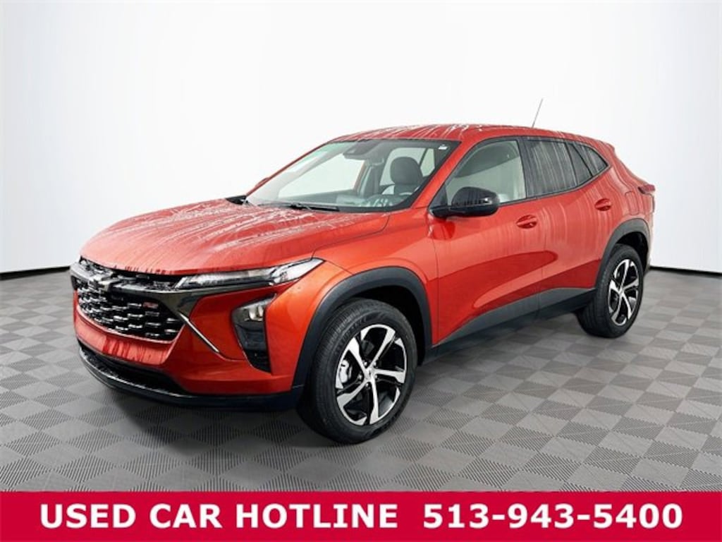Jeff Wyler Eastgate Auto Mall is pleased to offer this great 2024 Chevrolet Trax 1RS in Cayenne Orange Metallic. Well equipped with: Driver Confidence Package (Lane Change Alert w/Side Blind Zone Alert and Rear Cross-Traffic Alert), Preferred Equipment Group 1RS, 2-Way Adjustable Front Head Restraints, 3.50 Final Drive Axle Ratio, 4 Speakers, 4-Speaker Audio System Feature, 4-Way Manual Front Passenger Seat Adjuster, 4-Wheel Disc Brakes, 6-Way Manual Driver Seat Adjuster, ABS brakes, Air Conditioning, Alloy wheels, AM/FM radio: SiriusXM, Auto High-beam Headlights, Brake assist, Bumpers: body-color, Cloth Seat Trim, Compass, Delay-off headlights, Driver door bin, Driver vanity mirror, Dual front impact airbags, Dual front side impact airbags, Electronic Stability Control, Emergency communication system: OnStar and Chevrolet connected services capable, Exterior Parking Camera Rear, Front anti-roll bar, Front Bucket Seats, Front Center Armrest, Front reading lights, Front wheel independent suspension, Fully automatic headlights, Heated door mirrors, Heated Driver & Front Passenger Seats, Heated front seats, Heated steering wheel, Illuminated entry, Low tire pressure warning, Occupant sensing airbag, Outside temperature display, Overhead airbag, Overhead console, Panic alarm, Passenger door bin, Passenger vanity mirror, Power door mirrors, Power steering, Power windows, Premium audio system: Chevrolet Infotainment 3, Radio data system, Radio: Chevrolet Infotainment 3 System w/AM/FM, Rear Park Assist (DISC), Rear window defroster, Rear window wiper, Remote keyless entry, Security system, SiriusXM, Speed control, Split folding rear seat, Spoiler, Sport steering wheel, Steering wheel mounted audio controls, Tachometer, Telescoping steering wheel, Tilt steering wheel, Traction control, Trip computer, Variably intermittent wipers, and Wheels: 18 Black-Painted Machined Aluminum. CARFAX One-Owner. Awards: