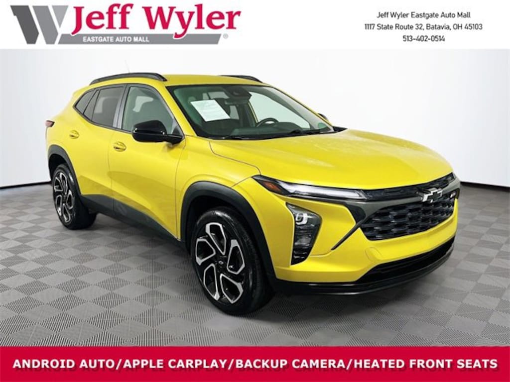 Jeff Wyler Eastgate Auto Mall is very proud to offer this wonderful-looking 2024 Chevrolet Trax 2RS in Nitro Yellow Metallic. Well equipped with: Driver Confidence Package (Adaptive Cruise Control, Lane Change Alert w/Side Blind Zone Alert, and Rear Cross-Traffic Alert), Preferred Equipment Group 2RS, 2-Way Adjustable Front Head Restraints, 3.50 Final Drive Axle Ratio, 4-Way Manual Front Passenger Seat Adjuster, 4-Wheel Disc Brakes, 6 Speakers, 6-Speaker Audio System Feature, 6-Way Manual Driver Seat Adjuster, ABS brakes, Air Conditioning, Alloy wheels, AM/FM radio: SiriusXM, Auto High-beam Headlights, Automatic temperature control, Brake assist, Bumpers: body-color, Compass, Delay-off headlights, Driver door bin, Driver vanity mirror, Dual front impact airbags, Dual front side impact airbags, Electronic Stability Control, Emergency communication system: OnStar and Chevrolet connected services capable, Evotex Seat Trim, Exterior Parking Camera Rear, Front anti-roll bar, Front Bucket Seats, Front Center Armrest, Front reading lights, Front wheel independent suspension, Fully automatic headlights, Heated door mirrors, Heated Driver & Front Passenger Seats, Heated front seats, Heated steering wheel, Illuminated entry, Low tire pressure warning, Occupant sensing airbag, Outside temperature display, Overhead airbag, Overhead console, Panic alarm, Passenger door bin, Passenger vanity mirror, Power door mirrors, Power steering, Power windows, Premium audio system: Chevrolet Infotainment 3, Radio data system, Radio: Audio System w/AM/FM, Rear Park Assist (DISC), Rear window defroster, Rear window wiper, Remote keyless entry, Security system, SiriusXM, Speed control, Split folding rear seat, Spoiler, Sport steering wheel, Steering wheel mounted audio controls, Tachometer, Telescoping steering wheel, Tilt steering wheel, Traction control, Trip computer, Variably intermittent wipers, and Wheels: 19 Black-Painted Machined Aluminum. CARFAX One-Owner. Awards: