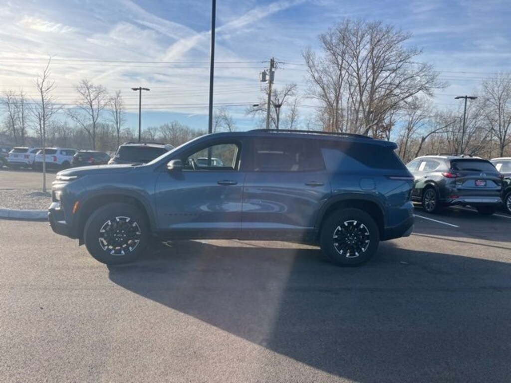 Jeff Wyler Eastgate Auto Mall is excited to offer this fantastic-looking 2025 Chevrolet Traverse Z71 in Lakeshore Blue Metallic. Well equipped with: Driver Confidence Package (HD Surround Vision, Power Outlet, Rear Pedestrian Alert, and Traffic Sign Recognition), Floor Liner Package (1st and 2nd Row All-Weather Floor Liners and 3rd Row All-Weather Floor Liner), Preferred Equipment Group 2Z7, 3rd row seats: split-bench, 4-Way Manual Front Passenger Seat Adjuster, 4-Wheel Disc Brakes, 6 Speakers, 6-Speaker Audio System Feature, 8-Way Power Driver Seat Adjuster, ABS brakes, Air Conditioning, Alloy wheels, AM/FM radio: SiriusXM with 360L, Apple CarPlay/Android Auto, Auto High-beam Headlights, Automatic temperature control, Brake assist, Child-Seat-Sensing Airbag, Compass, Delay-off headlights, Driver door bin, Driver vanity mirror, Dual front impact airbags, Dual front side impact airbags, Electronic Stability Control, Emergency communication system: OnStar, Evotex Seat Trim, Four wheel independent suspension, Front anti-roll bar, Front Bucket Seats, Front Center Armrest, Front dual zone A/C, Front reading lights, Fully automatic headlights, Heated door mirrors, Heated front seats, Heated steering wheel, Illuminated entry, Low tire pressure warning, Navigation System, Occupant sensing airbag, Outside temperature display, Overhead airbag, Overhead console, Panic alarm, Passenger door bin, Passenger vanity mirror, Power door mirrors, Power driver seat, Power Dual Glass Panoramic Sliding Sunroof, Power Liftgate, Power steering, Power windows, Radio data system, Radio: : Audio System w/17.7 Diagonal Display, Rear air conditioning, Rear anti-roll bar, Rear reading lights, Rear window defroster, Rear window wiper, Remote keyless entry, Security system, SiriusXM with 360L Trial Subscription, Speed control, Speed-sensing steering, Spoiler, Steering wheel mounted audio controls, Tachometer, Telescoping steering wheel, Tilt steering wheel, Traction control, Trip computer, Turn signal indicator mirrors, Variably intermittent wipers, Voltmeter, and Wheels: : 18 High Gloss Black Painted Aluminum. CARFAX One-Owner. Clean CARFAX. Ask about available certifications. Used vehicles 10 years of age or newer with less than 100,000 miles are eligible for the Wyler Assurance Program, but eligible vehicles must pass our reconditioning process and multi-point inspection. Provided the vehicle passes inspection, vehicles will be eligible for the 6 month/6,000 mile limited warranty. The 6 month/6,000 mile limited warranty is NOT available on AS-IS vehicles, wholesale vehicles, lease buyback/pass-thru vehicles or un-inspected vehicles. Note that this program can also apply to vehicles where the remaining factory coverage is less than 6 months or 6,000 miles. Please check the Federal Trade Commission (FTC) Buyers guide on the vehicle for full details as to whether or not warranty coverage may apply. Contact Dealer for additional details. The Wyler Assurance 6 month/6,000 Mile limited warranty ends 6 months from the date of the Retail Purchase Agreement (BUYERS ORDER) or when the vehicle's odometer registers 6,000 additional miles to the mileage listed on the BUYERS ORDER, whichever comes first. Your Deductible - The warranty holder on your contract pays the first $100 of each covered repair.