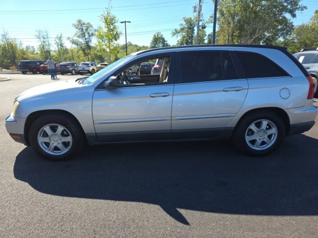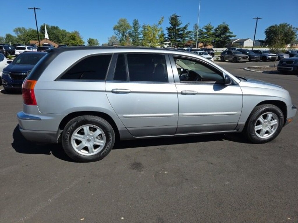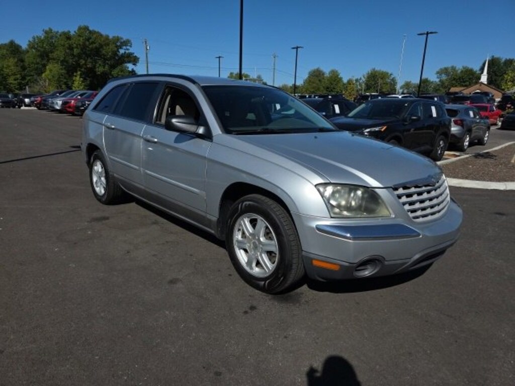 Jeff Wyler Eastgate Auto Mall is proud to offer this wonderful 2005 Chrysler Pacifica Touring in Bright Silver Metallic Clearcoat. Well equipped with: Quick Order Package 26S, Smoker's Group (Cigar Lighter and Front & Rear Ash Trays), 17 x 7.5 Aluminum Wheels, 3rd row seats: split-bench, 4-Wheel Disc Brakes, 7 Speakers, ABS brakes, Air Conditioning, Alloy wheels, AM/FM Compact Disc w/Changer Control, AM/FM radio, Auto-leveling suspension, Automatic temperature control, Bodyside moldings, CD player, Compass, Delay-off headlights, Driver door bin, Driver vanity mirror, Driver's Seat Mounted Armrest, Dual front impact airbags, Four wheel independent suspension, Front anti-roll bar, Front Bucket Seats, Front Center Armrest, Front dual zone A/C, Front reading lights, Garage door transmitter: HomeLink, Heated door mirrors, Illuminated entry, Knee airbag, Leather Shift Knob, Leather steering wheel, Manufacturer's Statement of Origin, Occupant sensing airbag, Outside temperature display, Overhead console, Panic alarm, Passenger door bin, Passenger seat mounted armrest, Passenger vanity mirror, Power door mirrors, Power driver seat, Power passenger seat, Power steering, Power windows, Premium Cloth Low-Back Bucket Seats, Rear air conditioning, Rear anti-roll bar, Rear reading lights, Rear window defroster, Rear window wiper, Remote keyless entry, Roof rack: rails only, Security system, Speed control, Steering wheel mounted audio controls, Tachometer, Tilt steering wheel, Trip computer, and Variably intermittent wipers. Ask about available certifications. Used vehicles 10 years of age or newer with less than 100,000 miles are eligible for the Wyler Assurance Program, but eligible vehicles must pass our reconditioning process and multi-point inspection. Provided the vehicle passes inspection, vehicles will be eligible for the 6 month/6,000 mile limited warranty. The 6 month/6,000 mile limited warranty is NOT available on AS-IS vehicles, wholesale vehicles, lease buyback/pass-thru vehicles or un-inspected vehicles. Note that this program can also apply to vehicles where the remaining factory coverage is less than 6 months or 6,000 miles. Please check the Federal Trade Commission (FTC) Buyers guide on the vehicle for full details as to whether or not warranty coverage may apply. Contact Dealer for additional details. The Wyler Assurance 6 month/6,000 Mile limited warranty ends 6 months from the date of the Retail Purchase Agreement (BUYERS ORDER) or when the vehicle's odometer registers 6,000 additional miles to the mileage listed on the BUYERS ORDER, whichever comes first. Your Deductible - The warranty holder on your contract pays the first $100 of each covered repair.