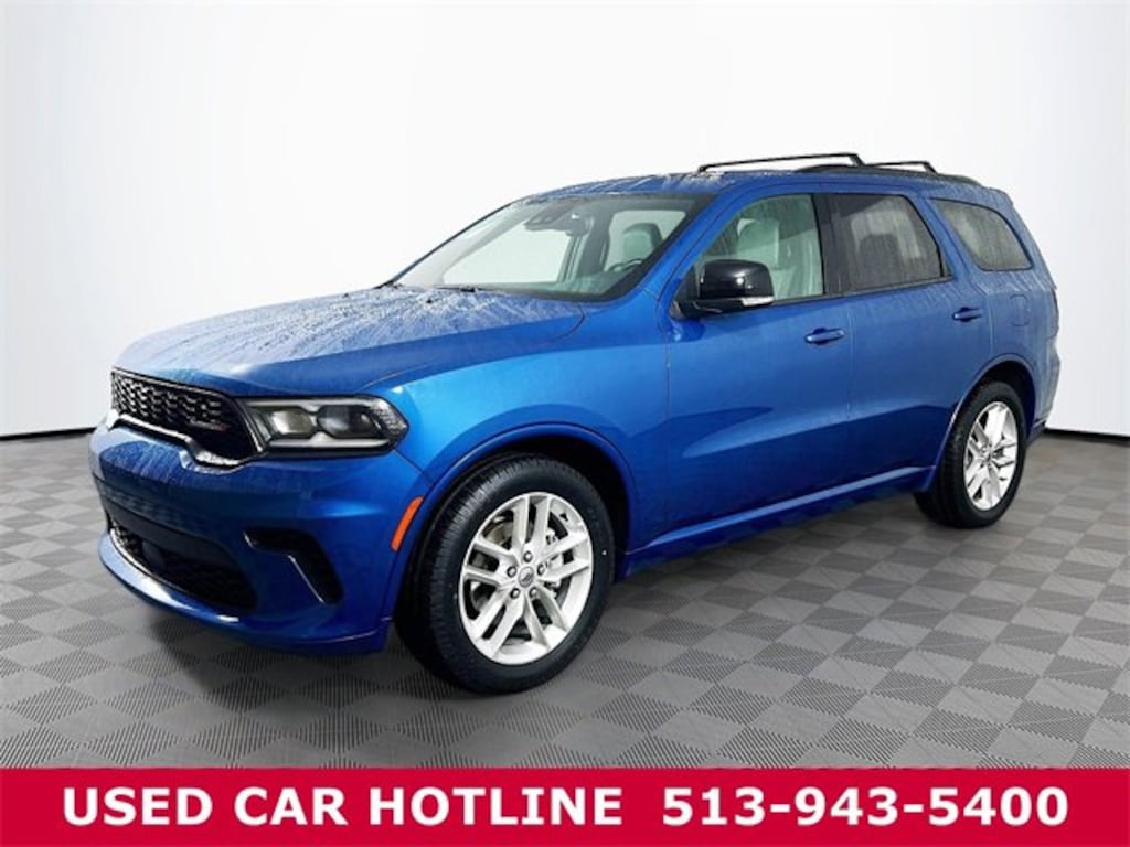 Jeff Wyler Eastgate Auto Mall is pumped up to offer this charming 2024 Dodge Durango GT Plus in Frostbite Pearlcoat. Well equipped with: Quick Order Package 2BG GT Plus (1-Year Trial (Registration Required), 10.1 Touchscreen Display, 115V Auxiliary Power Outlet, 180 Amp Alternator, 4G LTE Wi-Fi Hot Spot, 7 & 4 Pin Wiring Harness, Adaptive Cruise Control w/Stop, Apple CarPlay, Auto-Dimming Exterior Driver Mirror, Black Roof Rails, Blind Spot w/Trailer Detection, Class IV Receiver Hitch, Connected Travel & Traffic Services, Disassociated Touchscreen Display, Dual Remote USB Port - Charge Only, Exterior Mirrors w/Heating Element, Exterior Mirrors w/Memory, Exterior Mirrors w/Supplemental Signals, Floor Console w/Leather Armrest, For Details, Visit DriveUconnect.com, Full Speed Forward Collision Warning Plus, Global Telematics Box Module (TBM), Gloss Black Exterior Mirrors, Google Android Auto, GPS Antenna Input, GPS Navigation, HD Radio, Heated Second Row Seats, Heavy-Duty Engine Cooling, Integrated Center Stack Radio, Integrated Roof Rail Crossbars, Integrated Voice Command w/Bluetooth, Leather Trimmed Bucket Seats, Leather Wrapped Door Panels, LED Auxiliary Low Beam & Turn Signal, Power 6x9 Multi-Function Foldaway Mirrors, Power 8-Way Driver Memory 8-Way Passenger Seats, Power Driver/Passenger 4-Way Lumbar Adjust, Power Sunroof, Power Tilt & Telescopic Steering Column, Radio: Uconnect 5 Nav w/10.1 Display, Radio/Driver Seat/Mirrors Memory, Red Accent Stitching, SiriusXM Guardian - Included Trial (B), SiriusXM w/360L, Trailer Brake Control, USB Host Flip, and Ventilated Front Seats), 3.27 Rear Axle Ratio, 3rd row seats: split-bench, 4-Wheel Disc Brakes, 6 Speakers, ABS brakes, Air Conditioning, Alloy wheels, AM/FM radio: SiriusXM, Apple CarPlay/Android Auto, Auto-dimming Rear-View mirror, Auto-leveling suspension, Automatic temperature control, Brake assist, Bumpers: body-color, Cloth Bucket Seats w/Shift Insert, Compass, Delay-off headlights, Driver door bin, Driver vanity mirror, Dual front impact airbags, Dual front side impact airbags, Electronic Stability Control, Four wheel independent suspension, Front anti-roll bar, Front Bucket Seats, Front Center Armrest w/Storage, Front dual zone A/C, Front License Plate Bracket, Front reading lights, Fully automatic headlights, Garage door transmitter, Heated door mirrors, Heated front seats, Heated steering wheel, Illuminated entry, Knee airbag, Leather steering wheel, Low tire pressure warning, Occupant sensing airbag, Outside temperature display, Overhead airbag, Overhead console, Panic alarm, ParkView Rear Back-Up Camera, Passenger door bin, Passenger vanity mirror, Power door mirrors, Power driver seat, Power Liftgate, Power steering, Power windows, Radio data system, Radio: Uconnect 4 w/8.4 Display, Rear air conditioning, Rear anti-roll bar, Rear Load Leveling Suspension, Rear reading lights, Rear seat center armrest, Rear window defroster, Rear window wiper, Remote keyless entry, Speed control, Speed-sensing steering, Speed-Sensitive Wipers, Split folding rear seat, Spoiler, Sport steering wheel, Steering wheel mounted audio controls, Tachometer, Telescoping steering wheel, Tilt steering wheel, Traction control, Trip computer, Variably intermittent wipers, Voltmeter, and Wheels: 20 x 8.0 Fine SilveR. CARFAX One-Owner. Clean CARFAX. Ask about available certifications. Used vehicles 10 years of age or newer with less than 100,000 miles are eligible for the Wyler Assurance Program, but eligible vehicles must pass our reconditioning process and multi-point inspection. Provided the vehicle passes inspection, vehicles will be eligible for the 6 month/6,000 mile limited warranty. The 6 month/6,000 mile limited warranty is NOT available on AS-IS vehicles, wholesale vehicles, lease buyback/pass-thru vehicles or un-inspected vehicles. Note that this program can also apply to vehicles where the remaining factory coverage is less than 6 months or 6,000 miles. Please check the Federal