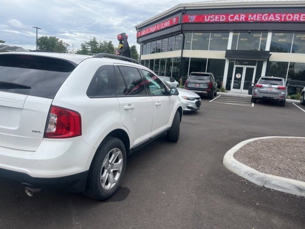 Jeff Wyler Eastgate Auto Mall is pumped up to offer this beautiful 2013 Ford Edge SEL in White Platinum Clearcoat Metallic. Well equipped with: Equipment Group 204A (Rear-View Camera), Leather Comfort Package (Leather-Trimmed Heated Bucket Seats), 18 Painted Aluminum Wheels, 3.16 Axle Ratio, 4-Wheel Disc Brakes, 6 Speakers, ABS brakes, Air Conditioning, Alloy wheels, AM/FM radio: SiriusXM, Auto-dimming Rear-View mirror, Automatic temperature control, Brake assist, Bumpers: body-color, CD player, Compass, Delay-off headlights, Driver door bin, Driver vanity mirror, Dual front impact airbags, Dual front side impact airbags, Electronic Stability Control, Four wheel independent suspension, Front anti-roll bar, Front Bucket Seats, Front Center Armrest w/Storage, Front dual zone A/C, Front License Plate Bracket, Front reading lights, Fully automatic headlights, Heated door mirrors, Illuminated entry, Low tire pressure warning, Occupant sensing airbag, Outside temperature display, Overhead airbag, Overhead console, Panic alarm, Passenger door bin, Passenger vanity mirror, Power door mirrors, Power driver seat, Power Liftgate, Power steering, Power windows, Radio: AM/FM Stereo w/Single CD/MP3 Capable, Rear anti-roll bar, Rear Parking Sensors, Rear reading lights, Rear seat center armrest, Rear window defroster, Rear window wiper, Remote keyless entry, Roof Rack Side Rails, Speed control, Speed-Sensitive Wipers, Split folding rear seat, Spoiler, Steering wheel mounted audio controls, Tachometer, Telescoping steering wheel, Tilt steering wheel, Traction control, Trip computer, Unique Cloth Bucket Seats, and Variably intermittent wipers. Reviews: