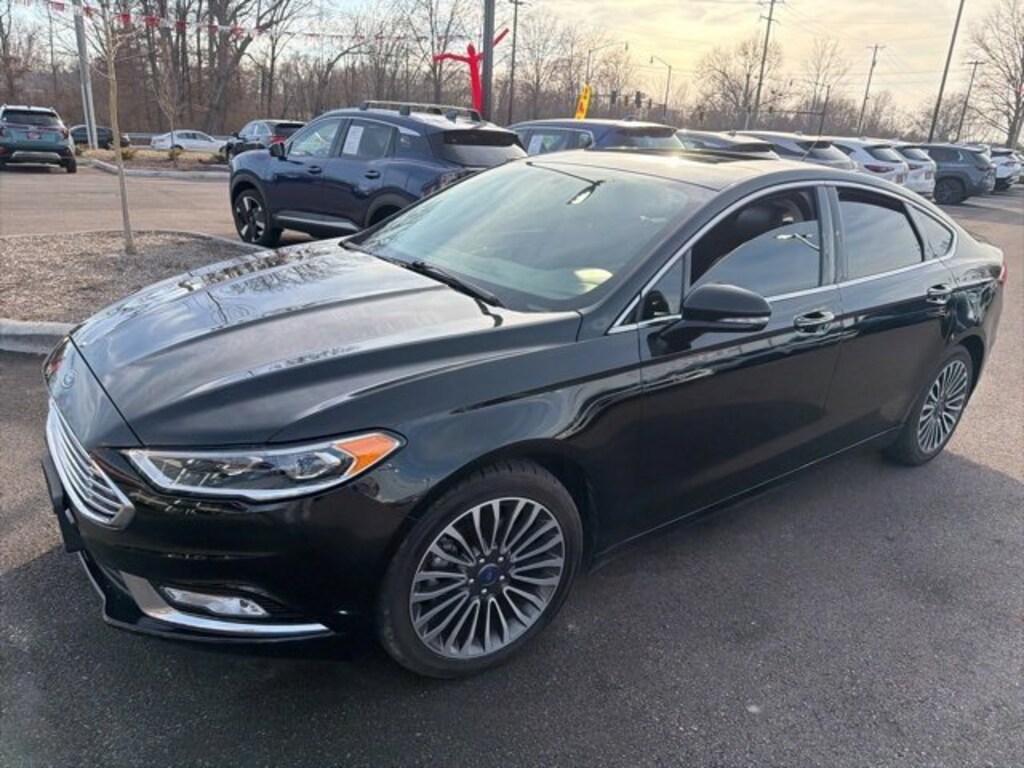 Jeff Wyler Eastgate Auto Mall is pumped up to offer this good-looking 2018 Ford Fusion Titanium in Shadow Black. Well equipped with: 12 Speakers, 4-Wheel Disc Brakes, ABS brakes, Air Conditioning, Alloy wheels, AM/FM radio: SiriusXM, AppLink/Apple CarPlay and Android Auto, Auto-dimming door mirrors, Auto-dimming Rear-View mirror, Automatic temperature control, Brake assist, Bumpers: body-color, CD player, Compass, Delay-off headlights, Driver door bin, Driver vanity mirror, Dual front impact airbags, Dual front side impact airbags, Electronic Stability Control, Emergency communication system: SYNC 3 911 Assist, Exterior Parking Camera Rear, Four wheel independent suspension, Front anti-roll bar, Front Bucket Seats, Front Center Armrest, Front dual zone A/C, Front fog lights, Front reading lights, Fully automatic headlights, Heated door mirrors, Heated front seats, Illuminated entry, Knee airbag, Low tire pressure warning, Memory seat, Occupant sensing airbag, Outside temperature display, Overhead airbag, Overhead console, Panic alarm, Passenger door bin, Passenger vanity mirror, Power door mirrors, Power driver seat, Power passenger seat, Power steering, Power windows, Radio data system, Radio: AM/FM Stereo/MP3/Single-CD, Rear anti-roll bar, Rear reading lights, Rear seat center armrest, Rear window defroster, Remote keyless entry, Security system, SiriusXM Radio, Speed control, Speed-sensing steering, Speed-Sensitive Wipers, Split folding rear seat, Spoiler, Steering wheel mounted audio controls, SYNC 3 Communications & Entertainment System, SYNC Connect, Tachometer, Telescoping steering wheel, Tilt steering wheel, Traction control, Trip computer, Turn signal indicator mirrors, and Variably intermittent wipers. Awards: