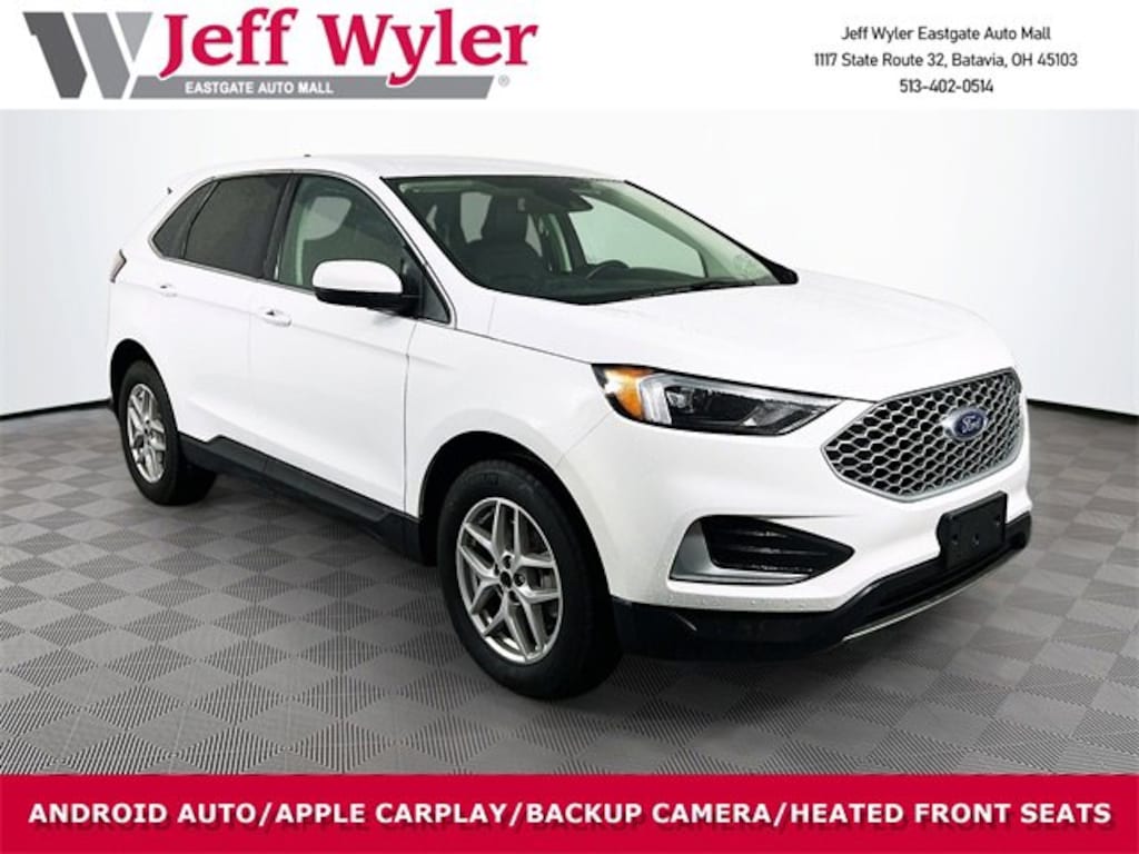 Jeff Wyler Eastgate Auto Mall is proud to offer this gorgeous-looking 2024 Ford Edge SEL in Oxford White. Well equipped with: 3.80 Axle Ratio, 4-Wheel Disc Brakes, 6 Speakers, ABS brakes, ActiveX Trimmed Heated Bucket Seats, Air Conditioning, Alloy wheels, AM/FM radio: SiriusXM with 360L, AM/FM Stereo, Auto High-beam Headlights, Auto-dimming Rear-View mirror, Automatic temperature control, Brake assist, Bumpers: body-color, Compass, Delay-off headlights, Driver door bin, Driver vanity mirror, Dual front impact airbags, Dual front side impact airbags, Electronic Stability Control, Emergency communication system: SYNC 4 911 Assist, FordPass Connect, Four wheel independent suspension, Front anti-roll bar, Front Bucket Seats, Front Center Armrest w/Storage, Front dual zone A/C, Front License Plate Bracket, Front reading lights, Fully automatic headlights, Heated door mirrors, Heated front seats, Illuminated entry, Knee airbag, Leather steering wheel, Low tire pressure warning, Occupant sensing airbag, Outside temperature display, Overhead airbag, Overhead console, Panic alarm, Passenger door bin, Passenger vanity mirror, Power door mirrors, Power driver seat, Power Liftgate, Power passenger seat, Power steering, Power windows, Rear anti-roll bar, Rear Parking Sensors, Rear reading lights, Rear seat center armrest, Rear window defroster, Rear window wiper, Remote keyless entry, SiriusXM w/360L, Speed control, Speed-Sensitive Wipers, Split folding rear seat, Spoiler, Steering wheel mounted audio controls, SYNC 4A w/Enhanced Voice Recognition, Tachometer, Telescoping steering wheel, Tilt steering wheel, Traction control, Trip computer, and Variably intermittent wipers. CARFAX One-Owner. Clean CARFAX. Ask about available certifications. Used vehicles 10 years of age or newer with less than 100,000 miles are eligible for the Wyler Assurance Program, but eligible vehicles must pass our reconditioning process and multi-point inspection. Provided the vehicle passes inspection, vehicles will be eligible for the 6 month/6,000 mile limited warranty. The 6 month/6,000 mile limited warranty is NOT available on AS-IS vehicles, wholesale vehicles, lease buyback/pass-thru vehicles or un-inspected vehicles. Note that this program can also apply to vehicles where the remaining factory coverage is less than 6 months or 6,000 miles. Please check the Federal Trade Commission (FTC) Buyers guide on the vehicle for full details as to whether or not warranty coverage may apply. Contact Dealer for additional details. The Wyler Assurance 6 month/6,000 Mile limited warranty ends 6 months from the date of the Retail Purchase Agreement (BUYERS ORDER) or when the vehicle's odometer registers 6,000 additional miles to the mileage listed on the BUYERS ORDER, whichever comes first. Your Deductible - The warranty holder on your contract pays the first $100 of each covered repair.
