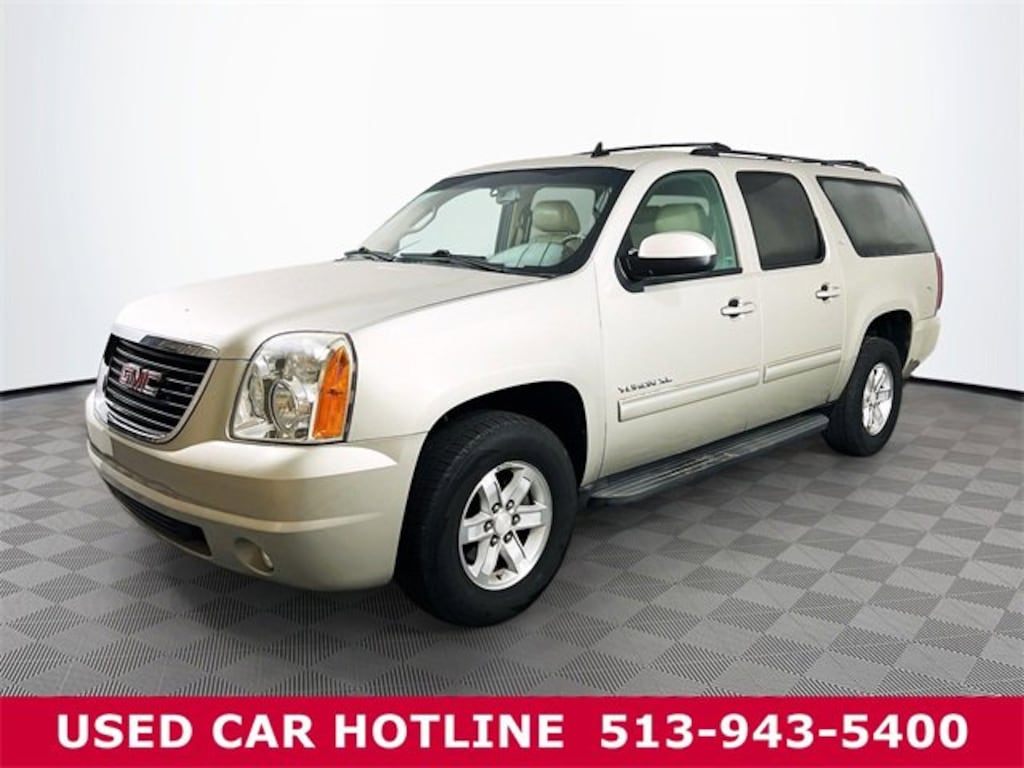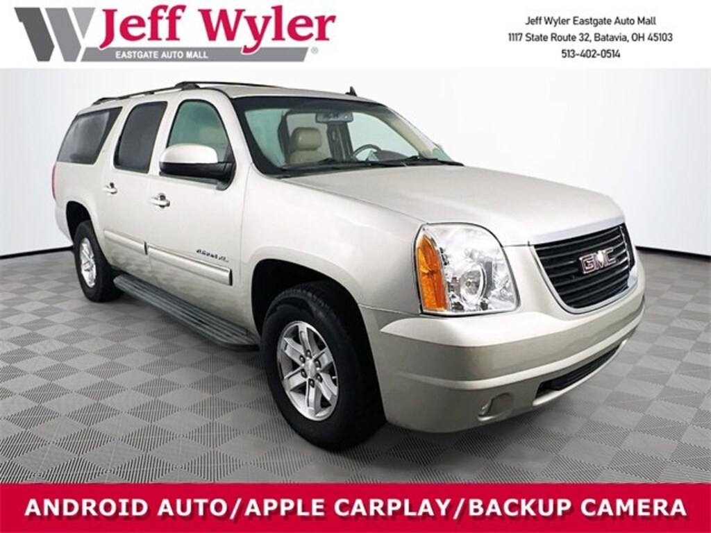 Jeff Wyler Eastgate Auto Mall is pumped up to offer this fantastic 2014 GMC Yukon XL SLT 1500 in Champagne Silver Metallic. Well equipped with: Premium Smooth Ride Suspension Package, SLT-1 Marketing Option Package (Auto-Dimming Rear-View Mirror w/Rear Camera Display), 17 x 7.5 Bright Aluminum Sport Wheels, 3.08 Rear Axle Ratio, 3rd row seats: split-bench, 4-Wheel Disc Brakes, 6-Way Power Driver Seat Adjuster, 6-Way Power Front Passenger Seat Adjuster, 9 Speakers, ABS brakes, Adjustable pedals, Air Conditioning, Alloy wheels, AM/FM radio: SiriusXM, AM/FM Stereo w/CD/MP3 Playback, Auto-dimming Rear-View mirror, Automatic temperature control, Bodyside moldings, Bumpers: body-color, CD player, Compass, Delay-off headlights, Driver door bin, Driver Manual Lumbar Control, Driver vanity mirror, Dual front impact airbags, Dual front side impact airbags, Electronic Stability Control, Emergency communication system: OnStar Directions & Connections, Exterior Parking Camera Rear, Floor Console, Front anti-roll bar, Front Bucket Seats, Front Center Armrest, Front dual zone A/C, Front fog lights, Front High-Back Reclining Heated Bucket Seats, Front reading lights, Front wheel independent suspension, Fully automatic headlights, Garage door transmitter, Heated door mirrors, Heated front seats, Illuminated entry, Low tire pressure warning, Occupant sensing airbag, Outside temperature display, Overhead airbag, Overhead console, Panic alarm, Passenger door bin, Passenger vanity mirror, Power door mirrors, Power driver seat, Power passenger seat, Power steering, Power windows, Radio data system, Rear air conditioning, Rear anti-roll bar, Rear audio controls, Rear reading lights, Rear seat center armrest, Rear Vision Camera, Rear window defroster, Rear window wiper, Remote keyless entry, Roof rack, Security system, SiriusXM Satellite Radio, Speed control, Split folding rear seat, Spoiler, Steering wheel mounted audio controls, Tachometer, Tilt steering wheel, Traction control, Trip computer, Ultrasoft Leather-Appointed Seat Trim, USB Port, Variably intermittent wipers, and Voltmeter. Reviews: