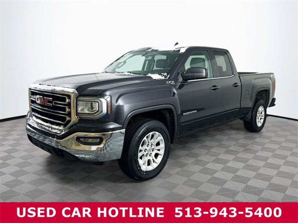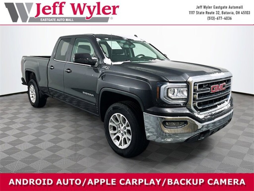 Jeff Wyler Eastgate Auto Mall is very proud to offer this superb 2016 GMC Sierra 1500 SLE in Iridium Metallic. Well equipped with: Off-Road Suspension Package (Hill Descent Control), Preferred Equipment Group 3SA (150 Amp Alternator, 2-Speed Active Electronic AutoTrac Transfer Case, 4.2 Diagonal Color Display Driver Info Center, Body Color Bodyside Moldings, Body Color Door Handles, Body Color Power Adjustable Heated Outside Mirrors, Body-Color Mirror Caps, Color-Keyed Carpeting w/Rubberized Vinyl Floor Mats, Deep-Tinted Glass, Driver & Front Passenger Illuminated Vanity Mirrors, EZ Lift & Lower Tailgate, Front Frame-Mounted Black Recovery Hooks, Heavy-Duty Rear Locking Differential, Leather Wrapped Steering Wheel w/Cruise Controls, LED Cargo Box Lighting, OnStar 6 Month Guidance Plan, OnStar w/4G LTE, Power Windows w/Driver Express Up & Down, Rear 60/40 Folding Bench Seat (Folds Up), Rear Vision Camera w/Dynamic Guide Lines, Rear Wheelhouse Liners, Remote Keyless Entry, Remote Locking Tailgate, Single Slot CD/MP3 Player, Single-Zone Air Conditioning, and Steering Wheel Audio Controls), SLE Value Package (10-Way Power Driver's Seat Adjuster, 110-Volt AC Power Outlet, Dual-Zone Automatic Climate Control, Electric Rear-Window Defogger, Remote Vehicle Starter System, Theft Deterrent System (Unauthorized Entry), Thin Profile LED Front Fog Lamps, and Universal Home Remote), Trailering Equipment, 3.42 Rear Axle Ratio, 4-Wheel Disc Brakes, 40/20/40 Front Split Bench Seat, 6 Speakers, 6-Speaker Audio System, ABS brakes, Air Conditioning, Alloy wheels, AM/FM radio: SiriusXM, Auxiliary External Transmission Oil Cooler, Bodyside moldings, Brake assist, Bumpers: chrome, CD player, Cloth Seat Trim, Compass, Delay-off headlights, Driver door bin, Driver vanity mirror, Dual front impact airbags, Dual front side impact airbags, Electronic Stability Control, Emergency communication system: OnStar Guidance, Exterior Parking Camera Rear, Front anti-roll bar, Front Center Armrest w/Storage, Front reading lights, Front wheel independent suspension, Fully automatic headlights, HD Radio, Heated door mirrors, Heavy Duty Suspension, High-Intensity Discharge Headlights, Illuminated entry, Integrated Trailer Brake Controller, LED Tailamps w/Signature, Low tire pressure warning, Manual Tilt/Telescoping Steering Column, Occupant sensing airbag, Outside temperature display, Overhead airbag, Overhead console, Panic alarm, Passenger door bin, Passenger vanity mirror, Power door mirrors, Power steering, Power windows, Premium audio system: IntelliLink, Radio data system, Radio: AM/FM Stereo w/8 Diagonal Color Touch Screen, Rear reading lights, Rear seat center armrest, Rear step bumper, Remote keyless entry, SiriusXM Satellite Radio, Speed control, Speed-sensing steering, Split folding rear seat, Steering wheel mounted audio controls, Tachometer, Tilt steering wheel, Traction control, Trip computer, Variably intermittent wipers, Voltmeter, Wheel Locks (Set of 4) (LPO), Wheels: 17 x 8 Bright Machined Aluminum, and Wheels: 18 x 8.5 Bright Machined Aluminum. Reviews: