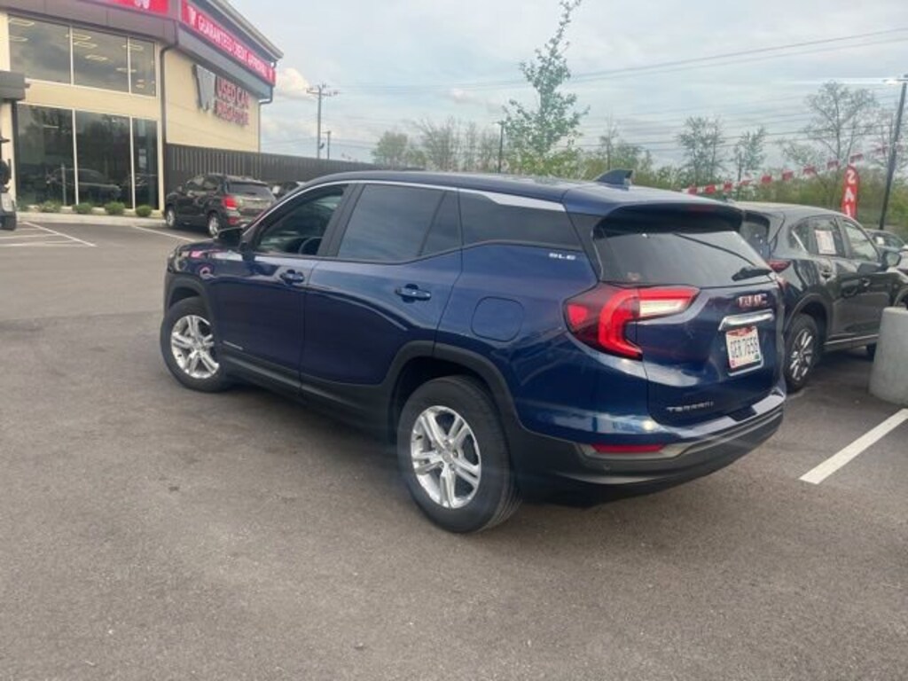 Jeff Wyler Eastgate Auto Mall is honored to offer this wonderful-looking 2022 GMC Terrain SLE in Marine Metallic. Well equipped with: GMC Pro Safety Plus (Adaptive Cruise Control, Lane Change Alert w/Side Blind Zone Alert, Outside Heated Power-Adjustable Mirrors, Rear Cross-Traffic Alert, Rear Park Assist, and Safety Alert Seat), Preferred Equipment Group 3SA, 2 USB Data Ports w/Auxiliary Input Jack, 3.47 Axle Ratio, 4-Way Manual Driver's Seat, 4-Way Manual Front Passenger Seat, 4-Wheel Disc Brakes, 4.2 Multi-Color Driver Information Screen, 6 Speakers, 6-Speaker Audio System Feature, ABS brakes, Air Conditioning, Alloy wheels, AM/FM radio: SiriusXM, Auto High-beam Headlights, Auto-dimming Rear-View mirror, Automatic temperature control, Bluetooth® For Phone, Brake assist, Bumpers: body-color, Compass, Delay-off headlights, Driver door bin, Driver vanity mirror, Dual front impact airbags, Dual front side impact airbags, Electronic Stability Control, Emergency communication system: OnStar Guidance, Four wheel independent suspension, Front anti-roll bar, Front Bucket Seats, Front Center Armrest, Front reading lights, Fully automatic headlights, Heated door mirrors, Illuminated entry, Low tire pressure warning, Occupant sensing airbag, Outside temperature display, Overhead airbag, Overhead console, Panic alarm, Passenger door bin, Passenger vanity mirror, Power door mirrors, Power steering, Power windows, Premium Cloth Seat Trim, Radio data system, Radio: GMC Infotainment Audio System w/7 Display, Rear anti-roll bar, Rear seat center armrest, Rear window defroster, Rear window wiper, Remote keyless entry, Security system, SiriusXM Radio, Speed control, Speed-sensing steering, Split folding rear seat, Spoiler, Steering wheel mounted audio controls, Tachometer, Telescoping steering wheel, Tilt steering wheel, Traction control, Trip computer, Variably intermittent wipers, Wheels: 17 x 7 Silver Painted Aluminum, and Wireless Apple CarPlay/Wireless Android Auto. Ask about available certifications. Used vehicles 10 years of age or newer with less than 100,000 miles are eligible for the Wyler Assurance Program, but eligible vehicles must pass our reconditioning process and multi-point inspection. Provided the vehicle passes inspection, vehicles will be eligible for the 6 month/6,000 mile limited warranty. The 6 month/6,000 mile limited warranty is NOT available on AS-IS vehicles, wholesale vehicles, lease buyback/pass-thru vehicles or un-inspected vehicles. Note that this program can also apply to vehicles where the remaining factory coverage is less than 6 months or 6,000 miles. Please check the Federal Trade Commission (FTC) Buyers guide on the vehicle for full details as to whether or not warranty coverage may apply. Contact Dealer for additional details. The Wyler Assurance 6 month/6,000 Mile limited warranty ends 6 months from the date of the Retail Purchase Agreement (BUYERS ORDER) or when the vehicle's odometer registers 6,000 additional miles to the mileage listed on the BUYERS ORDER, whichever comes first. Your Deductible - The warranty holder on your contract pays the first $100 of each covered repair.