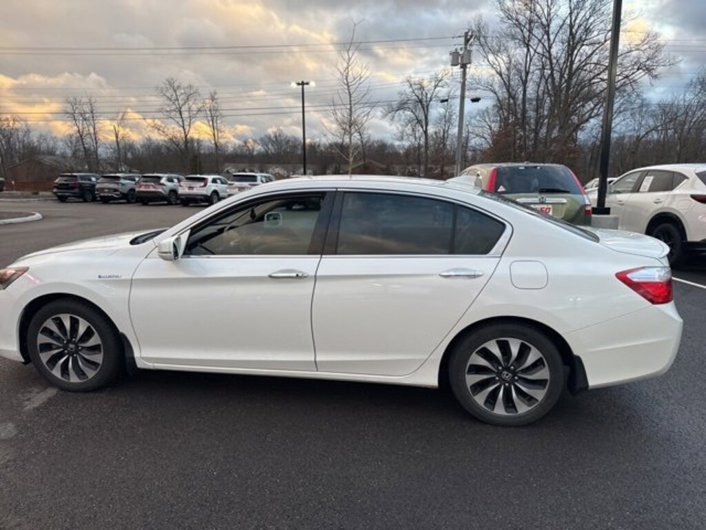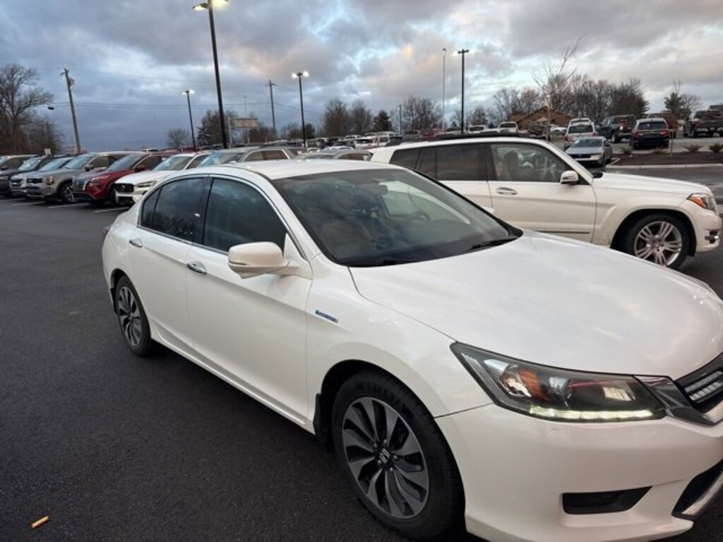 Jeff Wyler Eastgate Auto Mall is very proud to offer this charming 2014 Honda Accord Hybrid in White. Well equipped with: 160-Watt AM/FM/CD Audio System, 17 Alloy Wheels, 4-Wheel Disc Brakes, 6 Speakers, ABS brakes, Air Conditioning, Alloy wheels, AM/FM radio, Automatic temperature control, Bio-Fabric Seat Trim, Brake assist, Bumpers: body-color, CD player, Delay-off headlights, Driver door bin, Driver vanity mirror, Dual front impact airbags, Dual front side impact airbags, Electronic Stability Control, Exterior Parking Camera Rear, Four wheel independent suspension, Front anti-roll bar, Front Bucket Seats, Front Center Armrest, Front dual zone A/C, Front reading lights, Fully automatic headlights, Heated door mirrors, Illuminated entry, Low tire pressure warning, Occupant sensing airbag, Outside temperature display, Overhead airbag, Overhead console, Panic alarm, Passenger door bin, Passenger vanity mirror, Power door mirrors, Power driver seat, Power steering, Power windows, Radio data system, Rear anti-roll bar, Rear seat center armrest, Rear window defroster, Remote keyless entry, Security system, Speed control, Speed-sensing steering, Speed-Sensitive Wipers, Spoiler, Steering wheel mounted audio controls, Tachometer, Telescoping steering wheel, Tilt steering wheel, Traction control, Trip computer, Turn signal indicator mirrors, and Variably intermittent wipers. Clean CARFAX. Reviews:* Beyond its history of reliability and high resale value, the Accord is now more varied than ever. Whether you want a no-fuss and highly economical sedan, a sporty V6-powered coupe or a hybrid that attains 50 mpg in the city, the 2014 Accord offers something for everyone. Source: KBB.com* Excellent fuel economy; strong acceleration; roomy and high-quality interior; responsive handling; user-friendly interior controls. Source: EdmundsAwards:* Green Car Journal 2014 Green Car of the Year * 2014 KBB.com Brand Image AwardsKelley Blue Book Brand Image Awards are based on the Brand Watch(tm) study from Kelley Blue Book Market Intelligence. Award calculated among non-luxury shoppers. For more information, visit www.kbb.com. Kelley Blue Book is a registered trademark of Kelley Blue Book Co., Inc.Based on 2017 EPA mileage ratings. Use for comparison purposes only. Your mileage will vary depending on how you drive and maintain your vehicle, driving conditions and other factors. Ask about available certifications. Used vehicles 10 years of age or newer with less than 100,000 miles are eligible for the Wyler Assurance Program, but eligible vehicles must pass our reconditioning process and multi-point inspection. Provided the vehicle passes inspection, vehicles will be eligible for the 6 month/6,000 mile limited warranty. The 6 month/6,000 mile limited warranty is NOT available on AS-IS vehicles, wholesale vehicles, lease buyback/pass-thru vehicles or un-inspected vehicles. Note that this program can also apply to vehicles where the remaining factory coverage is less than 6 months or 6,000 miles. Please check the Federal Trade Commission (FTC) Buyers guide on the vehicle for full details as to whether or not warranty coverage may apply. Contact Dealer for additional details. The Wyler Assurance 6 month/6,000 Mile limited warranty ends 6 months from the date of the Retail Purchase Agreement (BUYERS ORDER) or when the vehicle's odometer registers 6,000 additional miles to the mileage listed on the BUYERS ORDER, whichever comes first. Your Deductible - The warranty holder on your contract pays the first $100 of each covered repair.