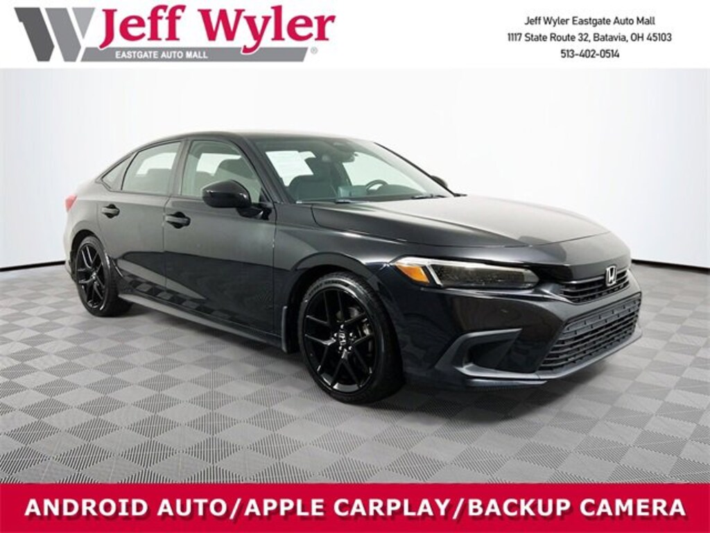 Jeff Wyler Eastgate Auto Mall is pleased to offer this terrific-looking 2023 Honda Civic Sport in Black. Well equipped with: 4-Wheel Disc Brakes, 8 Speakers, ABS brakes, Adaptive Cruise Control: Adaptive Cruise Control (ACC) with Low-Speed Follow, Air Conditioning, Alloy wheels, AM/FM radio, Apple CarPlay/Android Auto, Auto High-beam Headlights, Automatic temperature control, Brake assist, Bumpers: body-color, Cloth Seat Trim, Delay-off headlights, Driver door bin, Driver vanity mirror, Dual front impact airbags, Dual front side impact airbags, Electronic Stability Control, Emergency communication system: HondaLink, Exterior Parking Camera Rear, Four wheel independent suspension, Front anti-roll bar, Front Bucket Seats, Front Center Armrest, Front reading lights, Fully automatic headlights, Illuminated entry, Knee airbag, Leather Shift Knob, Leather steering wheel, Low tire pressure warning, Occupant sensing airbag, Outside temperature display, Overhead airbag, Panic alarm, Passenger door bin, Passenger vanity mirror, Power door mirrors, Power steering, Power windows, Radio data system, Radio: 180-Watt Audio System w/8 Speakers, Rear anti-roll bar, Rear side impact airbag, Rear window defroster, Remote keyless entry, Security system, Speed control, Speed-sensing steering, Steering wheel mounted audio controls, Tachometer, Telescoping steering wheel, Tilt steering wheel, Traction control, Trip computer, and Wheels: 18 Gloss Black Alloy. CARFAX One-Owner. Ask about available certifications. Used vehicles 10 years of age or newer with less than 100,000 miles are eligible for the Wyler Assurance Program, but eligible vehicles must pass our reconditioning process and multi-point inspection. Provided the vehicle passes inspection, vehicles will be eligible for the 6 month/6,000 mile limited warranty. The 6 month/6,000 mile limited warranty is NOT available on AS-IS vehicles, wholesale vehicles, lease buyback/pass-thru vehicles or un-inspected vehicles. Note that this program can also apply to vehicles where the remaining factory coverage is less than 6 months or 6,000 miles. Please check the Federal Trade Commission (FTC) Buyers guide on the vehicle for full details as to whether or not warranty coverage may apply. Contact Dealer for additional details. The Wyler Assurance 6 month/6,000 Mile limited warranty ends 6 months from the date of the Retail Purchase Agreement (BUYERS ORDER) or when the vehicle's odometer registers 6,000 additional miles to the mileage listed on the BUYERS ORDER, whichever comes first. Your Deductible - The warranty holder on your contract pays the first $100 of each covered repair.