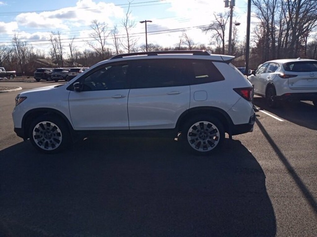 Jeff Wyler Eastgate Auto Mall is honored to offer this attractive-looking 2025 Honda Passport Black Edition in White. Well equipped with: 10 Speakers, 4-Wheel Disc Brakes, A/V remote: CabinControl, ABS brakes, Air Conditioning, Alloy wheels, AM/FM radio: SiriusXM, Apple CarPlay/Android Auto, Auto High-beam Headlights, Auto-dimming door mirrors, Auto-dimming Rear-View mirror, Automatic temperature control, Blind Spot Information (BSI) System warning, Brake assist, Bumpers: body-color, Compass, Delay-off headlights, Driver door bin, Driver vanity mirror, Driver's Seat Mounted Armrest, Dual front impact airbags, Dual front side impact airbags, Electronic Stability Control, Emergency communication system: HondaLink, Exterior Parking Camera Rear, Four wheel independent suspension, Front anti-roll bar, Front Bucket Seats, Front Center Armrest, Front dual zone A/C, Front fog lights, Front reading lights, Fully automatic headlights, Garage door transmitter: HomeLink, Heated and Ventilated Front Bucket Seats, Heated door mirrors, Heated front seats, Heated rear seats, Heated steering wheel, Illuminated entry, Lane departure: Lane Keeping Assist System (LKAS) active, Leather-Trimmed Seats, Low tire pressure warning, Navigation system: Honda Satellite-Linked Navigation System, Occupant sensing airbag, Outside temperature display, Overhead airbag, Overhead console, Panic alarm, Passenger door bin, Passenger seat mounted armrest, Passenger vanity mirror, Power door mirrors, Power driver seat, Power Liftgate, Power moonroof, Power passenger seat, Power steering, Power windows, Radio data system, Radio: 540-Watt Premium Audio System with 10 Speakers, Rain sensing wipers, Rear air conditioning, Rear anti-roll bar, Rear reading lights, Rear seat center armrest, Rear window defroster, Rear window wiper, Remote keyless entry, Security system, Speed control, Speed-sensing steering, Split folding rear seat, Spoiler, Steering wheel mounted audio controls, Tachometer, Telescoping steering wheel, Tilt steering wheel, Traction control, Trip computer, Turn signal indicator mirrors, Variably intermittent wipers, Ventilated front seats, and Wheels: 20 Berlina Black Alloy. Clean CARFAX. Ask about available certifications. Used vehicles 10 years of age or newer with less than 100,000 miles are eligible for the Wyler Assurance Program, but eligible vehicles must pass our reconditioning process and multi-point inspection. Provided the vehicle passes inspection, vehicles will be eligible for the 6 month/6,000 mile limited warranty. The 6 month/6,000 mile limited warranty is NOT available on AS-IS vehicles, wholesale vehicles, lease buyback/pass-thru vehicles or un-inspected vehicles. Note that this program can also apply to vehicles where the remaining factory coverage is less than 6 months or 6,000 miles. Please check the Federal Trade Commission (FTC) Buyers guide on the vehicle for full details as to whether or not warranty coverage may apply. Contact Dealer for additional details. The Wyler Assurance 6 month/6,000 Mile limited warranty ends 6 months from the date of the Retail Purchase Agreement (BUYERS ORDER) or when the vehicle's odometer registers 6,000 additional miles to the mileage listed on the BUYERS ORDER, whichever comes first. Your Deductible - The warranty holder on your contract pays the first $100 of each covered repair.