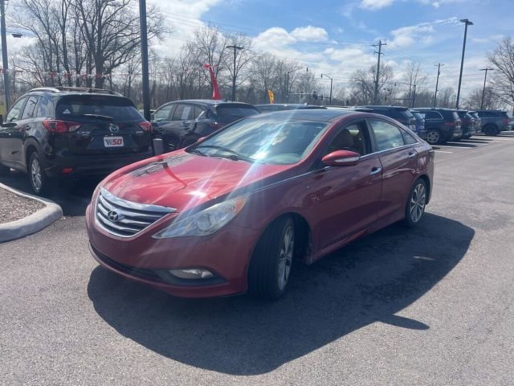 Jeff Wyler Eastgate Auto Mall is proud to offer this superb-looking 2014 Hyundai Sonata Limited in Venetian Red Metallic. Well equipped with: Technology Package 05, 18 x 7.5J Hyper Silver Aluminum Alloy Wheels, 4-Wheel Disc Brakes, 7 Speakers, ABS brakes, Air Conditioning, Alloy wheels, AM/FM radio: SiriusXM, Anti-whiplash front head restraints, Auto-dimming Rear-View mirror, Automatic temperature control, Brake assist, Bumpers: body-color, Cargo Net, Carpeted Floor Mats, CD player, Compass, Delay-off headlights, Driver door bin, Driver vanity mirror, Dual front impact airbags, Dual front side impact airbags, Electronic Stability Control, Emergency communication system: Blue Link, Exterior Parking Camera Rear, First Aid Kit, Four wheel independent suspension, Front anti-roll bar, Front Bucket Seats, Front Center Armrest w/Storage, Front dual zone A/C, Front fog lights, Front reading lights, Fully automatic headlights, Garage door transmitter: HomeLink, Heated door mirrors, Heated Front Bucket Seats, Heated front seats, Heated rear seats, Illuminated entry, Leather Seating Surfaces, Leather steering wheel, Low tire pressure warning, Occupant sensing airbag, Outside temperature display, Overhead airbag, Overhead console, Panic alarm, Passenger door bin, Passenger vanity mirror, Power door mirrors, Power driver seat, Power moonroof, Power steering, Power windows, Radio: AM/FM/SiriusXM/CD/MP3 Audio System, Rear anti-roll bar, Rear seat center armrest, Rear window defroster, Remote keyless entry, Security system, Speed control, Speed-sensing steering, Speed-Sensitive Wipers, Split folding rear seat, Steering wheel mounted audio controls, Tachometer, Telescoping steering wheel, Tilt steering wheel, Traction control, Trip computer, Turn signal indicator mirrors, Variably intermittent wipers, and Ventilated front seats. Clean CARFAX. Awards:* 2014 KBB.com 10 Best Late-Model Used Cars Under $15,000 * 2014 KBB.com 10 Best Used Family Cars Under $15,000 Ask about available certifications. Used vehicles 10 years of age or newer with less than 100,000 miles are eligible for the Wyler Assurance Program, but eligible vehicles must pass our reconditioning process and multi-point inspection. Provided the vehicle passes inspection, vehicles will be eligible for the 6 month/6,000 mile limited warranty. The 6 month/6,000 mile limited warranty is NOT available on AS-IS vehicles, wholesale vehicles, lease buyback/pass-thru vehicles or un-inspected vehicles. Note that this program can also apply to vehicles where the remaining factory coverage is less than 6 months or 6,000 miles. Please check the Federal Trade Commission (FTC) Buyers guide on the vehicle for full details as to whether or not warranty coverage may apply. Contact Dealer for additional details. The Wyler Assurance 6 month/6,000 Mile limited warranty ends 6 months from the date of the Retail Purchase Agreement (BUYERS ORDER) or when the vehicle's odometer registers 6,000 additional miles to the mileage listed on the BUYERS ORDER, whichever comes first. Your Deductible - The warranty holder on your contract pays the first $100 of each covered repair.