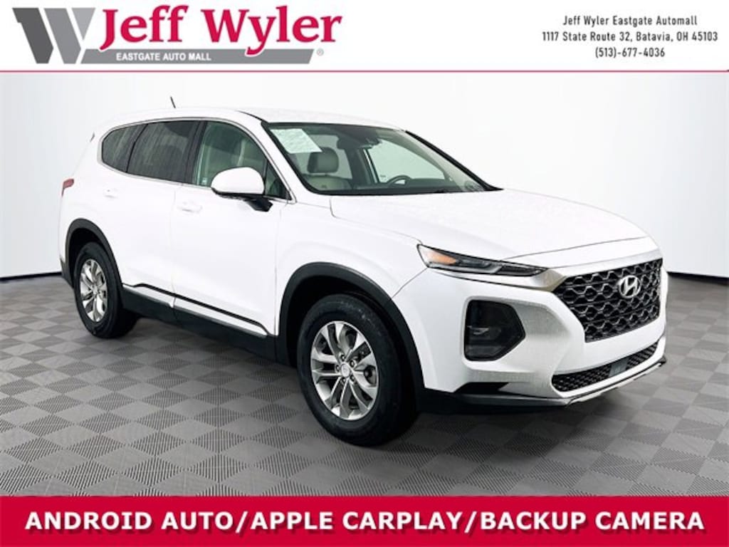 Jeff Wyler Eastgate Auto Mall is proud to offer this superb-looking 2020 Hyundai Santa Fe SE in Quartz White. Well equipped with: Option Group 01, 17 x 7.0J Alloy Wheels, 4-Wheel Disc Brakes, 6 Speakers, ABS brakes, Air Conditioning, Alloy wheels, AM/FM radio, Apple CarPlay & Android Auto, Auto High-beam Headlights, Axle Ratio 3.798, Brake assist, Bumpers: body-color, Cargo Cover, Cargo Net, Cargo Tray, Carpeted Floor Mats, Delay-off headlights, Driver door bin, Driver vanity mirror, Dual front impact airbags, Dual front side impact airbags, Electronic Stability Control, Exterior Parking Camera Rear, First Aid Kit, Four wheel independent suspension, Front anti-roll bar, Front Bucket Seats, Front Center Armrest, Front reading lights, Fully automatic headlights, Illuminated entry, Low tire pressure warning, Occupant sensing airbag, Outside temperature display, Overhead airbag, Overhead console, Panic alarm, Passenger door bin, Passenger vanity mirror, Power door mirrors, Power steering, Power windows, Radio: AM/FM/MP3 Display Audio, Rear anti-roll bar, Rear seat center armrest, Rear window defroster, Rear window wiper, Remote keyless entry, Security system, Speed control, Speed-sensing steering, Split folding rear seat, Spoiler, Stain-Resistant Cloth Seating Surfaces, Steering wheel mounted audio controls, Tachometer, Telescoping steering wheel, Tilt steering wheel, Traction control, Trip computer, and Variably intermittent wipers. CARFAX One-Owner. Ask about available certifications. Used vehicles 10 years of age or newer with less than 100,000 miles are eligible for the Wyler Assurance Program, but eligible vehicles must pass our reconditioning process and multi-point inspection. Provided the vehicle passes inspection, vehicles will be eligible for the 6 month/6,000 mile limited warranty. The 6 month/6,000 mile limited warranty is NOT available on AS-IS vehicles, wholesale vehicles, lease buyback/pass-thru vehicles or un-inspected vehicles. Note that this program can also apply to vehicles where the remaining factory coverage is less than 6 months or 6,000 miles. Please check the Federal Trade Commission (FTC) Buyers guide on the vehicle for full details as to whether or not warranty coverage may apply. Contact Dealer for additional details. The Wyler Assurance 6 month/6,000 Mile limited warranty ends 6 months from the date of the Retail Purchase Agreement (BUYERS ORDER) or when the vehicle's odometer registers 6,000 additional miles to the mileage listed on the BUYERS ORDER, whichever comes first. Your Deductible - The warranty holder on your contract pays the first $100 of each covered repair.