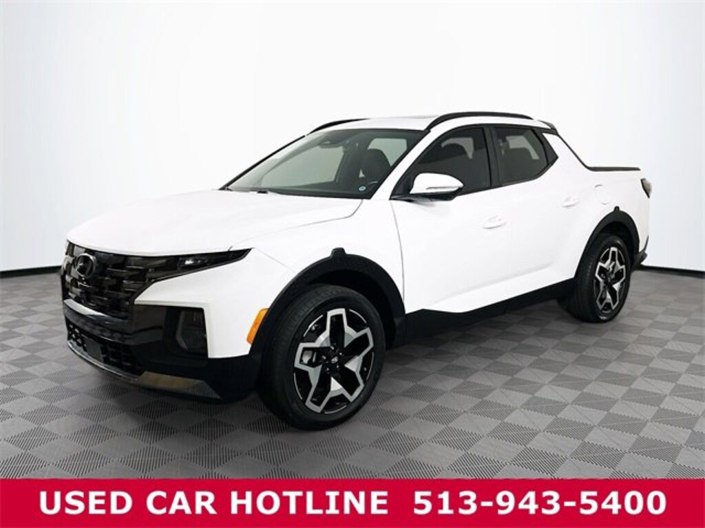 Jeff Wyler Eastgate Auto Mall is very proud to offer this charming-looking 2022 Hyundai Santa Cruz Limited in Ice White. Well equipped with: Option Group 01, 4-Wheel Disc Brakes, 4.846 Axle Ratio, 8 Speakers, ABS brakes, Air Conditioning, Alloy wheels, AM/FM radio: SiriusXM, Apple CarPlay & Android Auto, Auto High-beam Headlights, Auto-dimming Rear-View mirror, Auto-leveling suspension, Automatic temperature control, Brake assist, Bumpers: body-color, Delay-off headlights, Driver door bin, Driver vanity mirror, Dual front impact airbags, Dual front side impact airbags, Electronic Stability Control, Emergency communication system: Blue Link Connected Car Service (3-year complimentary subscription), Exterior Parking Camera Rear, Four wheel independent suspension, Front anti-roll bar, Front Bucket Seats, Front Center Armrest, Front dual zone A/C, Front reading lights, Fully automatic headlights, Garage door transmitter: HomeLink, Heated & Ventilated Front Bucket Seats, Heated door mirrors, Heated front seats, Heated steering wheel, Illuminated entry, Leather Seat Trim, Leather Shift Knob, Low tire pressure warning, Navigation System, Occupant sensing airbag, Outside temperature display, Overhead airbag, Overhead console, Panic alarm, Passenger door bin, Passenger vanity mirror, Power door mirrors, Power driver seat, Power moonroof, Power steering, Power windows, Radio data system, Radio: AM/FM w/Bose Premium Audio System, Rain sensing wipers, Rear anti-roll bar, Rear step bumper, Rear window defroster, Remote keyless entry, Security system, Speed control, Speed-sensing steering, Split folding rear seat, Spoiler, Steering wheel mounted audio controls, Tachometer, Telescoping steering wheel, Tilt steering wheel, Traction control, Trip computer, Turn signal indicator mirrors, Variably intermittent wipers, Ventilated front seats, and Wheels: 20 x 7.5J Alloy. Ask about available certifications. Used vehicles 10 years of age or newer with less than 100,000 miles are eligible for the Wyler Assurance Program, but eligible vehicles must pass our reconditioning process and multi-point inspection. Provided the vehicle passes inspection, vehicles will be eligible for the 6 month/6,000 mile limited warranty. The 6 month/6,000 mile limited warranty is NOT available on AS-IS vehicles, wholesale vehicles, lease buyback/pass-thru vehicles or un-inspected vehicles. Note that this program can also apply to vehicles where the remaining factory coverage is less than 6 months or 6,000 miles. Please check the Federal Trade Commission (FTC) Buyers guide on the vehicle for full details as to whether or not warranty coverage may apply. Contact Dealer for additional details. The Wyler Assurance 6 month/6,000 Mile limited warranty ends 6 months from the date of the Retail Purchase Agreement (BUYERS ORDER) or when the vehicle's odometer registers 6,000 additional miles to the mileage listed on the BUYERS ORDER, whichever comes first. Your Deductible - The warranty holder on your contract pays the first $100 of each covered repair.