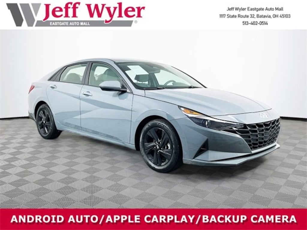 Jeff Wyler Eastgate Auto Mall is proud to offer this great 2023 Hyundai Elantra SEL in Electric Shadow. Well equipped with: Cargo Package (Cargo Block, Cargo Net, and Reversible Cargo Tray), Option Group 01, 16 x 6.5J Alloy Wheels, 4-Wheel Disc Brakes, 6 Speakers, ABS brakes, Air Conditioning, Alloy wheels, AM/FM radio: SiriusXM, Apple CarPlay & Android Auto, Auto High-beam Headlights, Automatic temperature control, Brake assist, Bumpers: body-color, Carpeted Floor Mats, Cloth Seat Trim, Delay-off headlights, Driver door bin, Driver vanity mirror, Dual front impact airbags, Dual front side impact airbags, Electronic Stability Control, Emergency communication system: Blue Link Connected Car Service (3-year complimentary subscription), Exterior Parking Camera Rear, First Aid Kit, Front anti-roll bar, Front Bucket Seats, Front Center Armrest, Front dual zone A/C, Front reading lights, Front wheel independent suspension, Fully automatic headlights, Illuminated entry, Low tire pressure warning, Occupant sensing airbag, Outside temperature display, Overhead airbag, Overhead console, Panic alarm, Passenger door bin, Passenger vanity mirror, Power door mirrors, Power steering, Power windows, Radio: AM/FM/HD/SiriusXM Display Audio, Rear window defroster, Remote keyless entry, Security system, Speed control, Speed-sensing steering, Steering wheel mounted audio controls, Tachometer, Telescoping steering wheel, Tilt steering wheel, Traction control, Trip computer, and Variably intermittent wipers. CARFAX One-Owner. Clean CARFAX. Ask about available certifications. Used vehicles 10 years of age or newer with less than 100,000 miles are eligible for the Wyler Assurance Program, but eligible vehicles must pass our reconditioning process and multi-point inspection. Provided the vehicle passes inspection, vehicles will be eligible for the 6 month/6,000 mile limited warranty. The 6 month/6,000 mile limited warranty is NOT available on AS-IS vehicles, wholesale vehicles, lease buyback/pass-thru vehicles or un-inspected vehicles. Note that this program can also apply to vehicles where the remaining factory coverage is less than 6 months or 6,000 miles. Please check the Federal Trade Commission (FTC) Buyers guide on the vehicle for full details as to whether or not warranty coverage may apply. Contact Dealer for additional details. The Wyler Assurance 6 month/6,000 Mile limited warranty ends 6 months from the date of the Retail Purchase Agreement (BUYERS ORDER) or when the vehicle's odometer registers 6,000 additional miles to the mileage listed on the BUYERS ORDER, whichever comes first. Your Deductible - The warranty holder on your contract pays the first $100 of each covered repair.