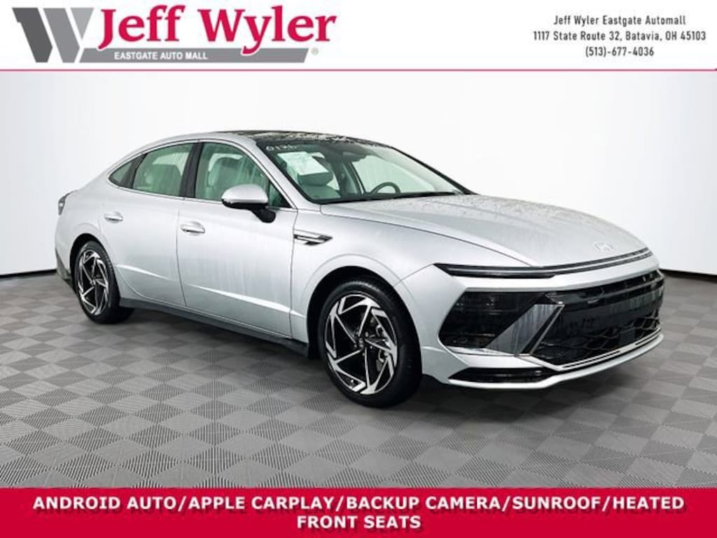 Jeff Wyler Eastgate Auto Mall is very proud to offer this terrific-looking 2025 Hyundai Sonata SEL Convenience in Aero Silver. Well equipped with: Option Group 01, 18 x 7.5J Aluminum Alloy Wheels, 4-Wheel Disc Brakes, 6 Speakers, ABS brakes, Air Conditioning, Alloy wheels, AM/FM radio: SiriusXM, Apple CarPlay & Android Auto, Auto High-beam Headlights, Auto-dimming Rear-View mirror, Automatic temperature control, Brake assist, Bumpers: body-color, Cargo Net, Cargo Tray, Carpeted Floor Mats, Cloth Seating Surfaces, Delay-off headlights, Driver door bin, Driver vanity mirror, Dual front impact airbags, Dual front side impact airbags, Electronic Stability Control, Emergency communication system: Bluelink+, Exterior Parking Camera Rear, Four wheel independent suspension, Front anti-roll bar, Front Bucket Seats, Front Center Armrest, Front dual zone A/C, Front reading lights, Fully automatic headlights, Heated door mirrors, Heated Front Bucket Seats, Heated front seats, Illuminated entry, Knee airbag, Leather steering wheel, Low tire pressure warning, Navigation System, Occupant sensing airbag, Outside temperature display, Overhead airbag, Overhead console, Panic alarm, Passenger door bin, Passenger vanity mirror, Power door mirrors, Power driver seat, Power moonroof, Power steering, Power windows, Radio data system, Radio: AM/FM/HD/SiriusXM/Navigation, Rear anti-roll bar, Rear seat center armrest, Rear side impact airbag, Rear window defroster, Remote keyless entry, Security system, Speed control, Speed-sensing steering, Speed-Sensitive Wipers, Split folding rear seat, Steering wheel mounted audio controls, Tachometer, Telescoping steering wheel, Tilt steering wheel, Traction control, Trip computer, Variably intermittent wipers, and Wheel Locks. CARFAX One-Owner. Clean CARFAX. Ask about available certifications. Used vehicles 10 years of age or newer with less than 100,000 miles are eligible for the Wyler Assurance Program, but eligible vehicles must pass our reconditioning process and multi-point inspection. Provided the vehicle passes inspection, vehicles will be eligible for the 6 month/6,000 mile limited warranty. The 6 month/6,000 mile limited warranty is NOT available on AS-IS vehicles, wholesale vehicles, lease buyback/pass-thru vehicles or un-inspected vehicles. Note that this program can also apply to vehicles where the remaining factory coverage is less than 6 months or 6,000 miles. Please check the Federal Trade Commission (FTC) Buyers guide on the vehicle for full details as to whether or not warranty coverage may apply. Contact Dealer for additional details. The Wyler Assurance 6 month/6,000 Mile limited warranty ends 6 months from the date of the Retail Purchase Agreement (BUYERS ORDER) or when the vehicle's odometer registers 6,000 additional miles to the mileage listed on the BUYERS ORDER, whichever comes first. Your Deductible - The warranty holder on your contract pays the first $100 of each covered repair.