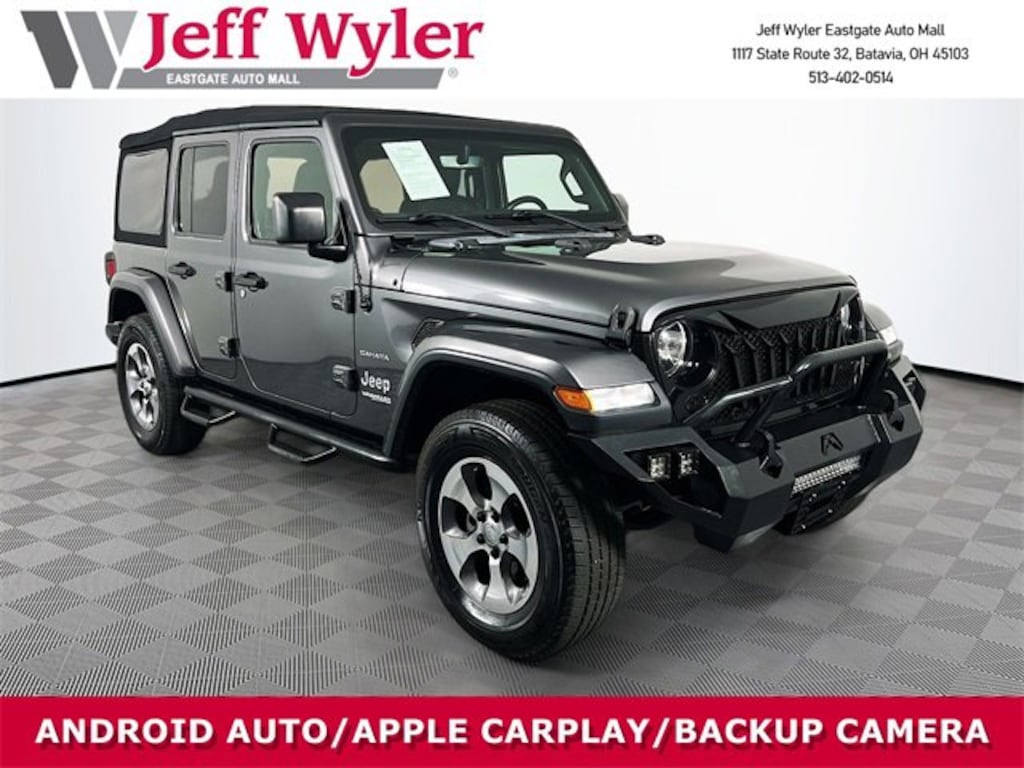 Jeff Wyler Eastgate Auto Mall is excited to offer this great 2018 Jeep Wrangler Unlimited Sahara in Granite Crystal Metallic Clearcoat. Well equipped with: Electronic Infotainment System Group (1-Year SiriusXM Guardian Trial, 5-Year SiriusXM Traffic Service, 5-Year SiriusXM Travel Link Service, 8.4 Touchscreen Display, Alpine Premium Audio System, Auto-Dimming Rear-View Mirror, GPS Navigation, HD Radio, Radio: Uconnect 4C Nav w/8.4 Display, Roadside Assistance & 9-1-1 Call, SiriusXM Traffic Plus, and SiriusXM Travel Link), Quick Order Package 28G, 1-Yr SiriusXM Radio Service, 21.5 Gallon Fuel Tank (DISC), 3.45 Rear Axle Ratio, 4-Wheel Disc Brakes, 8 Speakers, ABS brakes, Air Conditioning, Alloy wheels, AM/FM radio: SiriusXM, Apple CarPlay (DISC), Apple CarPlay/Android Auto, Automatic temperature control, Brake assist, Cloth Low-Back Bucket Seats, Compass, Delay-off headlights, Driver door bin, Driver vanity mirror, Dual front impact airbags, Dual front side impact airbags, Electronic Stability Control, For More Info, Call 800-643-2112, Front anti-roll bar, Front Bucket Seats, Front Center Armrest w/Storage, Front dual zone A/C, Front fog lights, Front reading lights, Fully automatic headlights, Garage door transmitter, Heated door mirrors, Heavy Duty Suspension w/Gas Shocks, Illuminated entry, Integrated roll-over protection, Leather steering wheel, Low tire pressure warning, Non-Lock Fuel Cap w/o Discriminator, Occupant sensing airbag, Outside temperature display, Panic alarm, ParkView Rear Back-Up Camera, Passenger door bin, Passenger vanity mirror, Power door mirrors, Power steering, Power windows, Premium Black Sunrider Soft Top, Radio data system, Radio: Uconnect 4 w/7 Display, Rear anti-roll bar, Rear reading lights, Remote keyless entry, Security system, SiriusXM Satellite Radio (DISC), Speed control, Split folding rear seat, Steering wheel mounted audio controls, Tachometer, Telescoping steering wheel, Tilt steering wheel, Traction control, Trip computer, Variably intermittent wipers, Voltmeter, and Wheels: 18 x 7.5 Polished w/Gray Spokes. Clean CARFAX. Awards: