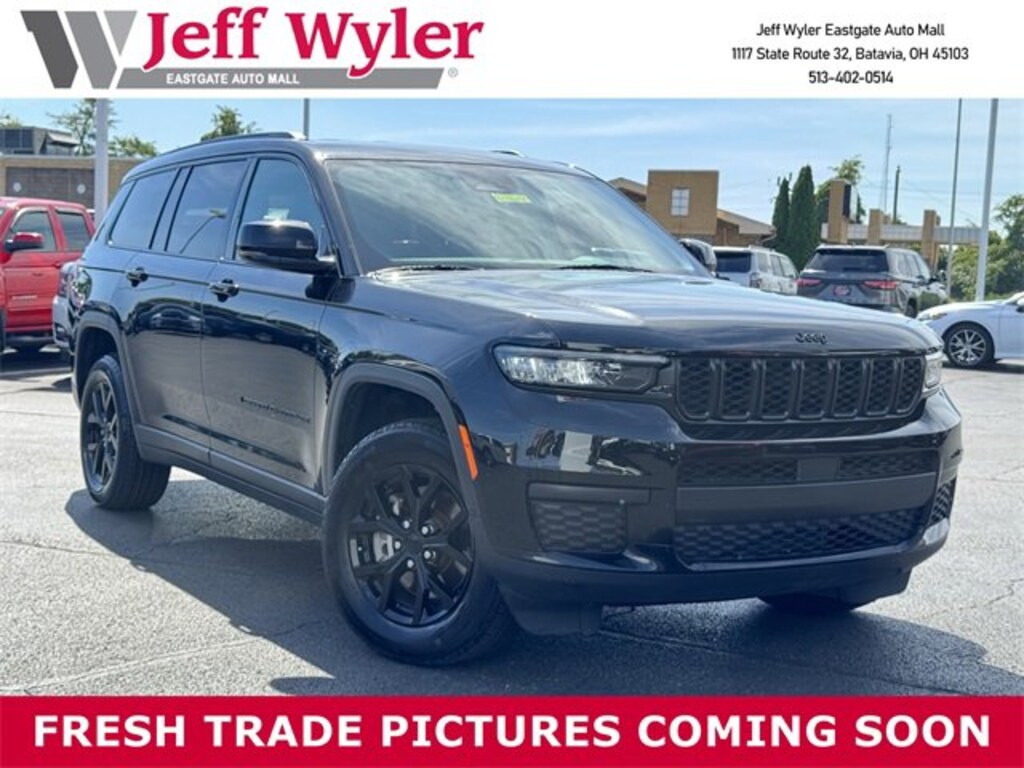 Jeff Wyler Eastgate Auto Mall is very proud to offer this handsome 2024 Jeep Grand Cherokee L Altitude in Diamond Black Crystal Pearlcoat. Well equipped with: Altitude Appearance Package, Quick Order Package 23B Altitude (115V Auxiliary Power Outlet, 3rd Row Charge-Only USB Ports, Black Headliner, Capri Leatherette/Suede Seats, Delete Laredo Badge, Gloss Black Exterior Accents, Heated Front Seats, Heated Steering Wheel, Power Liftgate, Rain Sensitive Windshield Wipers, Remote Start System, Selectable Tire Fill Alert, Wheels: 18 x 8.0 Fully Painted Aluminum 1, and Wireless Charging Pad), 2nd Row 60/40 Bench w/Manual Tip/Slide, 2nd Row Seat Center Armrest/Cupholders, 3 Rear Seat Head Restraints, 3.45 Rear Axle Ratio, 3rd row seats: split-bench, 4-Wheel Disc Brakes, 6 Speakers, 7-Passenger Seating, ABS brakes, Air Conditioning, Alloy wheels, Anti-whiplash front head restraints, Automatic temperature control, Brake assist, Bumpers: body-color, Center Rear 3-Point Seat Belt, Cloth Seats, Compass, Delay-off headlights, Driver door bin, Driver vanity mirror, Dual front impact airbags, Dual front side impact airbags, Electronic Stability Control, Emergency communication system, Four wheel independent suspension, Front anti-roll bar, Front Bucket Seats, Front Center Armrest w/Storage, Front dual zone A/C, Front License Plate Bracket, Front reading lights, Fully automatic headlights, Heated door mirrors, Illuminated entry, Knee airbag, Low tire pressure warning, Manual Fold Seatbacks, Normal Duty Suspension, Occupant sensing airbag, Outside temperature display, Overhead airbag, Overhead console, Panic alarm, ParkView Rear Back-Up Camera, Passenger door bin, Passenger vanity mirror, Power door mirrors, Power driver seat, Power steering, Power windows, Radio data system, Radio: Uconnect 5 w/8.4 Display, Rear air conditioning, Rear anti-roll bar, Rear reading lights, Rear window defroster, Rear window wiper, Reclining 3rd row seat, Remote keyless entry, Security system, Speed control, Speed-Sensitive Wipers, Split folding rear seat, Spoiler, Steering wheel mounted audio controls, Tachometer, Telescoping steering wheel, Tilt steering wheel, Traction control, Trip computer, Variably intermittent wipers, Voltmeter, and Wheels: 18 x 8.0 Fully Painted Aluminum. CARFAX One-Owner. Clean CARFAX. Ask about available certifications. Used vehicles 10 years of age or newer with less than 100,000 miles are eligible for the Wyler Assurance Program, but eligible vehicles must pass our reconditioning process and multi-point inspection. Provided the vehicle passes inspection, vehicles will be eligible for the 6 month/6,000 mile limited warranty. The 6 month/6,000 mile limited warranty is NOT available on AS-IS vehicles, wholesale vehicles, lease buyback/pass-thru vehicles or un-inspected vehicles. Note that this program can also apply to vehicles where the remaining factory coverage is less than 6 months or 6,000 miles. Please check the Federal Trade Commission (FTC) Buyers guide on the vehicle for full details as to whether or not warranty coverage may apply. Contact Dealer for additional details. The Wyler Assurance 6 month/6,000 Mile limited warranty ends 6 months from the date of the Retail Purchase Agreement (BUYERS ORDER) or when the vehicle's odometer registers 6,000 additional miles to the mileage listed on the BUYERS ORDER, whichever comes first. Your Deductible - The warranty holder on your contract pays the first $100 of each covered repair.