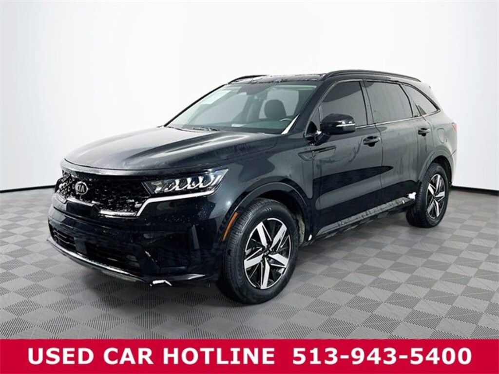 Jeff Wyler Eastgate Auto Mall is honored to offer this charming 2021 Kia Sorento EX in Ebony Black. Well equipped with: 18 Machine-Finished Alloy Wheels, 3.316 Axle Ratio, 3rd row seats: split-bench, 4-Wheel Disc Brakes, 6 Speakers, ABS brakes, Air Conditioning, Alloy wheels, AM/FM radio: SiriusXM, Apple CarPlay & Android Auto, Auto High-beam Headlights, Automatic temperature control, Brake assist, Bumpers: body-color, Cargo Net, Carpeted Floor Mats, Delay-off headlights, Driver door bin, Driver vanity mirror, Dual front impact airbags, Dual front side impact airbags, Electronic Stability Control, Exterior Parking Camera Rear, Four wheel independent suspension, Front anti-roll bar, Front Bucket Seats, Front Center Armrest, Front dual zone A/C, Front fog lights, Front reading lights, Fully automatic headlights, Heated door mirrors, Heated Front Bucket Seats, Heated front seats, Illuminated entry, Knee airbag, Leather Shift Knob, Leather steering wheel, Low tire pressure warning, Occupant sensing airbag, Outside temperature display, Overhead airbag, Overhead console, Panic alarm, Passenger door bin, Passenger vanity mirror, Power door mirrors, Power driver seat, Power Liftgate, Power steering, Power windows, Premium Leatherette Seat Trim, Radio data system, Radio: AM/FM Audio System, Rear air conditioning, Rear anti-roll bar, Rear reading lights, Rear window defroster, Rear window wiper, Remote keyless entry, Roof rack: rails only, Security system, Speed control, Speed-sensing steering, Split folding rear seat, Spoiler, Steering wheel mounted audio controls, Tachometer, Telescoping steering wheel, Tilt steering wheel, Traction control, Trip computer, Turn signal indicator mirrors, and Variably intermittent wipers. Clean CARFAX. Ask about available certifications. Used vehicles 10 years of age or newer with less than 100,000 miles are eligible for the Wyler Assurance Program, but eligible vehicles must pass our reconditioning process and multi-point inspection. Provided the vehicle passes inspection, vehicles will be eligible for the 6 month/6,000 mile limited warranty. The 6 month/6,000 mile limited warranty is NOT available on AS-IS vehicles, wholesale vehicles, lease buyback/pass-thru vehicles or un-inspected vehicles. Note that this program can also apply to vehicles where the remaining factory coverage is less than 6 months or 6,000 miles. Please check the Federal Trade Commission (FTC) Buyers guide on the vehicle for full details as to whether or not warranty coverage may apply. Contact Dealer for additional details. The Wyler Assurance 6 month/6,000 Mile limited warranty ends 6 months from the date of the Retail Purchase Agreement (BUYERS ORDER) or when the vehicle's odometer registers 6,000 additional miles to the mileage listed on the BUYERS ORDER, whichever comes first. Your Deductible - The warranty holder on your contract pays the first $100 of each covered repair.