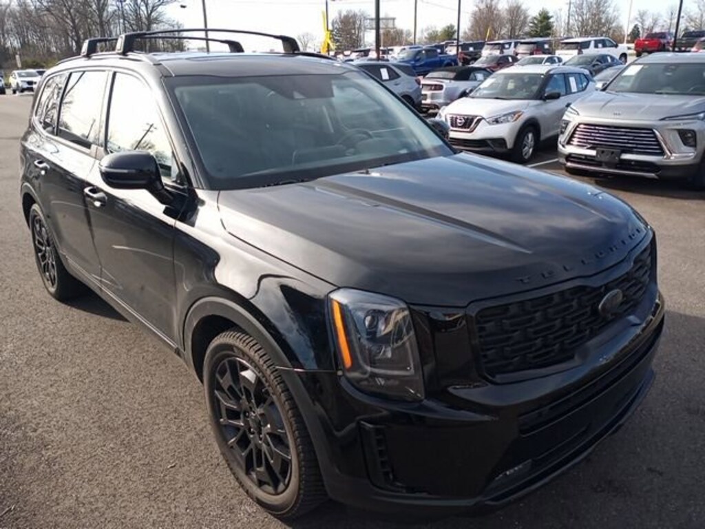 Jeff Wyler Eastgate Auto Mall is proud to offer this superb-looking 2021 Kia Telluride SX in Ebony Black. Well equipped with: Nightfall Edition Package (Black Finish Radiator Grille, Body Color Exterior Door Handles, Exclusive Black Fog Light Bezel, Exclusive Black Headlight Bezels, Front & Rear Gloss Black Finish Bumper Skid Plates, Front & Rear KIA Logo, Gloss Black Finish Exterior Emblems, Gloss Black Finish Front & Rear Door Garnish, Gloss Black Finish Roof Rails, and Wheels: 7.5 x 20 Exclusive Black Finish Alloy), SX Prestige Package (110V Inverter, Heads-Up Display, Heated & Ventilated 2nd Row Seats, Premium Cloth Headliner & Pillar Trim, Premium Nappa Leather Seat Trim, and Rain-Sensing Front Windshield Wipers), 10 Speakers, 3.648 Axle Ratio, 3rd row seats: split-bench, 4-Wheel Disc Brakes, ABS brakes, Air Conditioning, Alloy wheels, AM/FM radio: SiriusXM, Apple CarPlay & Android Auto, Auto High-beam Headlights, Auto-dimming Rear-View mirror, Automatic temperature control, Brake assist, Bumpers: body-color, Carpeted Floor Mats, Compass, Delay-off headlights, Driver door bin, Driver vanity mirror, Dual front impact airbags, Dual front side impact airbags, Electronic Stability Control, Emergency communication system: 911 Connect, Four wheel independent suspension, Front anti-roll bar, Front Bucket Seats, Front Center Armrest, Front dual zone A/C, Front fog lights, Front reading lights, Fully automatic headlights, Garage door transmitter: HomeLink, Heated & Ventilated Front Bucket Seats, Heated door mirrors, Heated front seats, Heated steering wheel, Illuminated entry, Knee airbag, Leather Seat Trim, Leather Shift Knob, Leather steering wheel, Low tire pressure warning, Memory seat, Navigation System, Occupant sensing airbag, Outside temperature display, Overhead airbag, Overhead console, Panic alarm, Passenger door bin, Passenger vanity mirror, Power door mirrors, Power driver seat, Power Liftgate, Power moonroof, Power passenger seat, Power steering, Power windows, Radio data system, Radio: AM/FM/SIRIUS Premium Audio, Rear air conditioning, Rear anti-roll bar, Rear audio controls, Rear reading lights, Rear window defroster, Rear window wiper, Reclining 3rd row seat, Remote keyless entry, Roof rack: rails only, Security system, Smart Key w/ Push Button and Remote Start, Speed control, Speed-sensing steering, Split folding rear seat, Spoiler, Steering wheel mounted audio controls, Tachometer, Telescoping steering wheel, Tilt steering wheel, Traction control, Trip computer, Turn signal indicator mirrors, Variably intermittent wipers, Ventilated front seats, and Wheels: 7.5 x 20 Black Finish Alloy. CARFAX One-Owner. Awards: