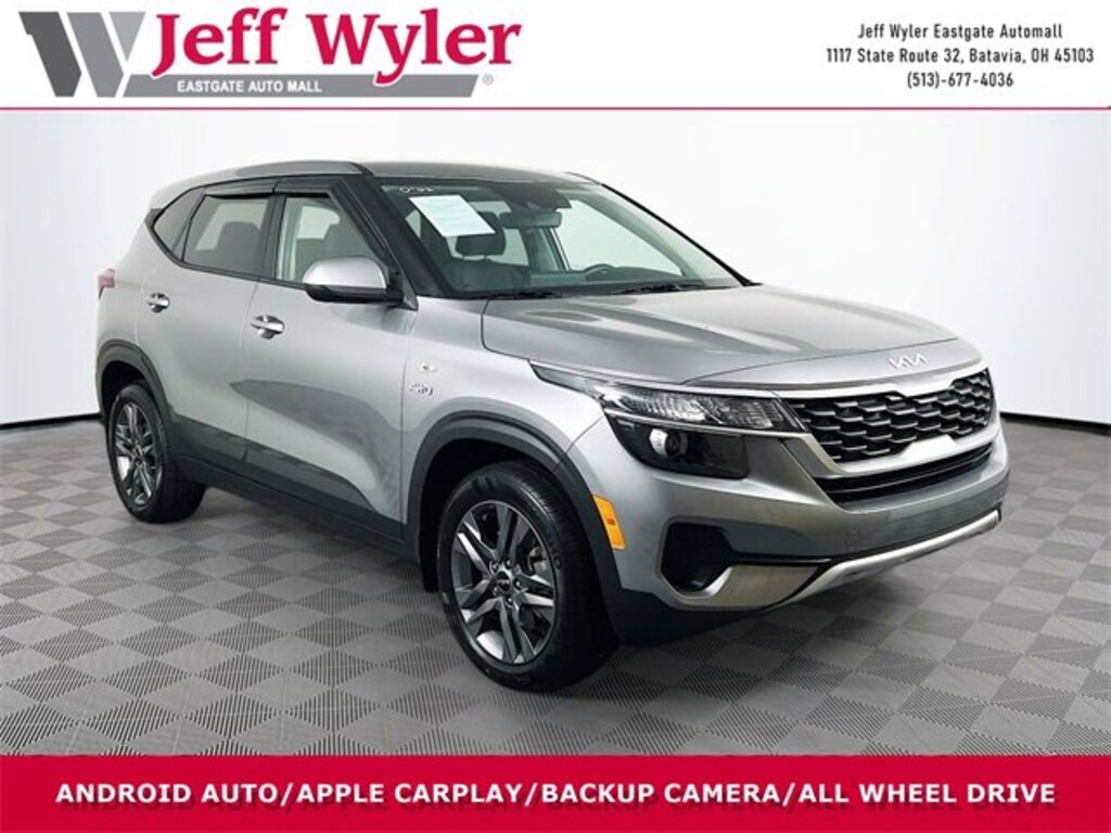Jeff Wyler Eastgate Auto Mall is pleased to offer this good-looking 2023 Kia Seltos LX in Steel Gray. Well equipped with: 4-Wheel Disc Brakes, 6 Speakers, 6.052 Axle Ratio, ABS brakes, Air Conditioning, Alloy wheels, AM/FM radio, Apple CarPlay & Android Auto, Auto High-beam Headlights, Brake assist, Bumpers: body-color, Carpet Floor Mats, Cloth Seat Trim, Delay-off headlights, Driver door bin, Driver vanity mirror, Dual front impact airbags, Dual front side impact airbags, Electronic Stability Control, Exterior Parking Camera Rear, Four wheel independent suspension, Front anti-roll bar, Front Bucket Seats, Front Center Armrest, Front reading lights, Fully automatic headlights, Illuminated entry, Low tire pressure warning, Occupant sensing airbag, Outside temperature display, Overhead airbag, Overhead console, Panic alarm, Passenger door bin, Passenger vanity mirror, Power door mirrors, Power steering, Power windows, Radio: AM/FM/MP3 Display Audio, Rear window defroster, Rear window wiper, Remote keyless entry, Security system, Speed control, Speed-sensing steering, Split folding rear seat, Spoiler, Steering wheel mounted audio controls, Tachometer, Telescoping steering wheel, Tilt steering wheel, Traction control, Trip computer, Variably intermittent wipers, and Wheels: 17 Alloy w/Dark Gray Finish. CARFAX One-Owner. Clean CARFAX. Ask about available certifications. Used vehicles 10 years of age or newer with less than 100,000 miles are eligible for the Wyler Assurance Program, but eligible vehicles must pass our reconditioning process and multi-point inspection. Provided the vehicle passes inspection, vehicles will be eligible for the 6 month/6,000 mile limited warranty. The 6 month/6,000 mile limited warranty is NOT available on AS-IS vehicles, wholesale vehicles, lease buyback/pass-thru vehicles or un-inspected vehicles. Note that this program can also apply to vehicles where the remaining factory coverage is less than 6 months or 6,000 miles. Please check the Federal Trade Commission (FTC) Buyers guide on the vehicle for full details as to whether or not warranty coverage may apply. Contact Dealer for additional details. The Wyler Assurance 6 month/6,000 Mile limited warranty ends 6 months from the date of the Retail Purchase Agreement (BUYERS ORDER) or when the vehicle's odometer registers 6,000 additional miles to the mileage listed on the BUYERS ORDER, whichever comes first. Your Deductible - The warranty holder on your contract pays the first $100 of each covered repair.
