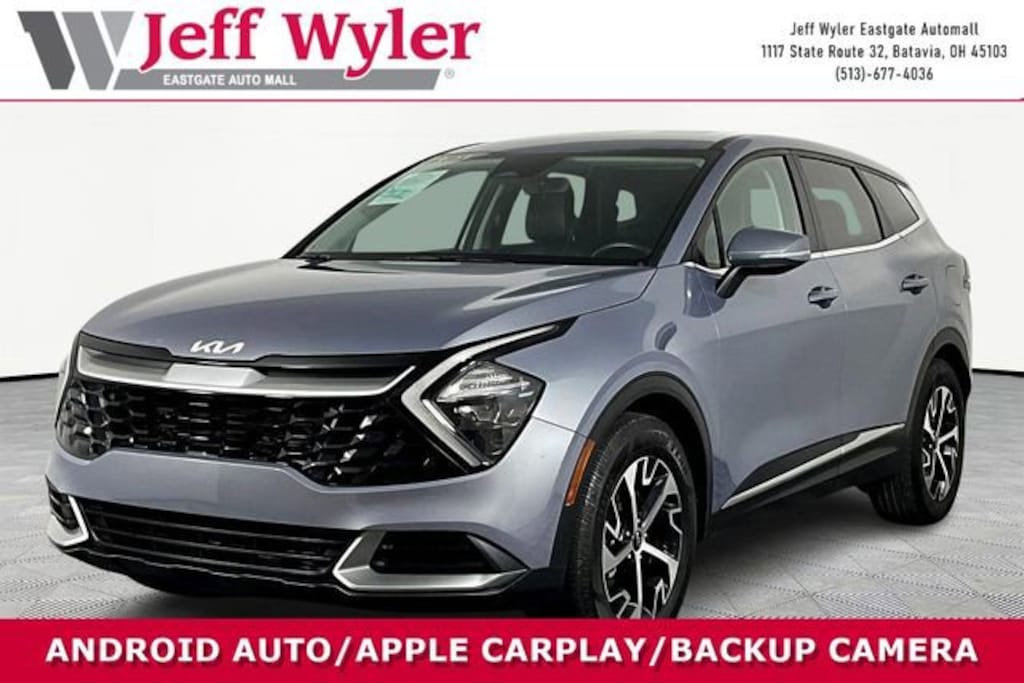Jeff Wyler Eastgate Auto Mall is excited to offer this stunning-looking 2023 Kia Sportage EX in Everlasting Silver. Well equipped with: 4-Wheel Disc Brakes, 6 Speakers, ABS brakes, Air Conditioning, Alloy wheels, AM/FM radio: SiriusXM, Apple CarPlay & Android Auto, Auto High-beam Headlights, Automatic temperature control, Axle Ratio: 3.648, Brake assist, Bumpers: body-color, Carpeted Floor Mats, Compass, Delay-off headlights, Driver door bin, Driver vanity mirror, Dual front impact airbags, Dual front side impact airbags, Electronic Stability Control, Emergency communication system, Four wheel independent suspension, Front anti-roll bar, Front Bucket Seats, Front Center Armrest, Front dual zone A/C, Fully automatic headlights, Heated door mirrors, Heated Front Bucket Seats, Heated front seats, Illuminated entry, Leather Shift Knob, Leather steering wheel, Leatherette Seat Trim, Low tire pressure warning, Navigation System, Occupant sensing airbag, Outside temperature display, Overhead airbag, Overhead console, Panic alarm, Passenger door bin, Passenger vanity mirror, Power door mirrors, Power driver seat, Power steering, Power windows, Radio: AM/FM/HD Audio System, Rain sensing wipers, Rear anti-roll bar, Rear seat center armrest, Rear window defroster, Rear window wiper, Remote keyless entry, Security system, Speed control, Speed-sensing steering, Split folding rear seat, Spoiler, Steering wheel mounted audio controls, Tachometer, Telescoping steering wheel, Tilt steering wheel, Traction control, Trip computer, Turn signal indicator mirrors, Variably intermittent wipers, and Wheels: 18 Machine Finish Alloy. CARFAX One-Owner. Clean CARFAX. Ask about available certifications. Used vehicles 10 years of age or newer with less than 100,000 miles are eligible for the Wyler Assurance Program, but eligible vehicles must pass our reconditioning process and multi-point inspection. Provided the vehicle passes inspection, vehicles will be eligible for the 6 month/6,000 mile limited warranty. The 6 month/6,000 mile limited warranty is NOT available on AS-IS vehicles, wholesale vehicles, lease buyback/pass-thru vehicles or un-inspected vehicles. Note that this program can also apply to vehicles where the remaining factory coverage is less than 6 months or 6,000 miles. Please check the Federal Trade Commission (FTC) Buyers guide on the vehicle for full details as to whether or not warranty coverage may apply. Contact Dealer for additional details. The Wyler Assurance 6 month/6,000 Mile limited warranty ends 6 months from the date of the Retail Purchase Agreement (BUYERS ORDER) or when the vehicle's odometer registers 6,000 additional miles to the mileage listed on the BUYERS ORDER, whichever comes first. Your Deductible - The warranty holder on your contract pays the first $100 of each covered repair.