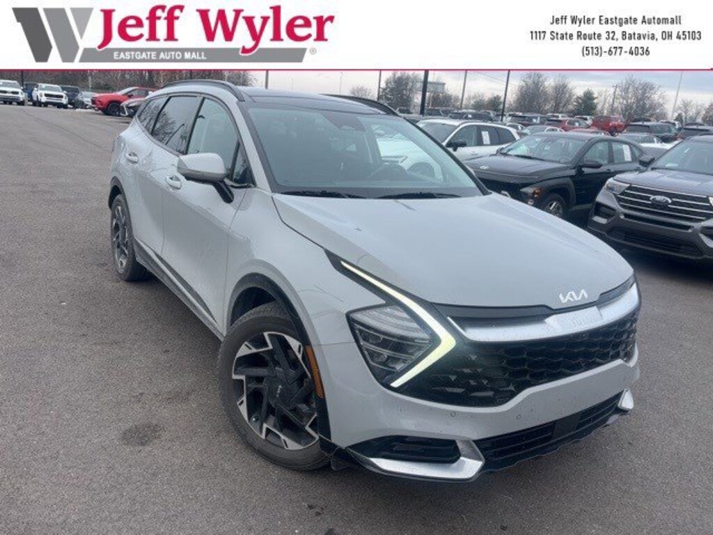 Jeff Wyler Eastgate Auto Mall is proud to offer this stunning-looking 2023 Kia Sportage SX-Prestige in Wolf Gray. Well equipped with: 4-Wheel Disc Brakes, 8 Speakers, ABS brakes, Air Conditioning, Alloy wheels, AM/FM radio: SiriusXM, Apple CarPlay & Android Auto, Auto High-beam Headlights, Auto-dimming Rear-View mirror, Automatic temperature control, Axle Ratio: 3.648, Brake assist, Bumpers: body-color, Carpeted Floor Mats, Compass, Delay-off headlights, Driver door bin, Driver vanity mirror, Dual front impact airbags, Dual front side impact airbags, Electronic Stability Control, Emergency communication system, Four wheel independent suspension, Front anti-roll bar, Front Bucket Seats, Front Center Armrest, Front dual zone A/C, Front fog lights, Front reading lights, Fully automatic headlights, Garage door transmitter: HomeLink, harman/kardon® Speakers, Heated & Ventilated Front Bucket Seats, Heated door mirrors, Heated front seats, Heated steering wheel, Illuminated entry, Leather Shift Knob, Leather steering wheel, Low tire pressure warning, Memory seat, Navigation System, Occupant sensing airbag, Outside temperature display, Overhead airbag, Overhead console, Panic alarm, Passenger door bin, Passenger vanity mirror, Power door mirrors, Power driver seat, Power Liftgate, Power moonroof, Power passenger seat, Power steering, Power windows, Premium Leatherette Seat Trim, Radio: AM/FM/HD Audio System, Rain sensing wipers, Rear anti-roll bar, Rear reading lights, Rear seat center armrest, Rear window defroster, Rear window wiper, Remote keyless entry, Security system, Speed control, Speed-sensing steering, Split folding rear seat, Spoiler, Steering wheel mounted audio controls, Tachometer, Telescoping steering wheel, Tilt steering wheel, Traction control, Trip computer, Turn signal indicator mirrors, Variably intermittent wipers, Ventilated front seats, and Wheels: 19 Gloss Black Alloy. CARFAX One-Owner. Ask about available certifications. Used vehicles 10 years of age or newer with less than 100,000 miles are eligible for the Wyler Assurance Program, but eligible vehicles must pass our reconditioning process and multi-point inspection. Provided the vehicle passes inspection, vehicles will be eligible for the 6 month/6,000 mile limited warranty. The 6 month/6,000 mile limited warranty is NOT available on AS-IS vehicles, wholesale vehicles, lease buyback/pass-thru vehicles or un-inspected vehicles. Note that this program can also apply to vehicles where the remaining factory coverage is less than 6 months or 6,000 miles. Please check the Federal Trade Commission (FTC) Buyers guide on the vehicle for full details as to whether or not warranty coverage may apply. Contact Dealer for additional details. The Wyler Assurance 6 month/6,000 Mile limited warranty ends 6 months from the date of the Retail Purchase Agreement (BUYERS ORDER) or when the vehicle's odometer registers 6,000 additional miles to the mileage listed on the BUYERS ORDER, whichever comes first. Your Deductible - The warranty holder on your contract pays the first $100 of each covered repair.