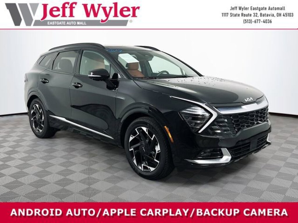 Jeff Wyler Eastgate Auto Mall is honored to offer this great-looking 2023 Kia Sportage SX-Prestige in Ebony Black. Well equipped with: Carmine Red Interior Color Package, 4-Wheel Disc Brakes, 8 Speakers, ABS brakes, Air Conditioning, Alloy wheels, AM/FM radio: SiriusXM, Apple CarPlay & Android Auto, Auto High-beam Headlights, Auto-dimming Rear-View mirror, Automatic temperature control, Axle Ratio: 3.648, Brake assist, Bumpers: body-color, Carpeted Floor Mats, Compass, Delay-off headlights, Driver door bin, Driver vanity mirror, Dual front impact airbags, Dual front side impact airbags, Electronic Stability Control, Emergency communication system, Four wheel independent suspension, Front anti-roll bar, Front Bucket Seats, Front Center Armrest, Front dual zone A/C, Front fog lights, Front reading lights, Fully automatic headlights, Garage door transmitter: HomeLink, harman/kardon® Speakers, Heated & Ventilated Front Bucket Seats, Heated door mirrors, Heated front seats, Heated steering wheel, Illuminated entry, Leather Shift Knob, Leather steering wheel, Low tire pressure warning, Memory seat, Navigation System, Occupant sensing airbag, Outside temperature display, Overhead airbag, Overhead console, Panic alarm, Passenger door bin, Passenger vanity mirror, Power door mirrors, Power driver seat, Power Liftgate, Power moonroof, Power passenger seat, Power steering, Power windows, Premium Leatherette Seat Trim, Radio: AM/FM/HD Audio System, Rain sensing wipers, Rear anti-roll bar, Rear reading lights, Rear seat center armrest, Rear window defroster, Rear window wiper, Remote keyless entry, Security system, Speed control, Speed-sensing steering, Split folding rear seat, Spoiler, Steering wheel mounted audio controls, Tachometer, Telescoping steering wheel, Tilt steering wheel, Traction control, Trip computer, Turn signal indicator mirrors, Variably intermittent wipers, Ventilated front seats, and Wheels: 19 Gloss Black Alloy. CARFAX One-Owner. Ask about available certifications. Used vehicles 10 years of age or newer with less than 100,000 miles are eligible for the Wyler Assurance Program, but eligible vehicles must pass our reconditioning process and multi-point inspection. Provided the vehicle passes inspection, vehicles will be eligible for the 6 month/6,000 mile limited warranty. The 6 month/6,000 mile limited warranty is NOT available on AS-IS vehicles, wholesale vehicles, lease buyback/pass-thru vehicles or un-inspected vehicles. Note that this program can also apply to vehicles where the remaining factory coverage is less than 6 months or 6,000 miles. Please check the Federal Trade Commission (FTC) Buyers guide on the vehicle for full details as to whether or not warranty coverage may apply. Contact Dealer for additional details. The Wyler Assurance 6 month/6,000 Mile limited warranty ends 6 months from the date of the Retail Purchase Agreement (BUYERS ORDER) or when the vehicle's odometer registers 6,000 additional miles to the mileage listed on the BUYERS ORDER, whichever comes first. Your Deductible - The warranty holder on your contract pays the first $100 of each covered repair.