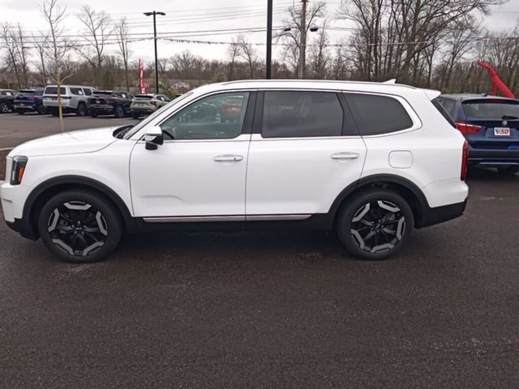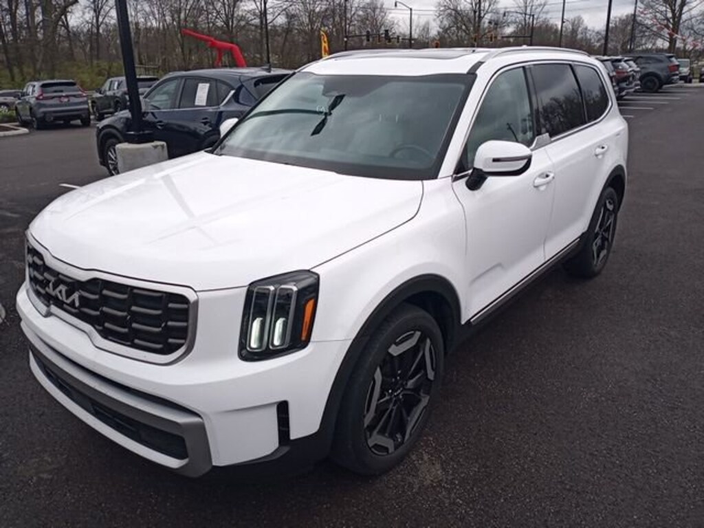 Jeff Wyler Eastgate Auto Mall is excited to offer this terrific 2023 Kia Telluride S in Glacial White Pearl. Well equipped with: S Sunroof Package (Power Sunroof w/Sunshade), 3.510 Axle Ratio, 3rd row seats: split-bench, 4-Wheel Disc Brakes, 6 Speakers, ABS brakes, Air Conditioning, Alloy wheels, AM/FM radio: SiriusXM, Apple CarPlay & Android Auto, Auto High-beam Headlights, Automatic temperature control, Brake assist, Bumpers: body-color, Carpet Floor Mats, Delay-off headlights, Driver door bin, Driver vanity mirror, Dual front impact airbags, Dual front side impact airbags, Electronic Stability Control, Emergency communication system: 911 Connect, Exterior Parking Camera Rear, Four wheel independent suspension, Front anti-roll bar, Front Bucket Seats, Front Center Armrest, Front dual zone A/C, Front reading lights, Fully automatic headlights, Heated door mirrors, Heated Front Bucket Seats, Heated front seats, Illuminated entry, Knee airbag, Leather Shift Knob, Leather steering wheel, Low tire pressure warning, Navigation System, Occupant sensing airbag, Outside temperature display, Overhead airbag, Overhead console, Panic alarm, Passenger door bin, Passenger vanity mirror, Power door mirrors, Power driver seat, Power steering, Power windows, Radio data system, Radio: AM/FM Display Audio System, Rear air conditioning, Rear anti-roll bar, Rear audio controls, Rear reading lights, Rear side impact airbag, Rear window defroster, Rear window wiper, Reclining 3rd row seat, Remote keyless entry, Roof rack: rails only, Security system, Smart Key w/ Push Button and Remote Start, Speed control, Speed-sensing steering, Split folding rear seat, Spoiler, Steering wheel mounted audio controls, SynTex Synthetic Leather Seat Trim, Tachometer, Telescoping steering wheel, Tilt steering wheel, Traction control, Trip computer, Turn signal indicator mirrors, Variably intermittent wipers, and Wheels: 20 x 7.5 Black Finish. CARFAX One-Owner. Ask about available certifications. Used vehicles 10 years of age or newer with less than 100,000 miles are eligible for the Wyler Assurance Program, but eligible vehicles must pass our reconditioning process and multi-point inspection. Provided the vehicle passes inspection, vehicles will be eligible for the 6 month/6,000 mile limited warranty. The 6 month/6,000 mile limited warranty is NOT available on AS-IS vehicles, wholesale vehicles, lease buyback/pass-thru vehicles or un-inspected vehicles. Note that this program can also apply to vehicles where the remaining factory coverage is less than 6 months or 6,000 miles. Please check the Federal Trade Commission (FTC) Buyers guide on the vehicle for full details as to whether or not warranty coverage may apply. Contact Dealer for additional details. The Wyler Assurance 6 month/6,000 Mile limited warranty ends 6 months from the date of the Retail Purchase Agreement (BUYERS ORDER) or when the vehicle's odometer registers 6,000 additional miles to the mileage listed on the BUYERS ORDER, whichever comes first. Your Deductible - The warranty holder on your contract pays the first $100 of each covered repair.