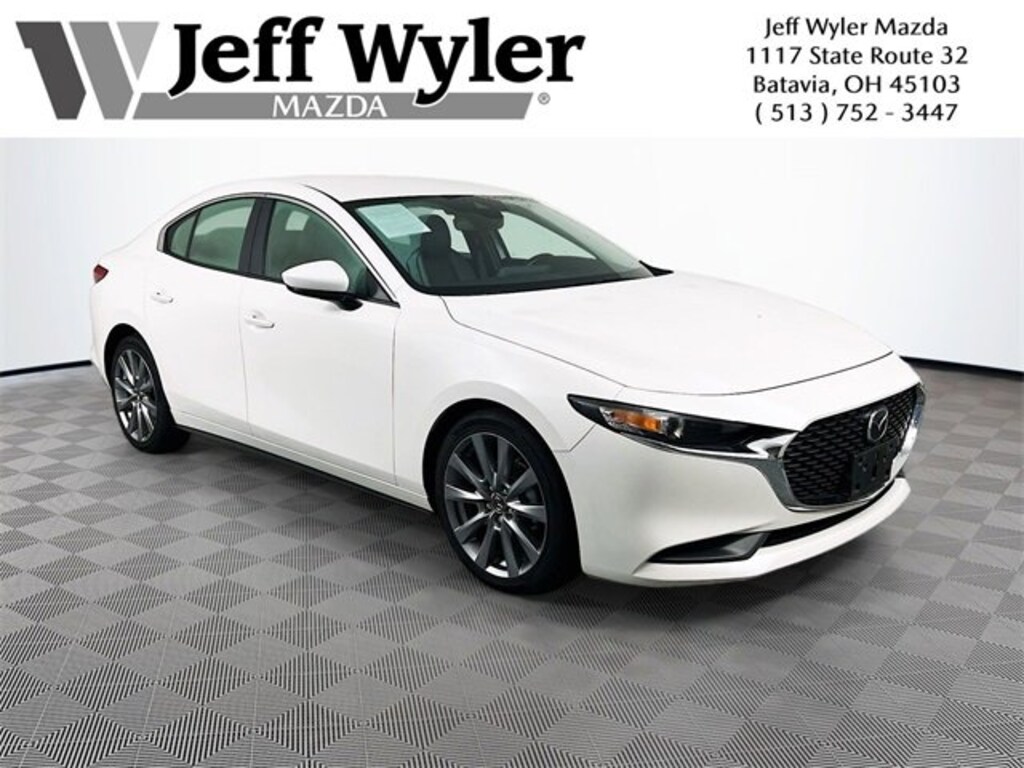 Jeff Wyler Eastgate Auto Mall is very proud to offer this terrific-looking 2022 Mazda Mazda3 Select in Snowflake White Pearl Mica. Well equipped with: 4-Wheel Disc Brakes, 8 Speakers, ABS brakes, Air Conditioning, Alloy wheels, AM/FM radio, AppLink/Apple CarPlay and Android Auto, Auto High-beam Headlights, Automatic temperature control, Brake assist, Bumpers: body-color, Compass, Delay-off headlights, Driver door bin, Driver vanity mirror, Dual front impact airbags, Dual front side impact airbags, Electronic Stability Control, Emergency communication system: Mazda Connected Services (3-year trial subscription included), Exterior Parking Camera Rear, Front anti-roll bar, Front Bucket Seats, Front Center Armrest, Front dual zone A/C, Front reading lights, Front wheel independent suspension, Fully automatic headlights, Illuminated entry, Knee airbag, Leather Shift Knob, Leatherette Seat Trim, Low tire pressure warning, Occupant sensing airbag, Outside temperature display, Overhead airbag, Overhead console, Panic alarm, Passenger door bin, Passenger vanity mirror, Power door mirrors, Power steering, Power windows, Radio data system, Radio: AM/FM Audio System, Rain sensing wipers, Rear seat center armrest, Rear window defroster, Remote keyless entry, Snowflake White Pearl Mica Paint Charge, Speed control, Speed-sensing steering, Split folding rear seat, Steering wheel mounted audio controls, Tachometer, Telescoping steering wheel, Tilt steering wheel, Traction control, Trip computer, Turn signal indicator mirrors, Variably intermittent wipers, and Wheels: 18 x 7J Silver Alloy. Ask about available certifications. Used vehicles 10 years of age or newer with less than 100,000 miles are eligible for the Wyler Assurance Program, but eligible vehicles must pass our reconditioning process and multi-point inspection. Provided the vehicle passes inspection, vehicles will be eligible for the 6 month/6,000 mile limited warranty. The 6 month/6,000 mile limited warranty is NOT available on AS-IS vehicles, wholesale vehicles, lease buyback/pass-thru vehicles or un-inspected vehicles. Note that this program can also apply to vehicles where the remaining factory coverage is less than 6 months or 6,000 miles. Please check the Federal Trade Commission (FTC) Buyers guide on the vehicle for full details as to whether or not warranty coverage may apply. Contact Dealer for additional details. The Wyler Assurance 6 month/6,000 Mile limited warranty ends 6 months from the date of the Retail Purchase Agreement (BUYERS ORDER) or when the vehicle's odometer registers 6,000 additional miles to the mileage listed on the BUYERS ORDER, whichever comes first. Your Deductible - The warranty holder on your contract pays the first $100 of each covered repair.