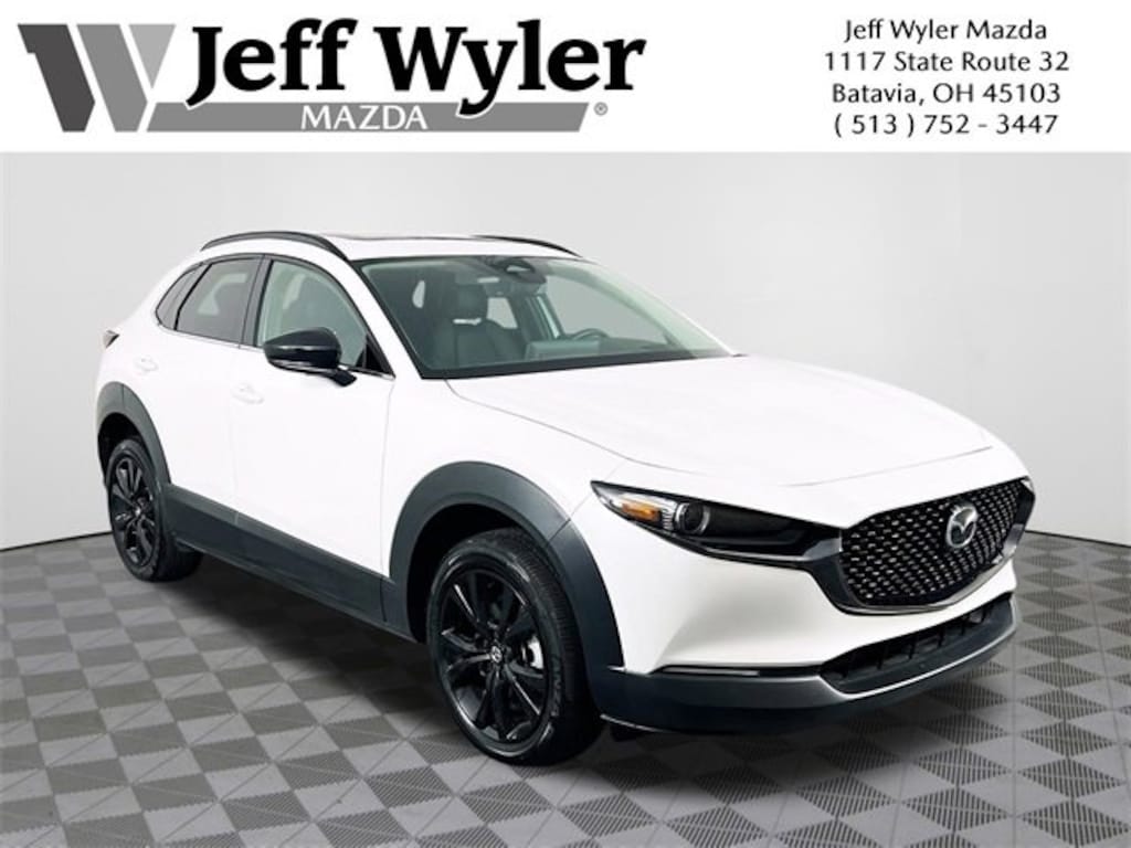 Jeff Wyler Eastgate Auto Mall is excited to offer this great 2025 Mazda CX-30 2.5 Turbo Premium Package in Snowflake White Pearl Mica. Well equipped with: 12 Speakers, 4-Wheel Disc Brakes, ABS brakes, Air Conditioning, Alloy wheels, AM/FM radio: SiriusXM, AppLink/Apple CarPlay and Android Auto, Auto High-beam Headlights, Auto-dimming Rear-View mirror, Automatic temperature control, Black Lug Nuts & Black Wheel Locks, Brake assist, Bumpers: body-color, Cargo Mat, Compass, Delay-off headlights, Driver door bin, Driver vanity mirror, Dual front impact airbags, Dual front side impact airbags, Electronic Stability Control, Emergency communication system: Mazda Connected Services (3-year trial subscription included), Exterior Parking Camera Rear, Front anti-roll bar, Front Bucket Seats, Front Center Armrest, Front dual zone A/C, Front reading lights, Front wheel independent suspension, Fully automatic headlights, Heads-Up Display, Heated door mirrors, Heated Front Bucket Seats, Heated front seats, Heated steering wheel, High Wall All-Weather Floor Mats, Illuminated entry, Knee airbag, Leather Seat Trim, Leather Shift Knob, Leather steering wheel, Low tire pressure warning, MAZDA CONNECT Infotainment System, Memory seat, Navigation system: MAZDA CONNECT, Occupant sensing airbag, Outside temperature display, Overhead airbag, Overhead console, Panic alarm, Passenger door bin, Passenger vanity mirror, Power door mirrors, Power driver seat, Power Liftgate, Power moonroof, Power steering, Power windows, Radio data system, Radio: AM/FM/HD Audio w/Mazda Online Navigation, Rain sensing wipers, Rear seat center armrest, Rear side impact airbag, Rear window defroster, Rear window wiper, Remote keyless entry, Snowflake White Pearl Mica Paint Charge, Speed control, Speed-sensing steering, Split folding rear seat, Spoiler, Steering wheel mounted audio controls, Tachometer, Telescoping steering wheel, Tilt steering wheel, Traction control, Trip computer, Turn signal indicator mirrors, Variably intermittent wipers, and Wheels: 18 x 7J Aluminum Alloy. CARFAX One-Owner. Clean CARFAX. Ask about available certifications. Used vehicles 10 years of age or newer with less than 100,000 miles are eligible for the Wyler Assurance Program, but eligible vehicles must pass our reconditioning process and multi-point inspection. Provided the vehicle passes inspection, vehicles will be eligible for the 6 month/6,000 mile limited warranty. The 6 month/6,000 mile limited warranty is NOT available on AS-IS vehicles, wholesale vehicles, lease buyback/pass-thru vehicles or un-inspected vehicles. Note that this program can also apply to vehicles where the remaining factory coverage is less than 6 months or 6,000 miles. Please check the Federal Trade Commission (FTC) Buyers guide on the vehicle for full details as to whether or not warranty coverage may apply. Contact Dealer for additional details. The Wyler Assurance 6 month/6,000 Mile limited warranty ends 6 months from the date of the Retail Purchase Agreement (BUYERS ORDER) or when the vehicle's odometer registers 6,000 additional miles to the mileage listed on the BUYERS ORDER, whichever comes first. Your Deductible - The warranty holder on your contract pays the first $100 of each covered repair.