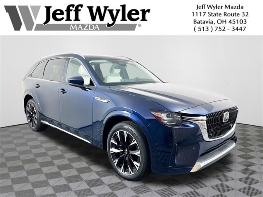 Jeff Wyler Eastgate Auto Mall is honored to offer this terrific-looking 2025 Mazda CX-90 3.3 Turbo S Premium Plus in Deep Crystal Blue Mica. Well equipped with: 12 Speakers, 3rd row seats: bench, 4-Wheel Disc Brakes, ABS brakes, Air Conditioning, Alloy wheels, AM/FM radio: SiriusXM, Auto High-beam Headlights, Auto-dimming door mirrors, Auto-dimming Rear-View mirror, Automatic temperature control, Brake assist, Bumpers: body-color, Compass, Delay-off headlights, Driver door bin, Driver vanity mirror, Dual front impact airbags, Dual front side impact airbags, E911 Automatic Emergency Notification, Electronic Stability Control, Emergency communication system: MAZDA CONNECT, Four wheel independent suspension, Front anti-roll bar, Front Bucket Seats, Front Center Armrest w/Storage, Front dual zone A/C, Front reading lights, Fully automatic headlights, Garage door transmitter: HomeLink, Heads-Up Display, Heated door mirrors, Heated front seats, Heated rear seats, Heated steering wheel, Heated/Ventilated Front Bucket Seats, Illuminated entry, Infotainment System Voice Command, Knee airbag, Leather Shift Knob, Leather steering wheel, Low tire pressure warning, Mazda Connected Services, Mazda Navigation System, Memory seat, Nappa Leather Seat Trim w/Quilting, Navigation system: MAZDA CONNECT, Occupant sensing airbag, Outside temperature display, Overhead airbag, Overhead console, Pandora Internet Radio Integration, Panic alarm, Passenger door bin, Passenger vanity mirror, Power door mirrors, Power driver seat, Power Liftgate, Power moonroof, Power passenger seat, Power steering, Power windows, Radio Broadcast Data System Program Information, Radio data system, Radio: AM/FM w/HD/Bose 12-Speaker Sound System, Rain sensing wipers, Rear air conditioning, Rear anti-roll bar, Rear reading lights, Rear seat center armrest, Rear window defroster, Rear window wiper, Remote keyless entry, Security system, SMS Text Msg Audio Delivery & Reply, Speed control, Speed-sensing steering, Split folding rear seat, Spoiler, Steering wheel memory, Steering wheel mounted audio controls, Tachometer, Telescoping steering wheel, Tilt steering wheel, Traction control, Trip computer, Turn signal indicator mirrors, Variably intermittent wipers, Ventilated front seats, Ventilated rear seats, and Wheels: 21 x 9.5J Aluminum Alloy. CARFAX One-Owner. Ask about available certifications. Used vehicles 10 years of age or newer with less than 100,000 miles are eligible for the Wyler Assurance Program, but eligible vehicles must pass our reconditioning process and multi-point inspection. Provided the vehicle passes inspection, vehicles will be eligible for the 6 month/6,000 mile limited warranty. The 6 month/6,000 mile limited warranty is NOT available on AS-IS vehicles, wholesale vehicles, lease buyback/pass-thru vehicles or un-inspected vehicles. Note that this program can also apply to vehicles where the remaining factory coverage is less than 6 months or 6,000 miles. Please check the Federal Trade Commission (FTC) Buyers guide on the vehicle for full details as to whether or not warranty coverage may apply. Contact Dealer for additional details. The Wyler Assurance 6 month/6,000 Mile limited warranty ends 6 months from the date of the Retail Purchase Agreement (BUYERS ORDER) or when the vehicle's odometer registers 6,000 additional miles to the mileage listed on the BUYERS ORDER, whichever comes first. Your Deductible - The warranty holder on your contract pays the first $100 of each covered repair.